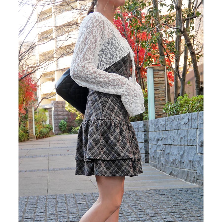 キャミワンピースとレースボレロがセットになった、着るだけでトレンド感のあるレイヤードスタイルが完成するアイテム。