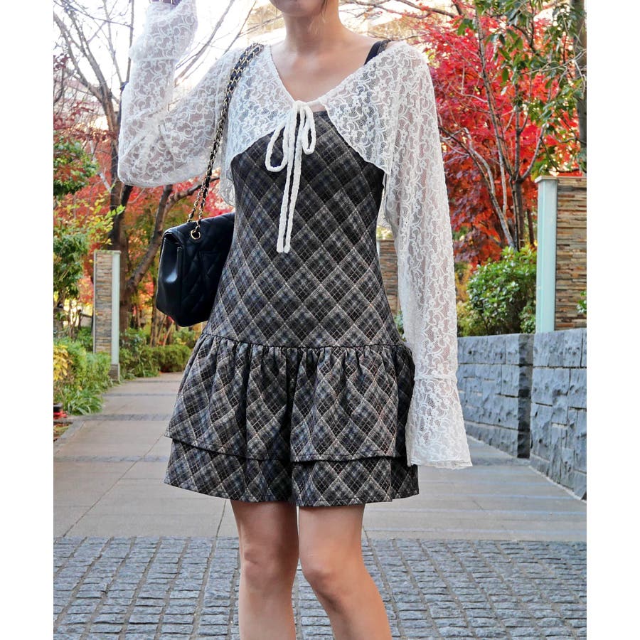 チェックワンピースボレロセット