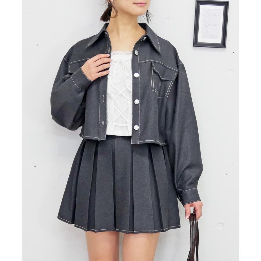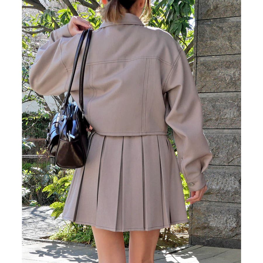 ジャケットのカジュアルなディテールが、プリーツスカートの甘さを程よく抑えてどなたでも着やすい!