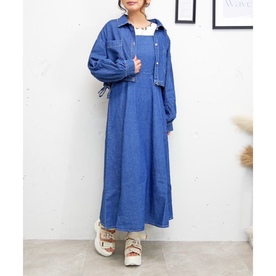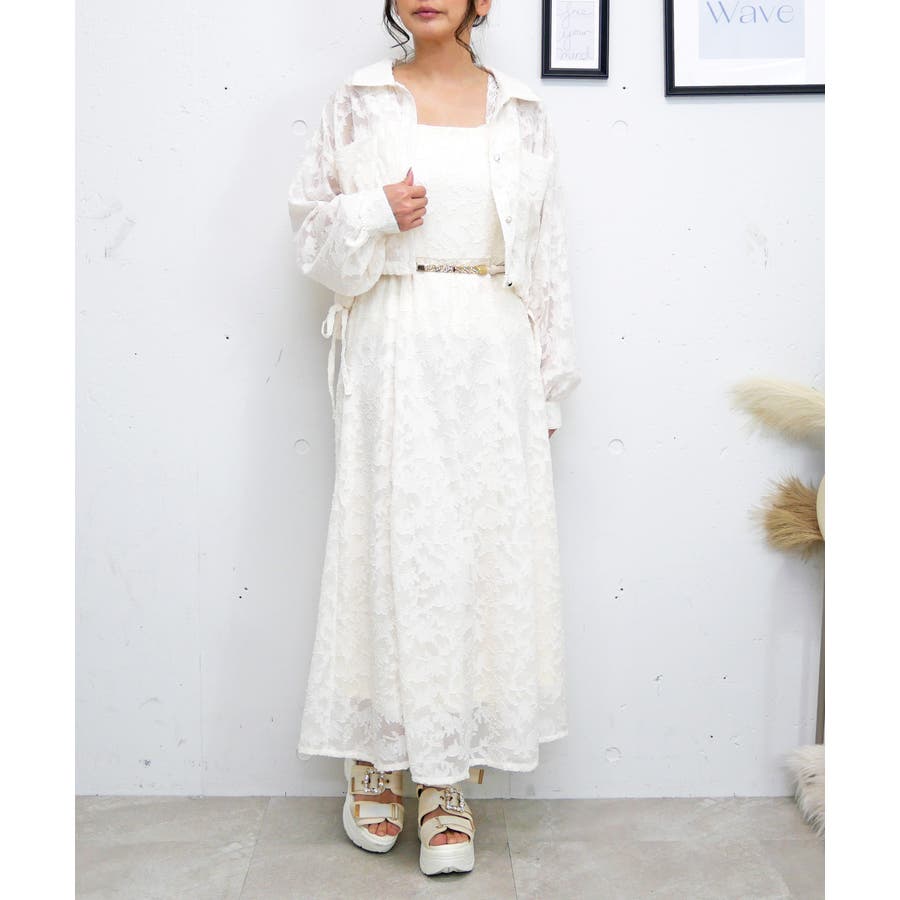 シャツとキャミワンピとの丈感のバランスが計算されており、腰位置が高く見え、抜群のスタイルアップが叶うセット。
