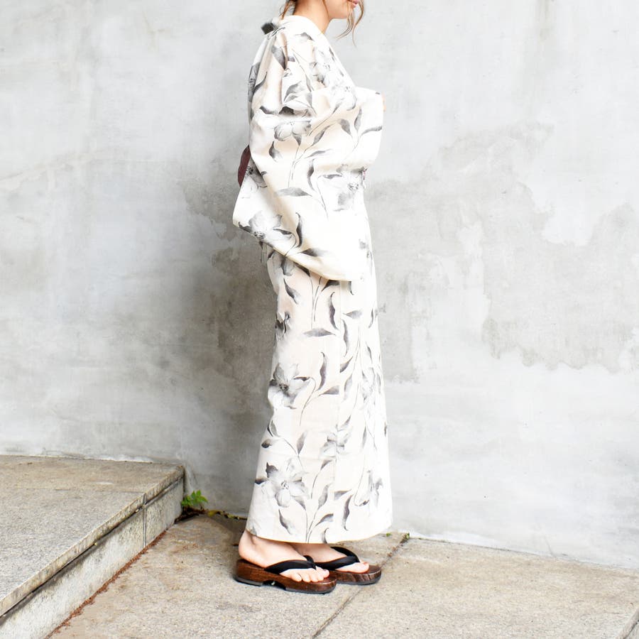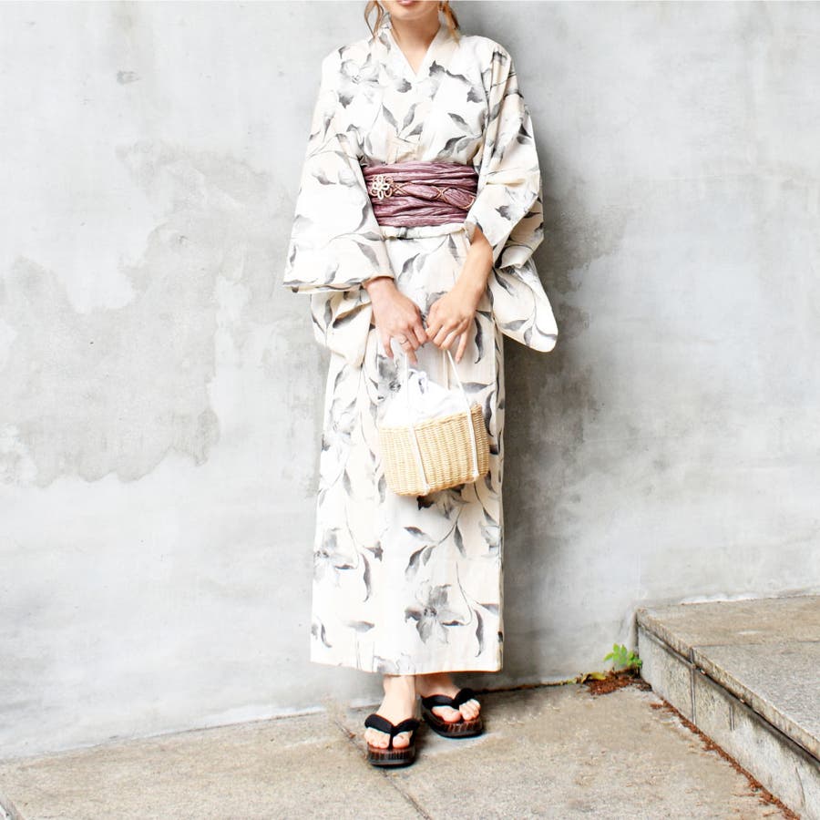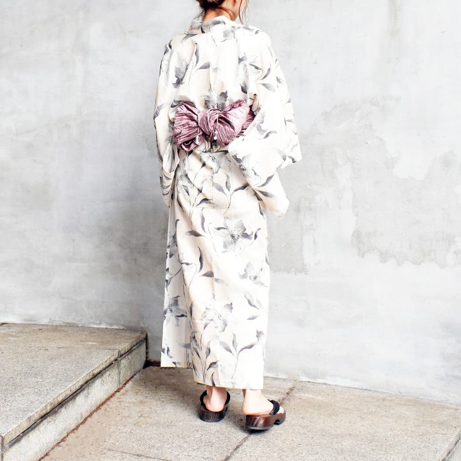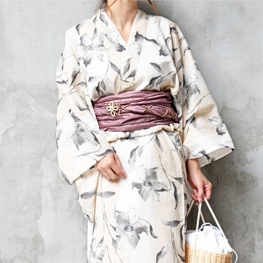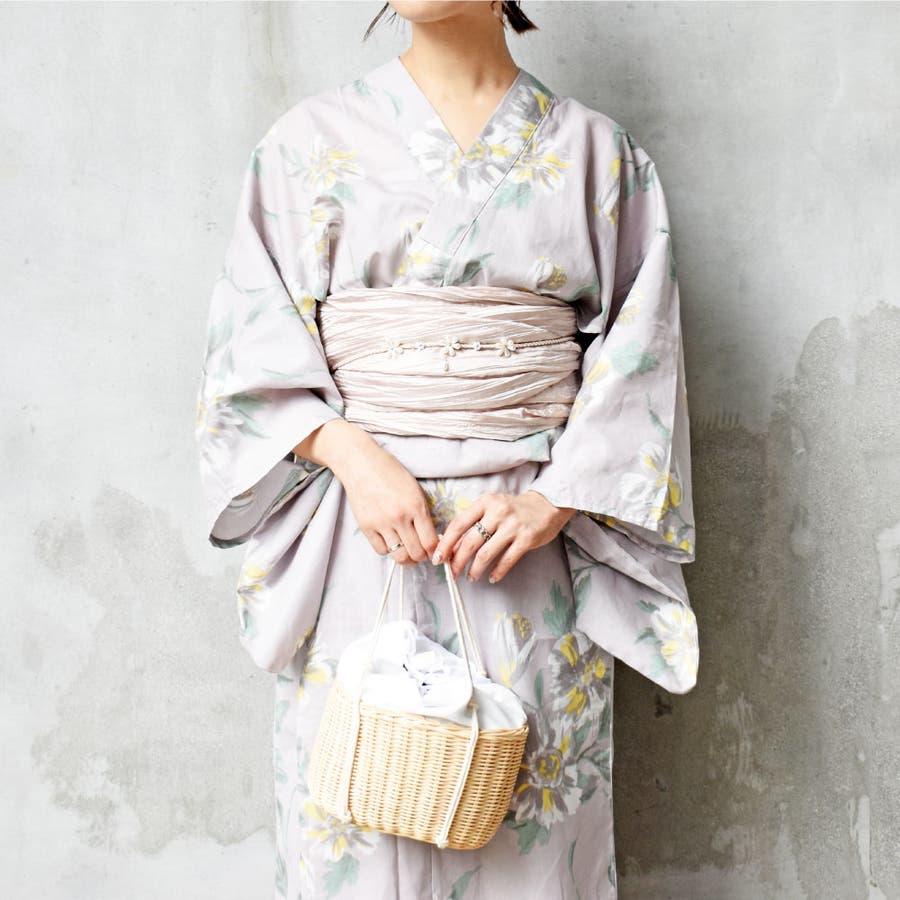 くすみカラーの花柄がノスタルジックな雰囲気と上品さを演出してくれる浴衣。
