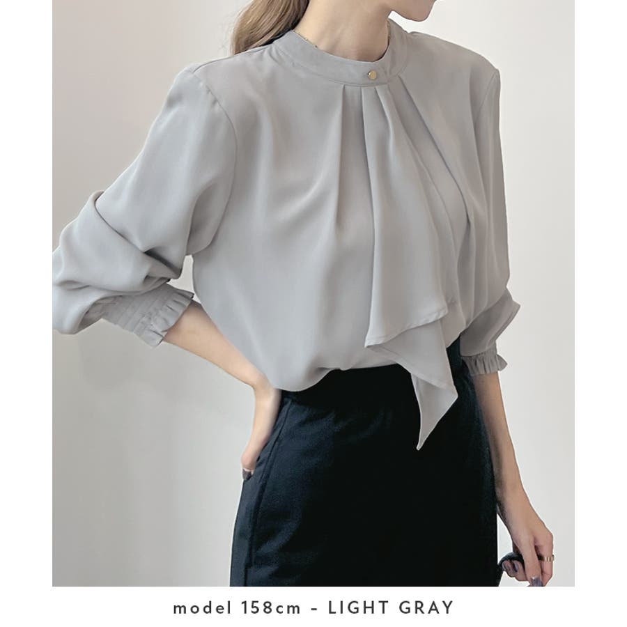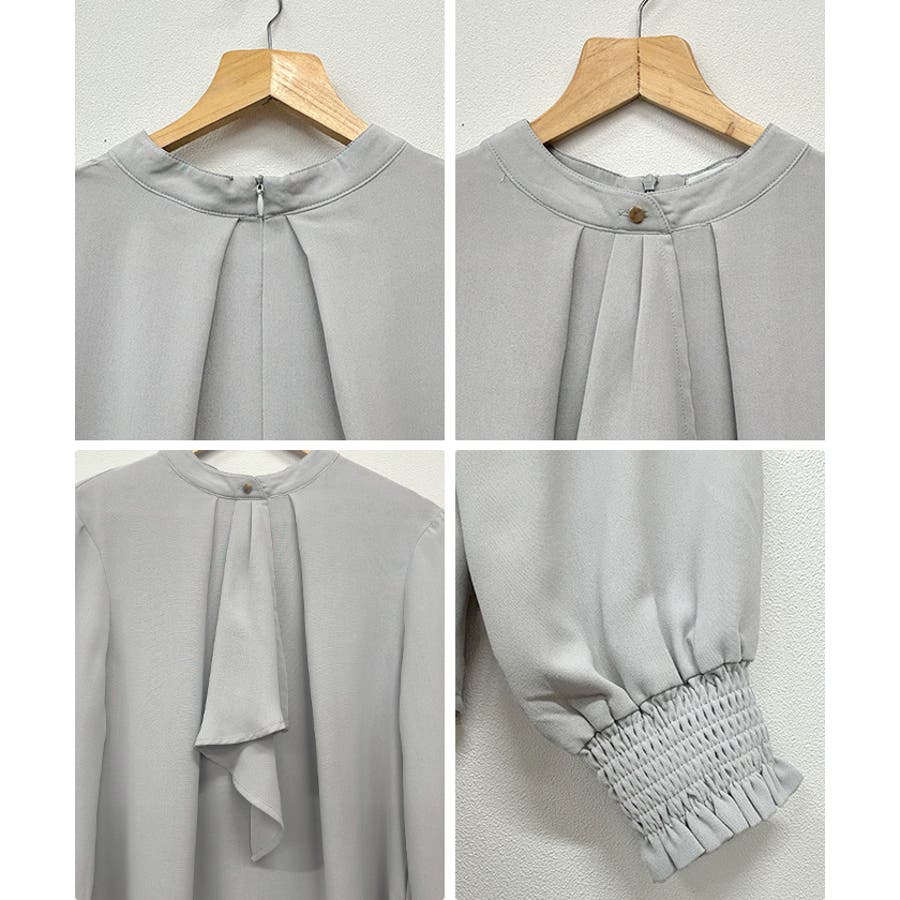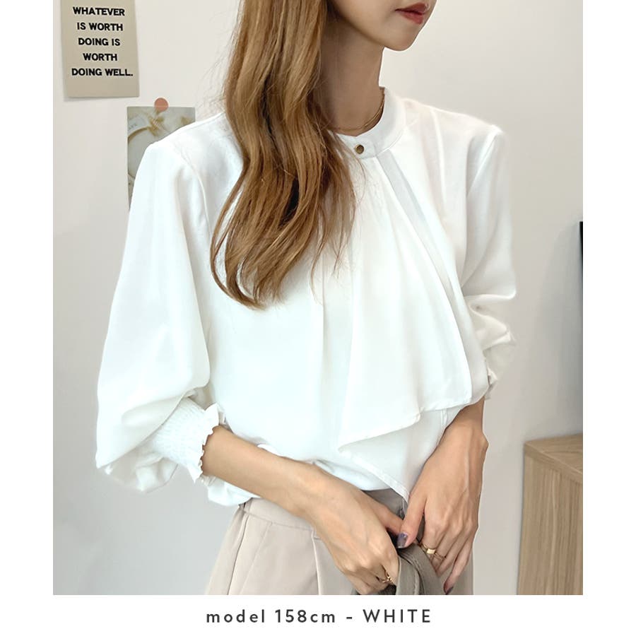 さらっとしたなめらかな生地で程よくハリのある生地感です。シワにもなりにくく速乾性もあるのでお仕事コーデにも◎ふわっと優しく広がるバルーン袖が女性らしい印象に…♪一見、華やかなデザインですが主張しすぎない落ち着いた生地感・カラー・スーツとの相性◎オフィスカジュアルにはもちろん、デニムにも合わせやすいのでプライベートでも重宝すること間違いなしの優秀ブラウスです^^