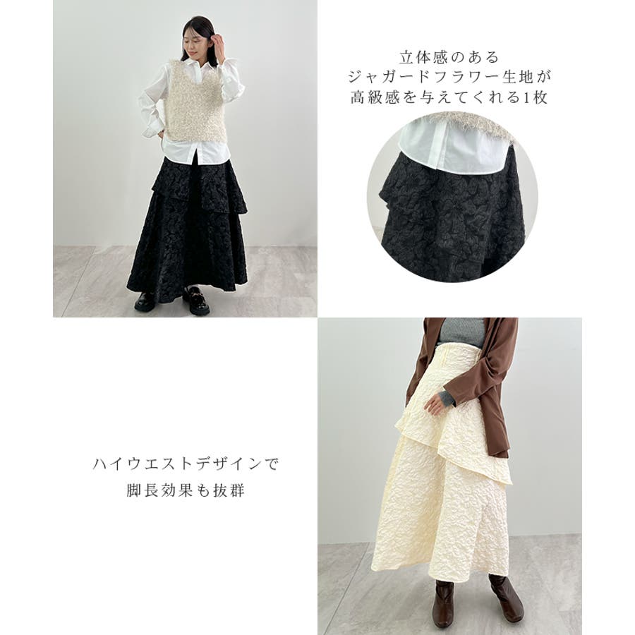 立体感のあるジャガード素材が高見え!ハイウエストスカートが新登場!