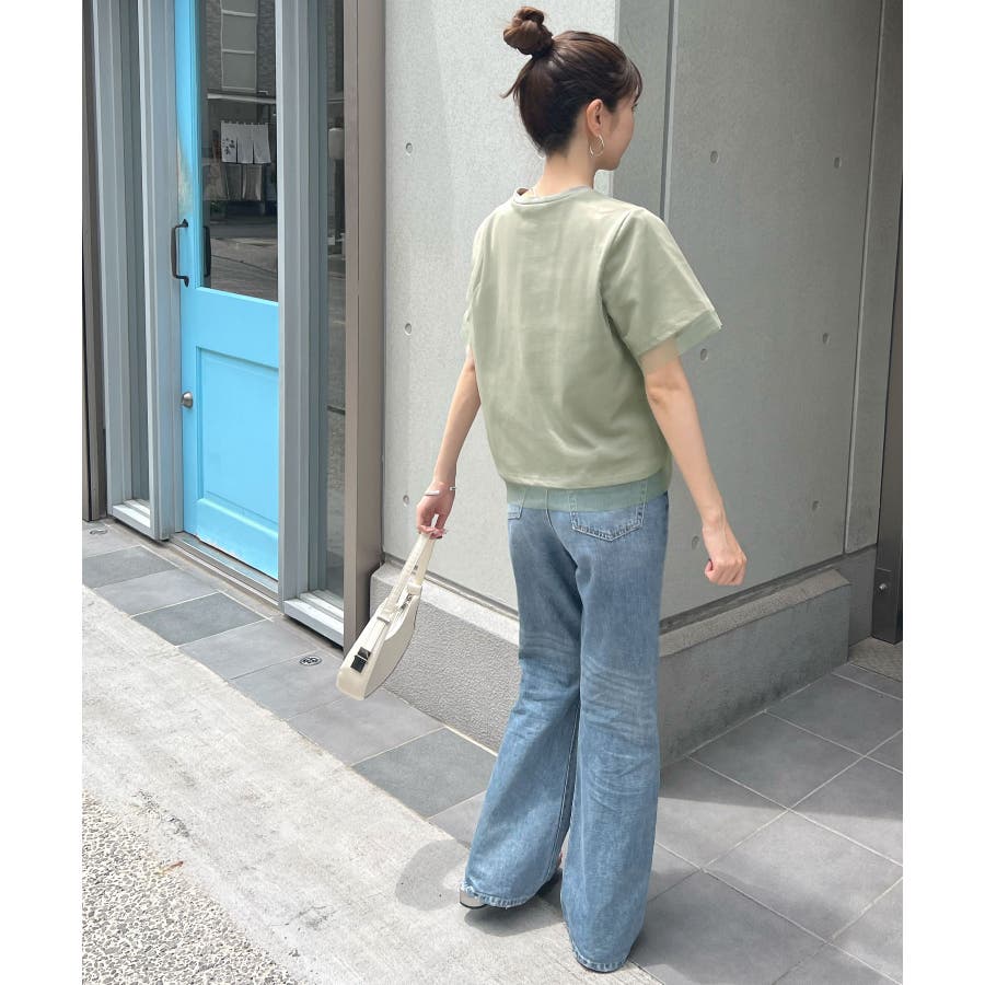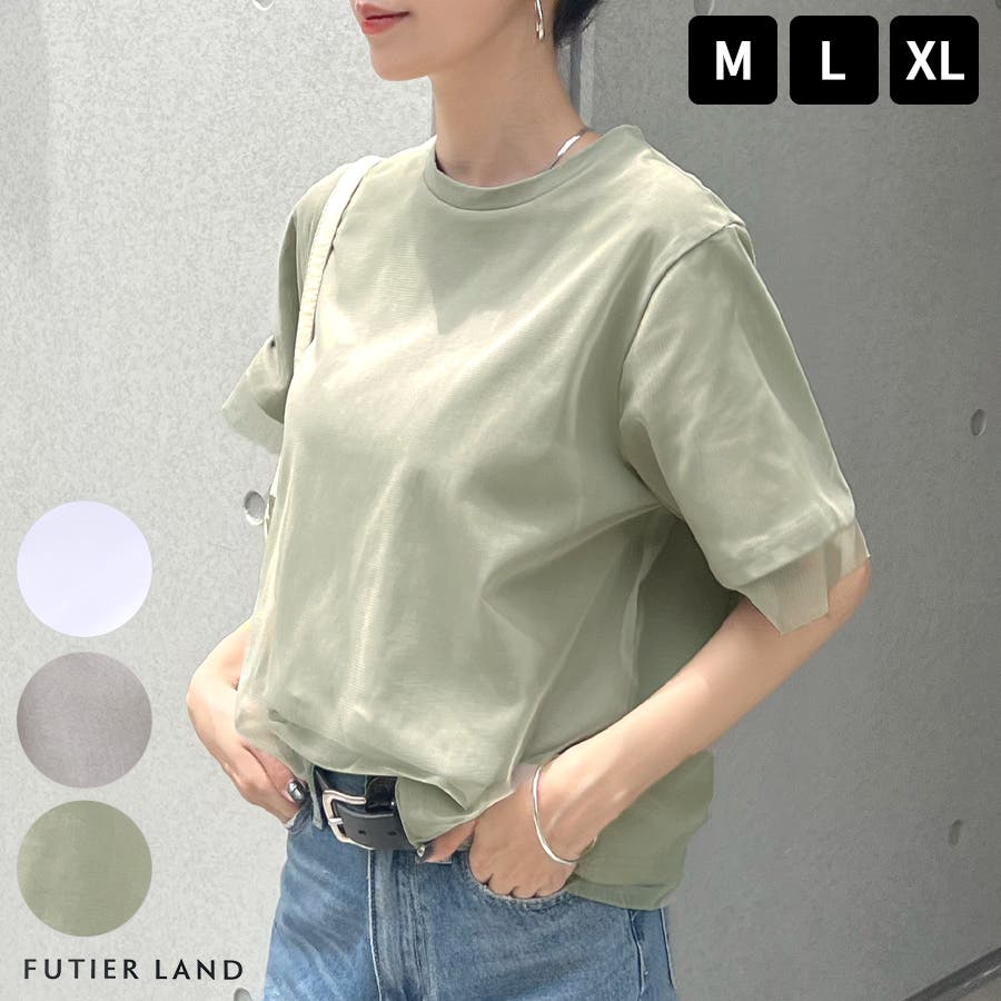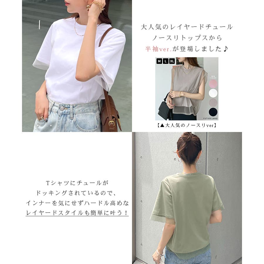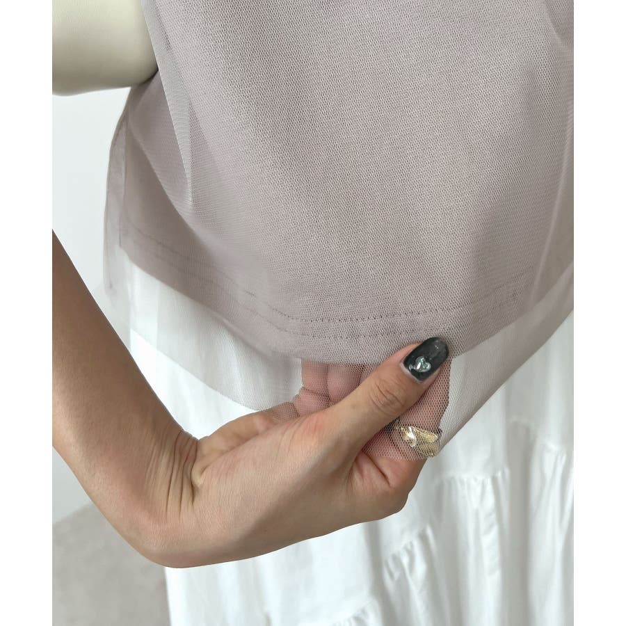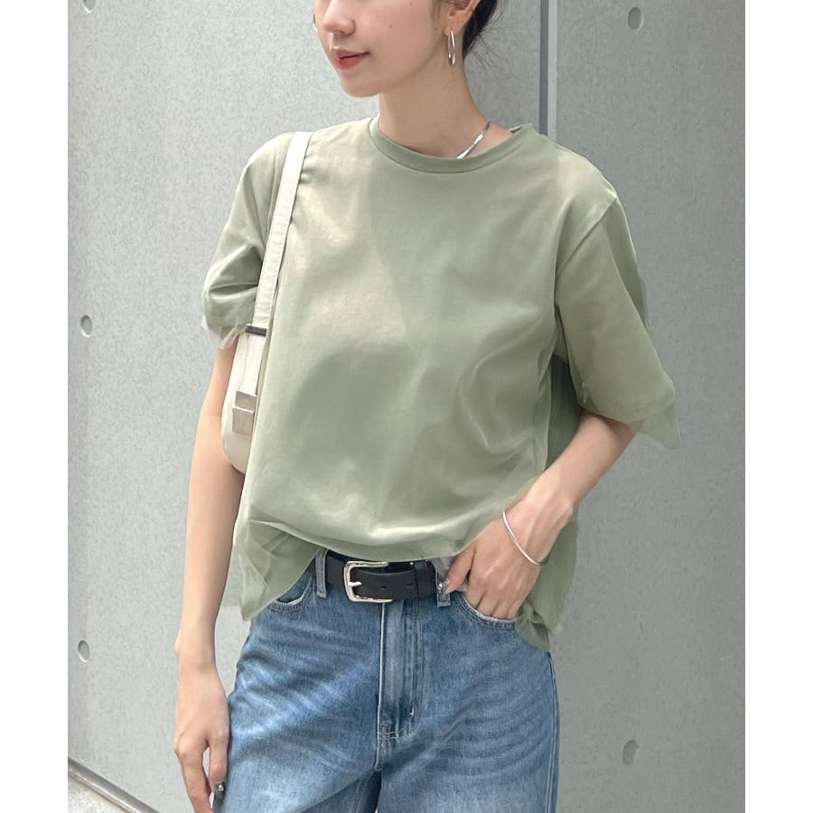 【ミントグリーン】甘さと上品さをプラス。レイヤードシアーチュール半袖Tシャツ
