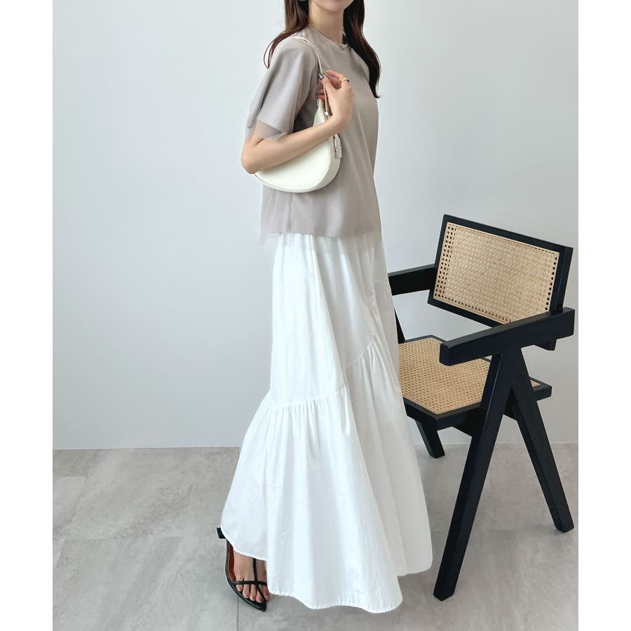 ・Tシャツにチュールがドッキングされているので、インナーを気にせずハードル高めなレイヤードスタイルも簡単に叶う!