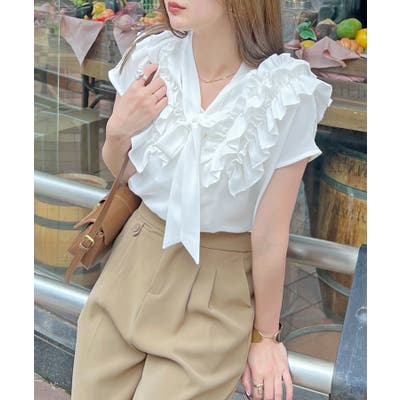さらっと決まる相性◎フレンチスリーブショルダーフリルリボンブラウス