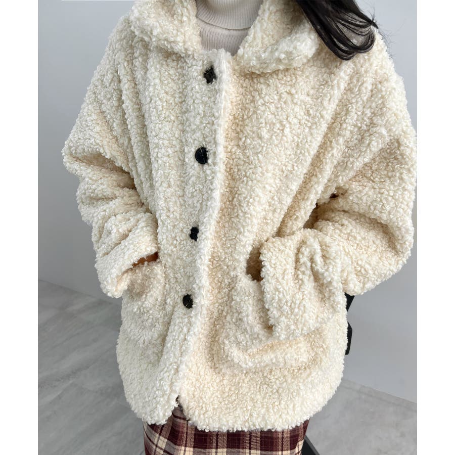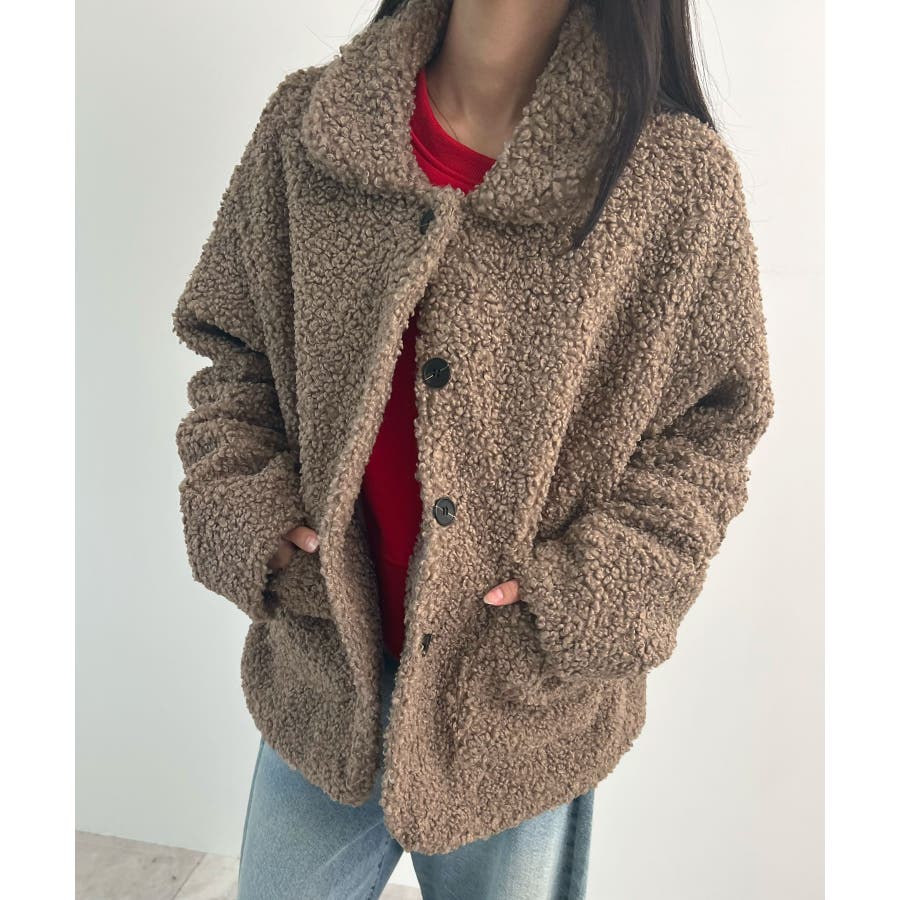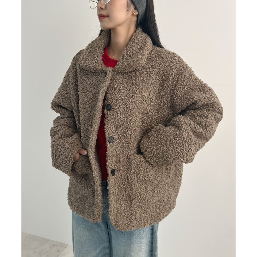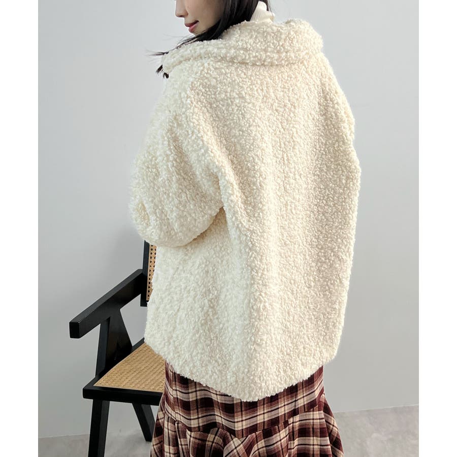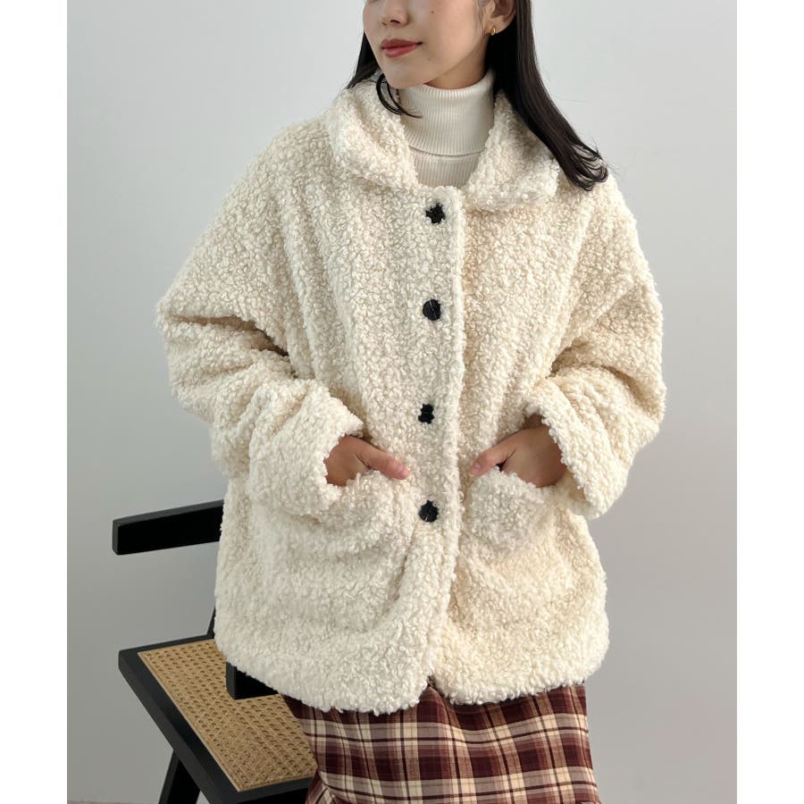 襟付きで品よくあったか。襟つきカーリーボアコート