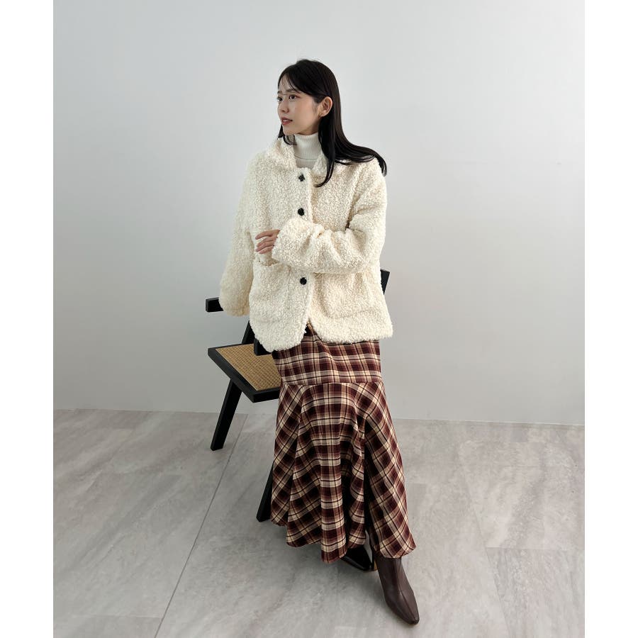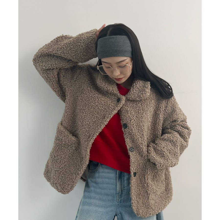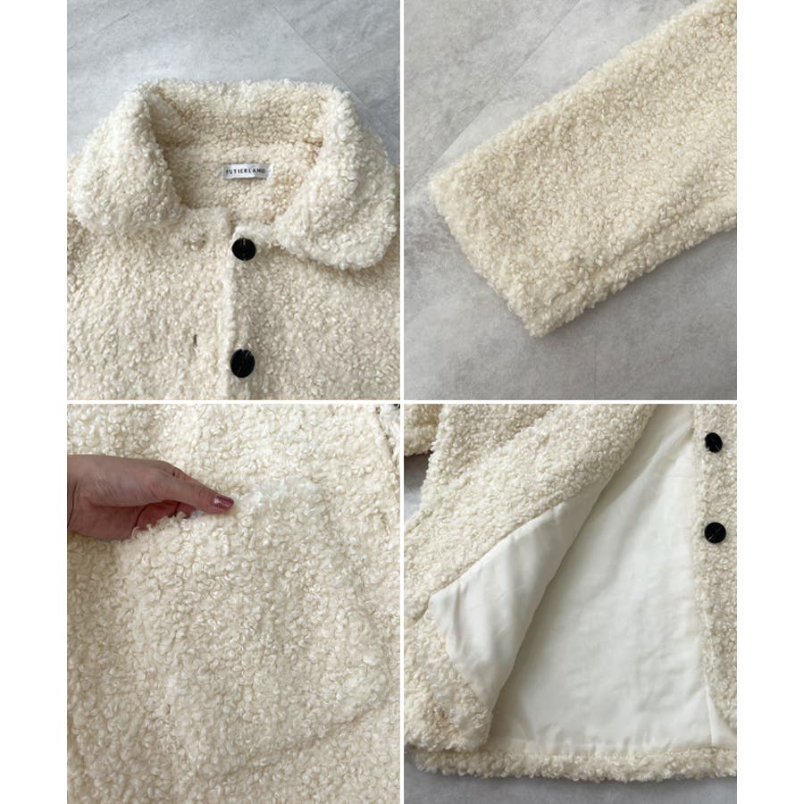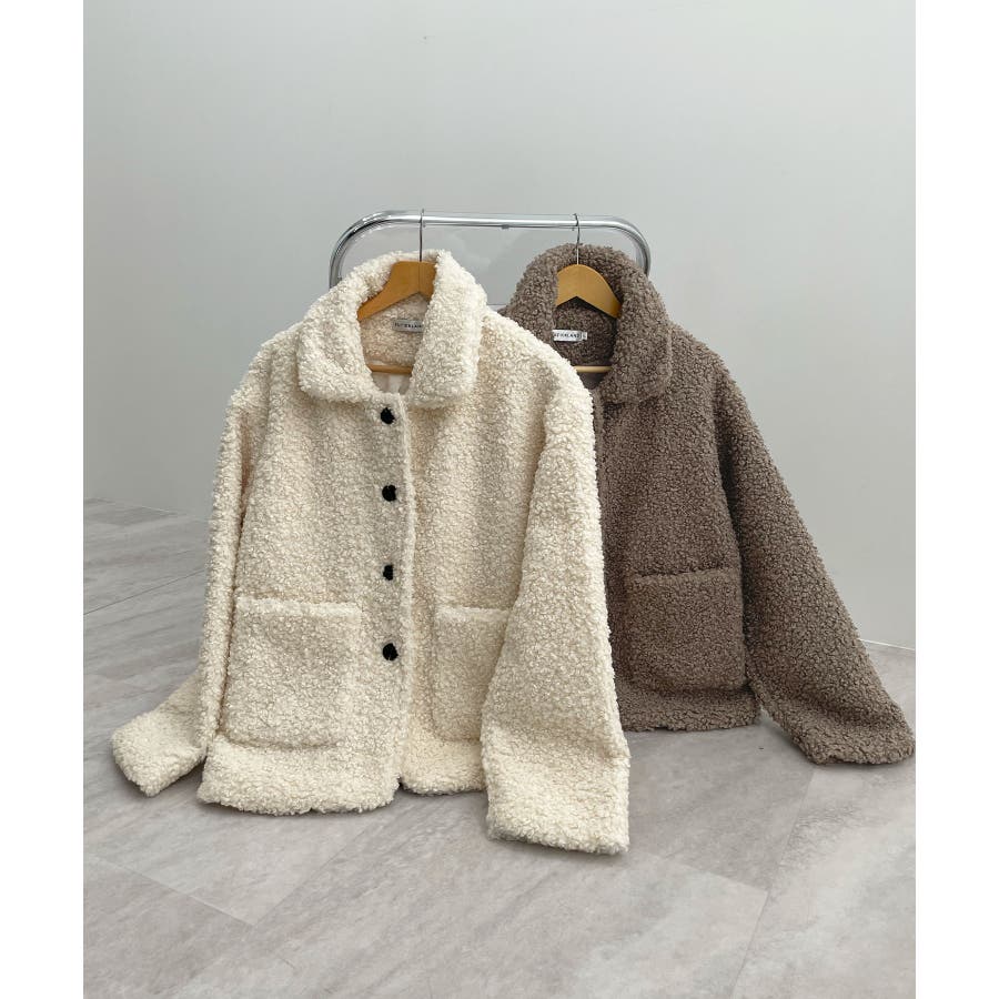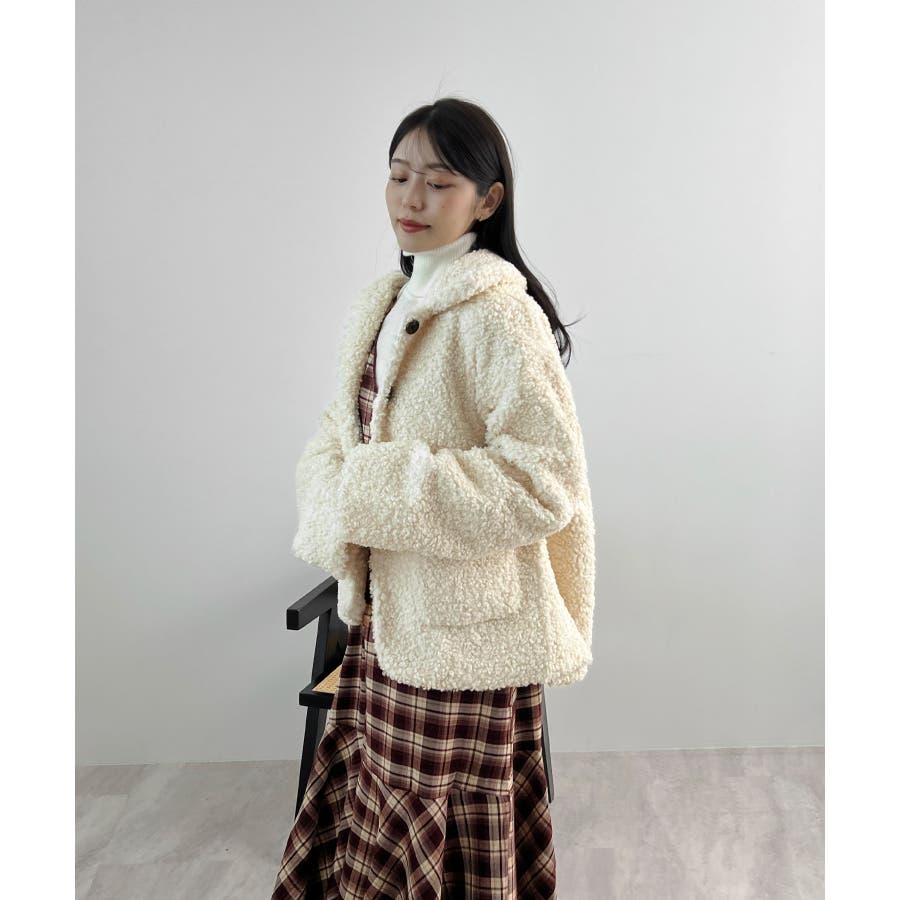 襟付きで品よくあったか。襟つきカーリーボアコート