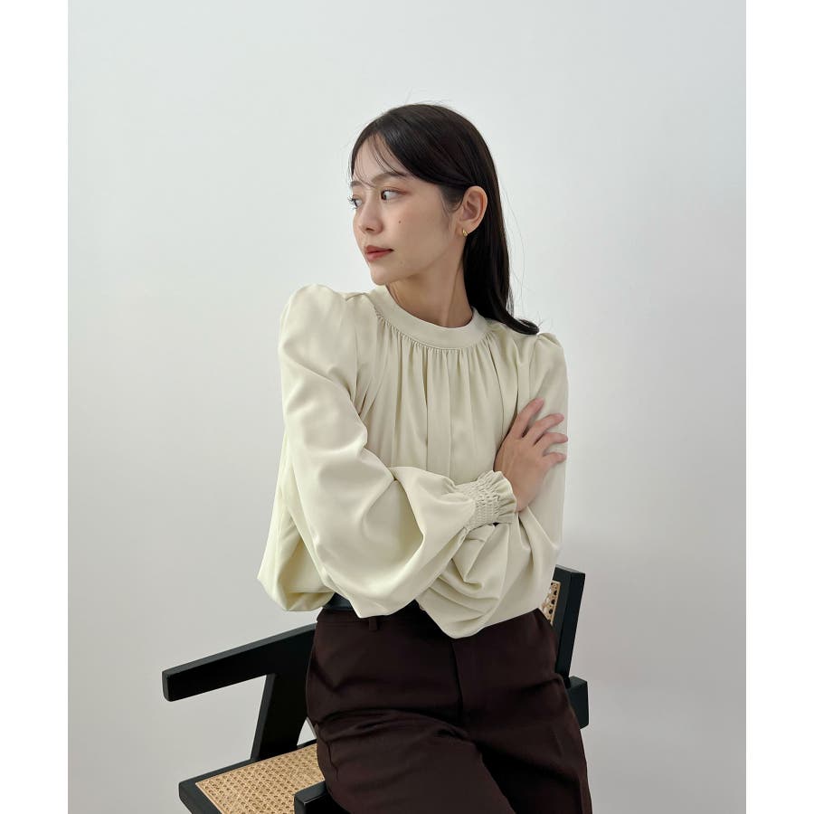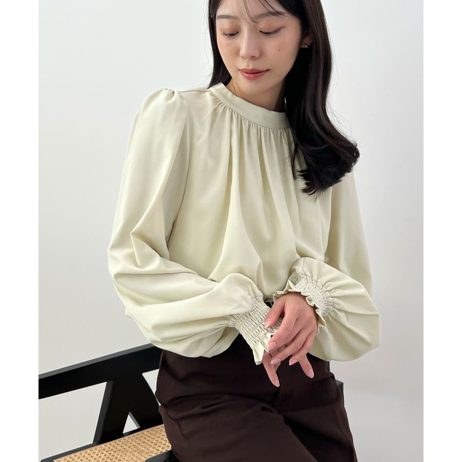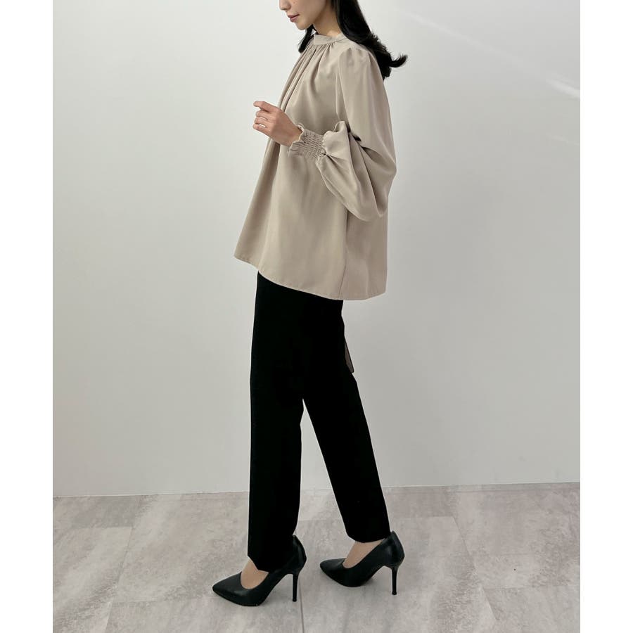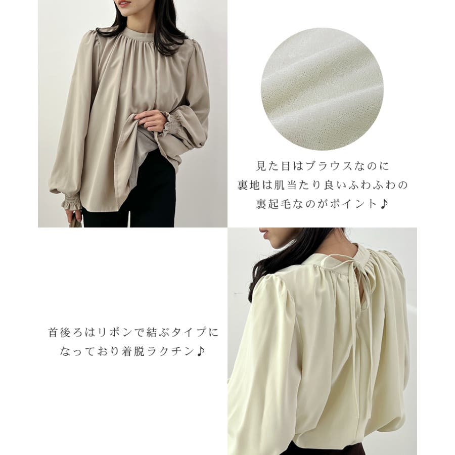 裏起毛あたたかい。ハイネックバルーンスリーブブラウス