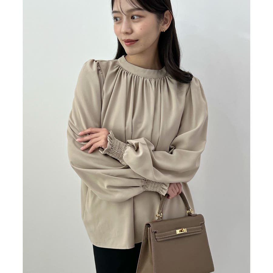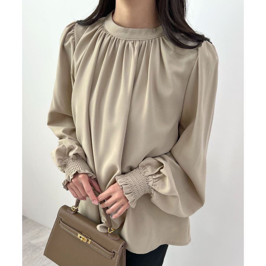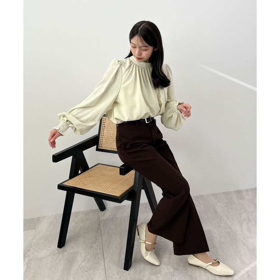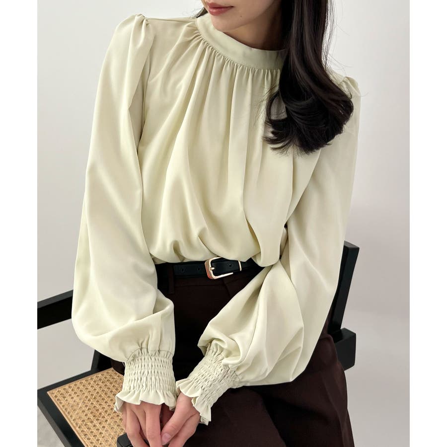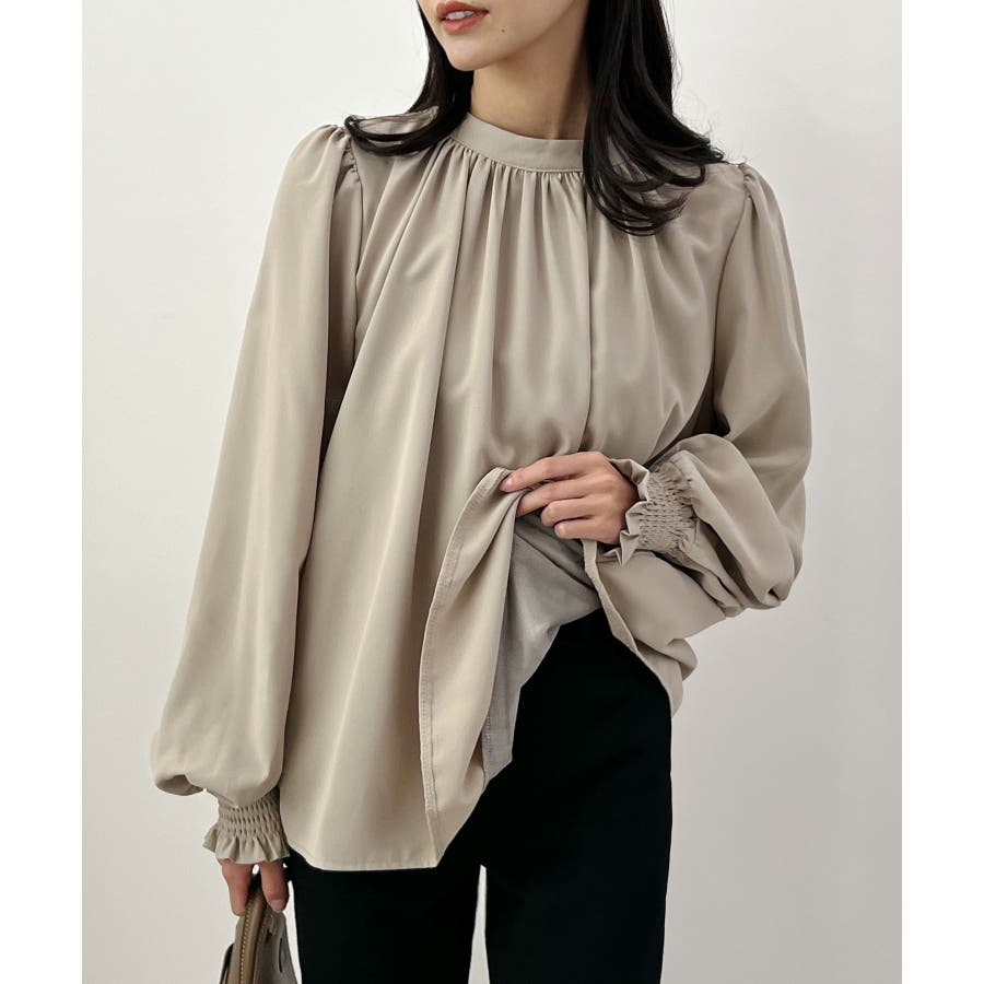 裏起毛あたたかい。ハイネックバルーンスリーブブラウス