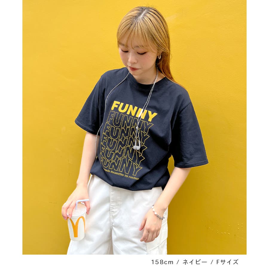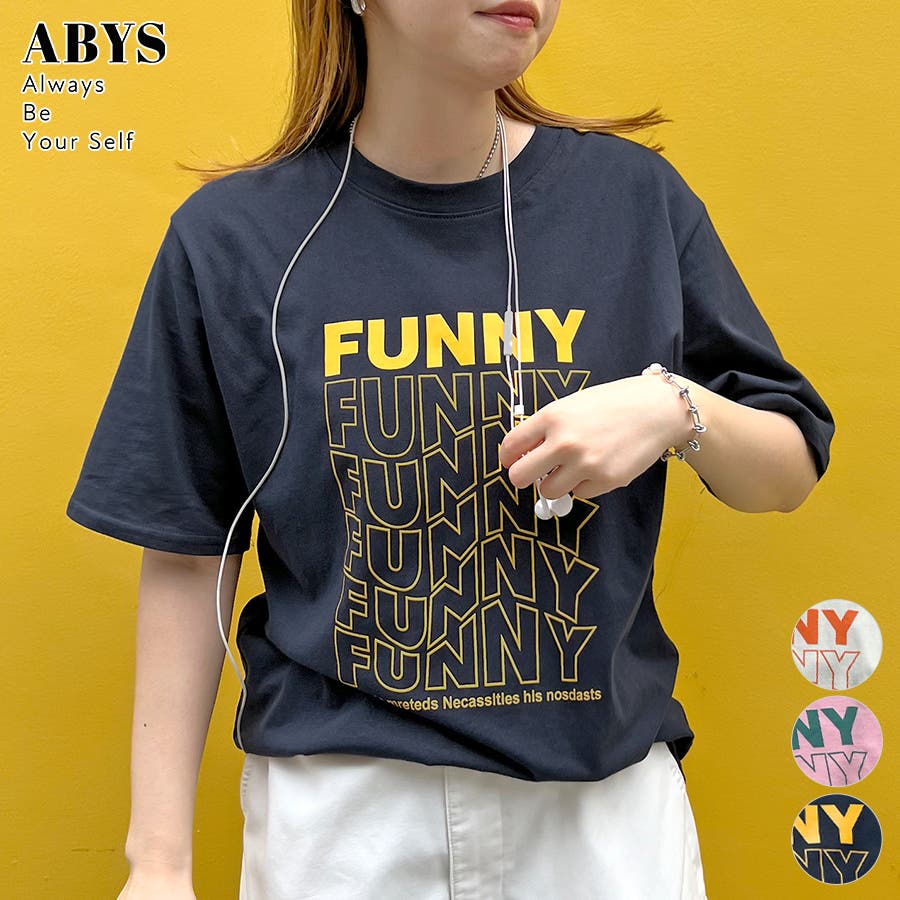 《ABYSアビス》目を惹く。FUNNYロゴプリント半袖Tシャツ