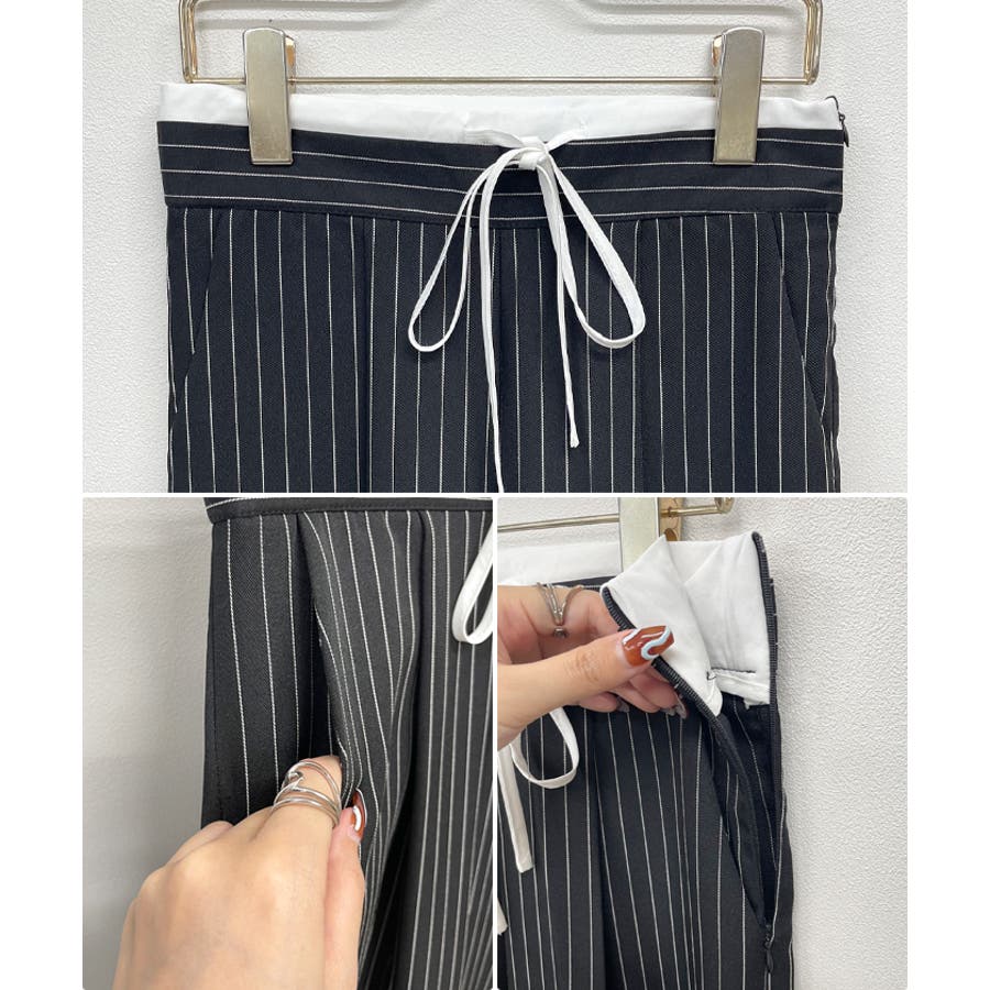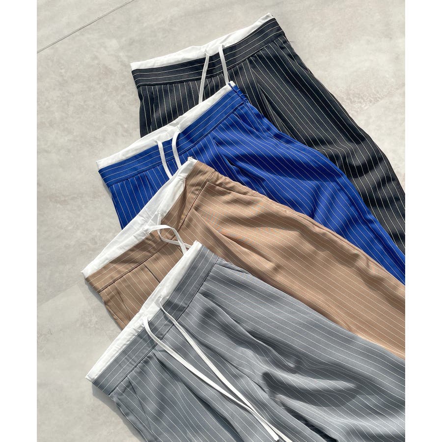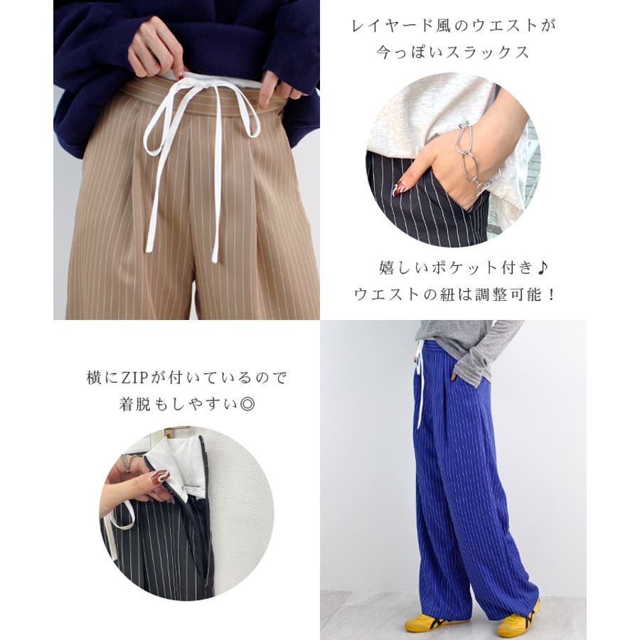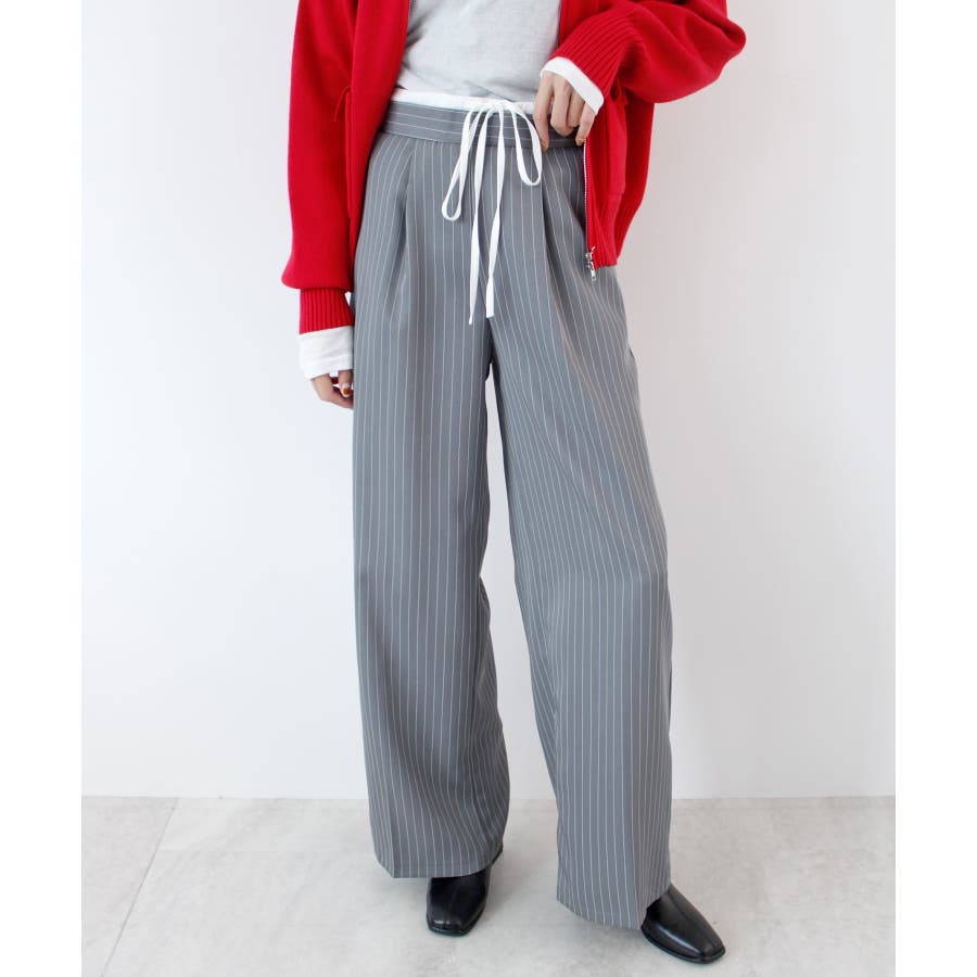 【チラ見せウエストがお洒落!レイヤードピンストライプパンツが新登場】