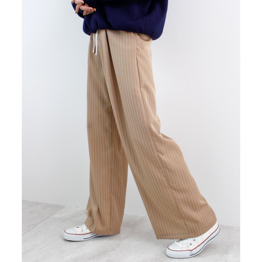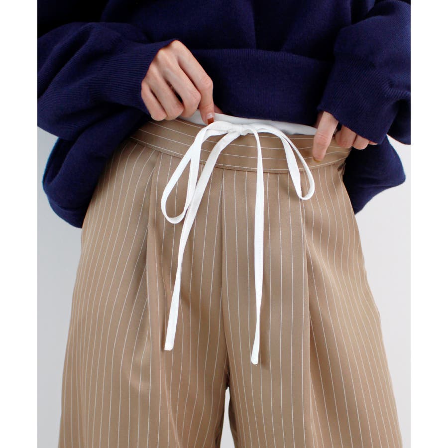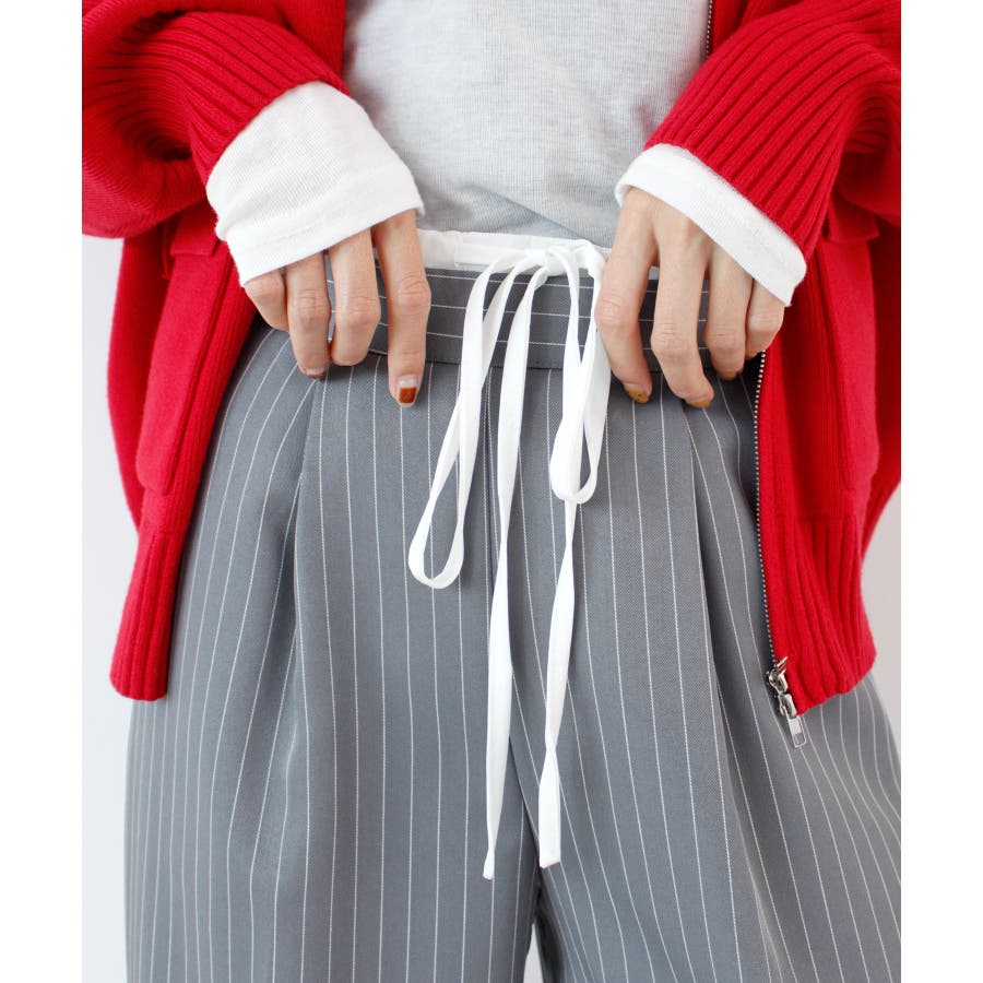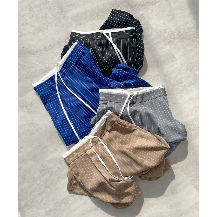 【チラ見せウエストがお洒落!レイヤードピンストライプパンツが新登場】
