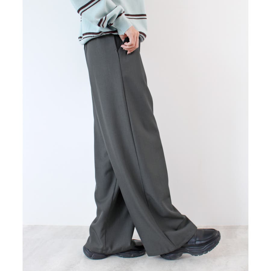 ・ボディラインを拾わないストンと落ちるストレートワイドシルエットスラックスは楽ちんな着心地ながら美脚効果抜群!