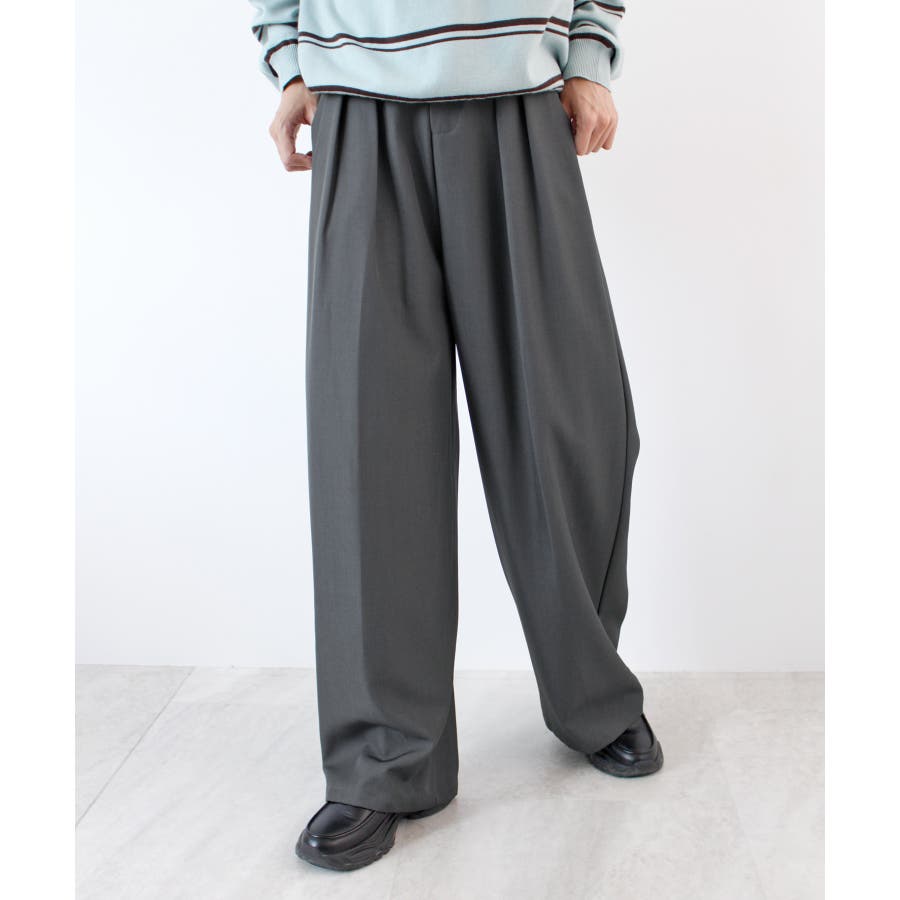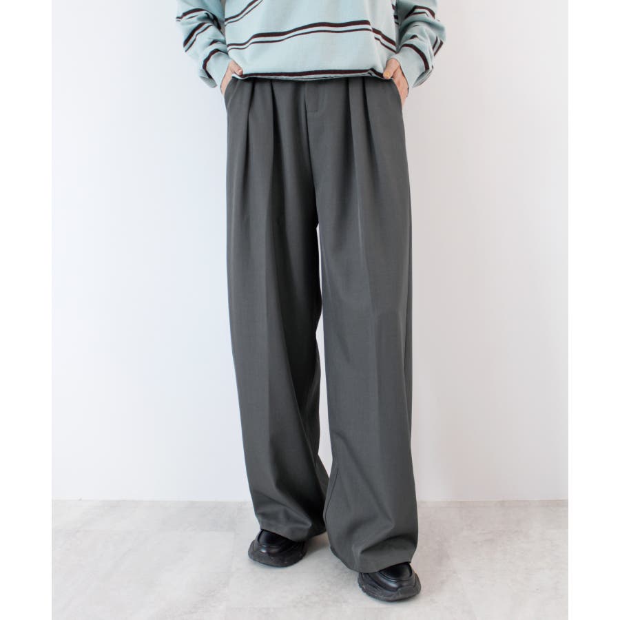 ゆるっと楽ちん。ツータックワイドストレートスラックス/ロング丈