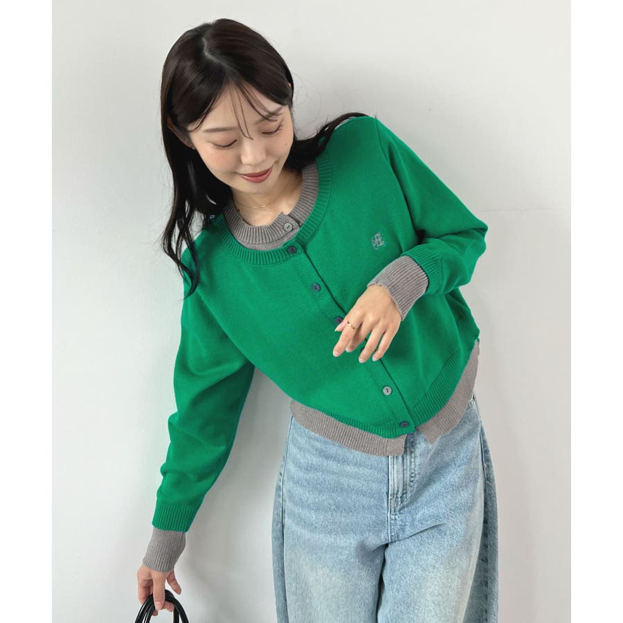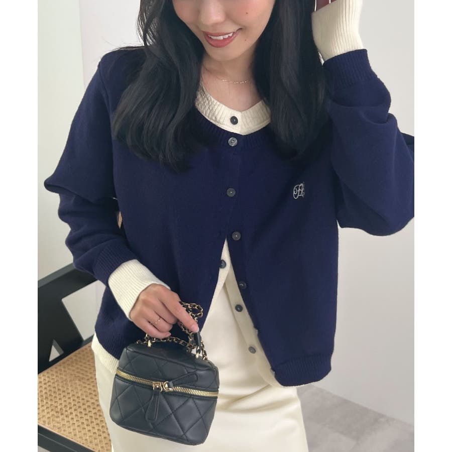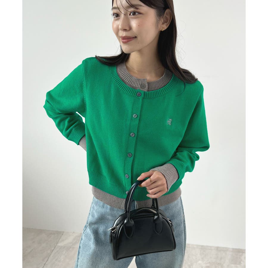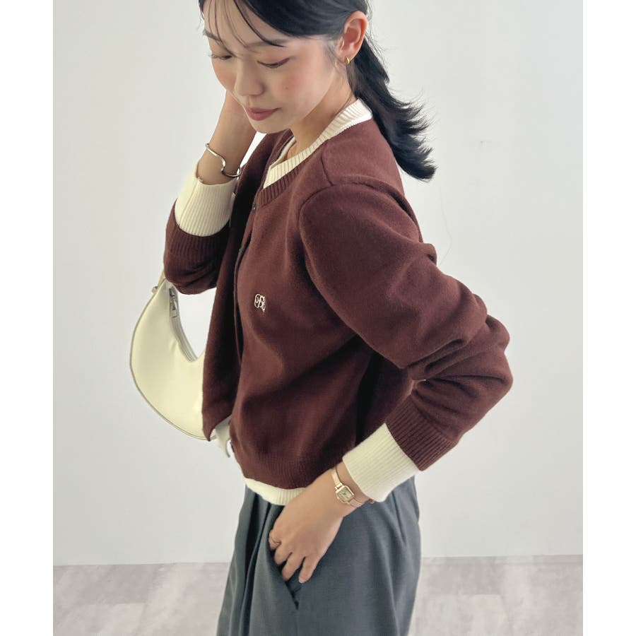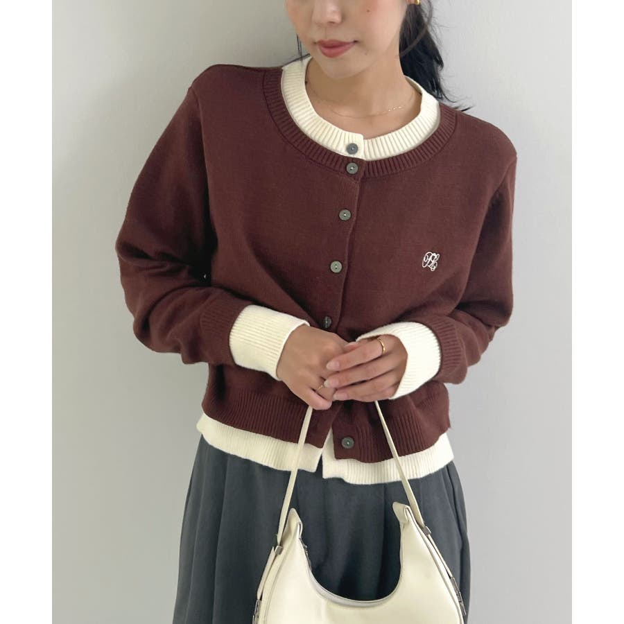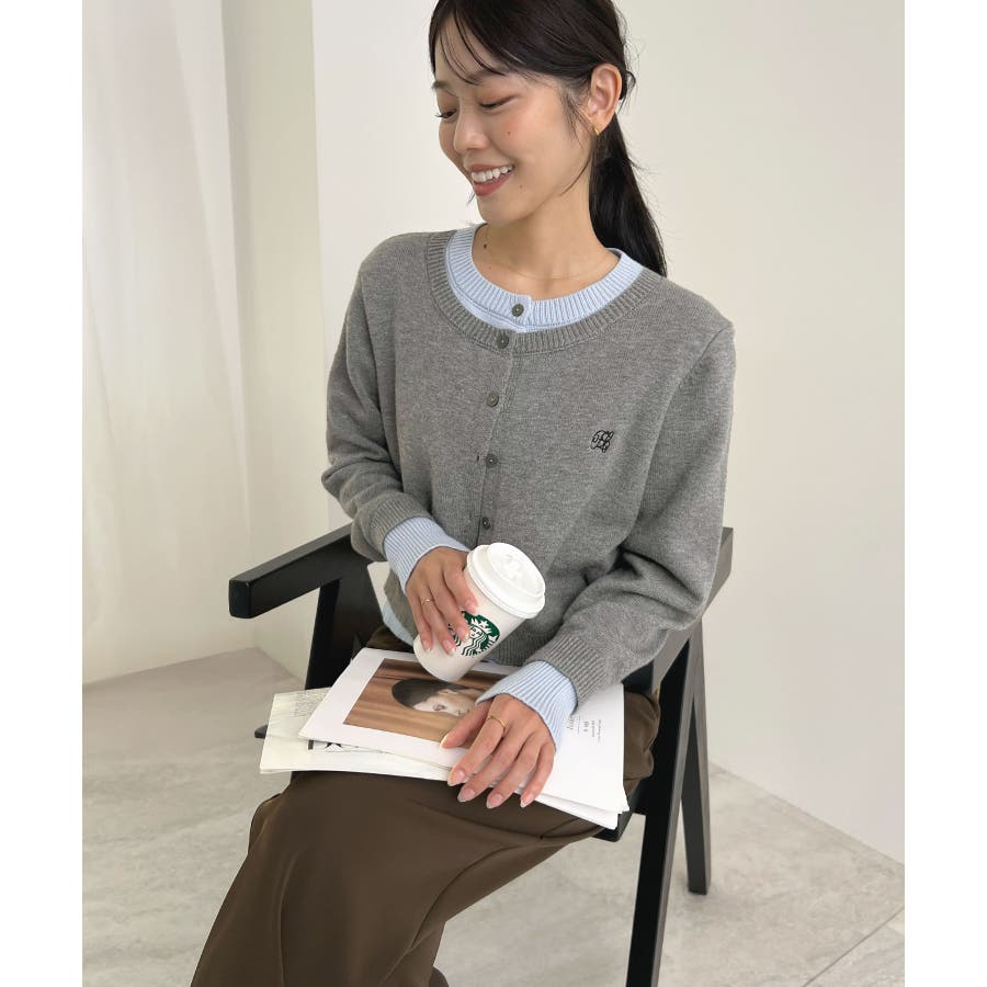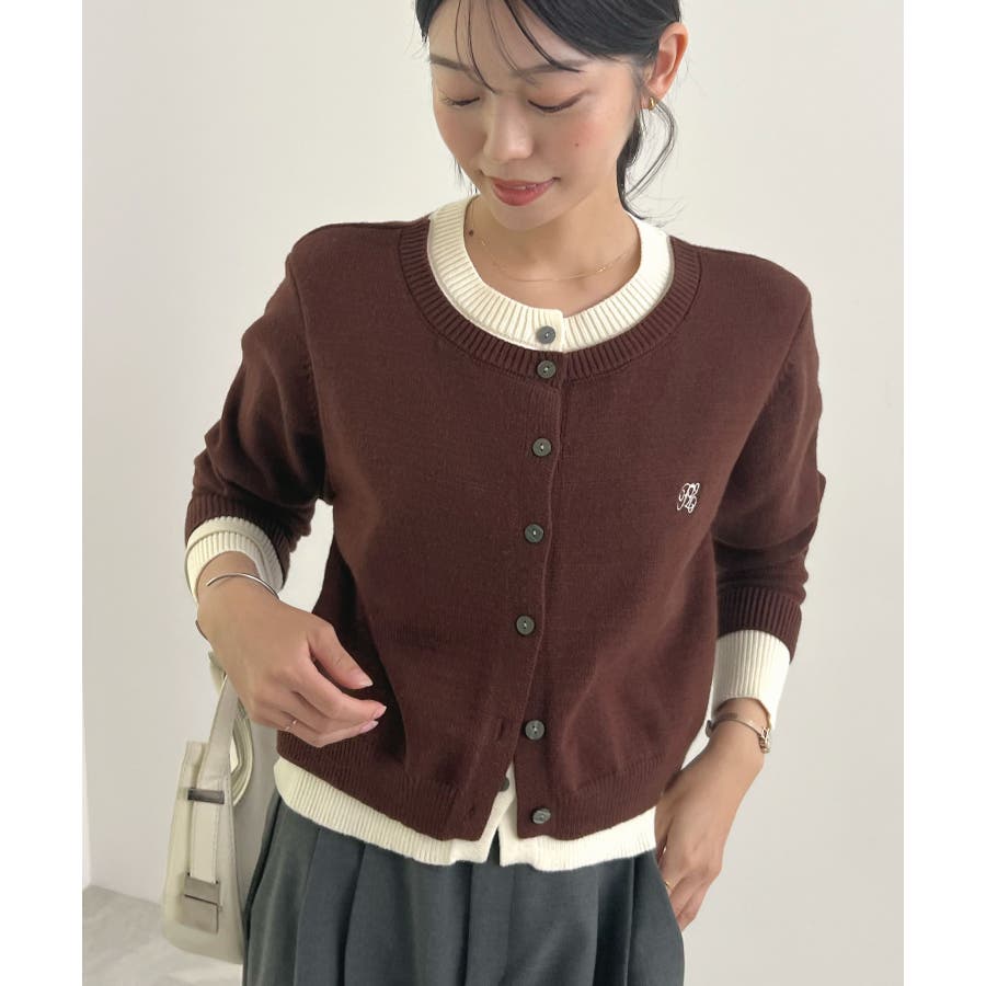 大人の配色。レイヤード風ロゴカーディガン