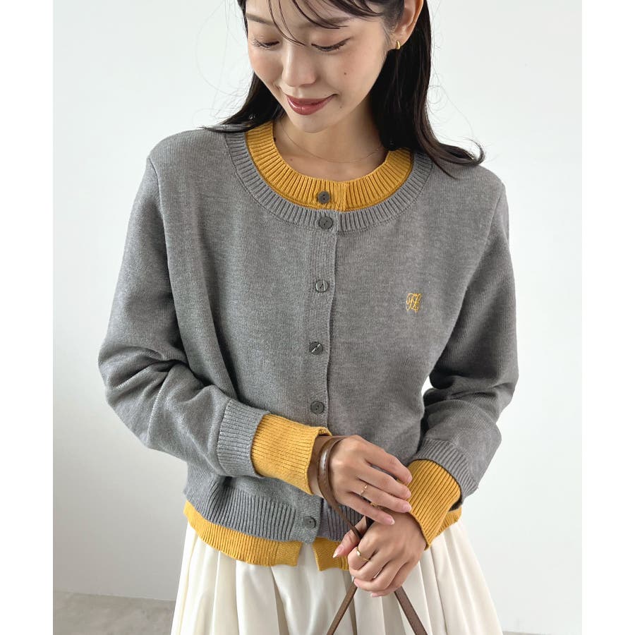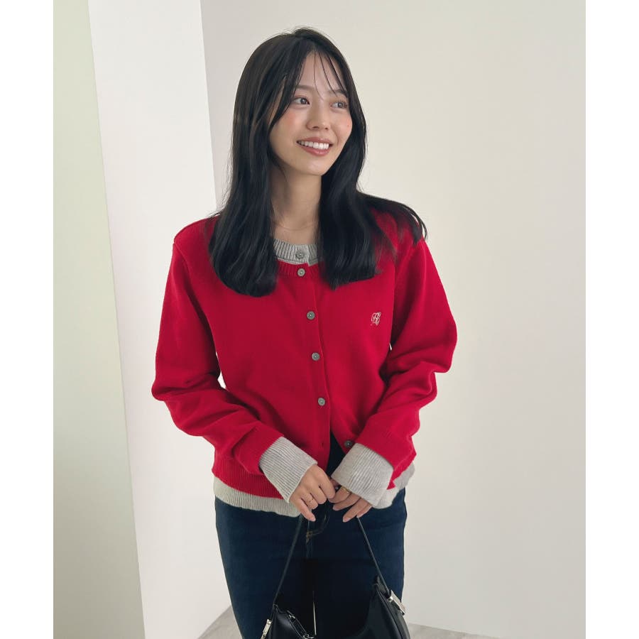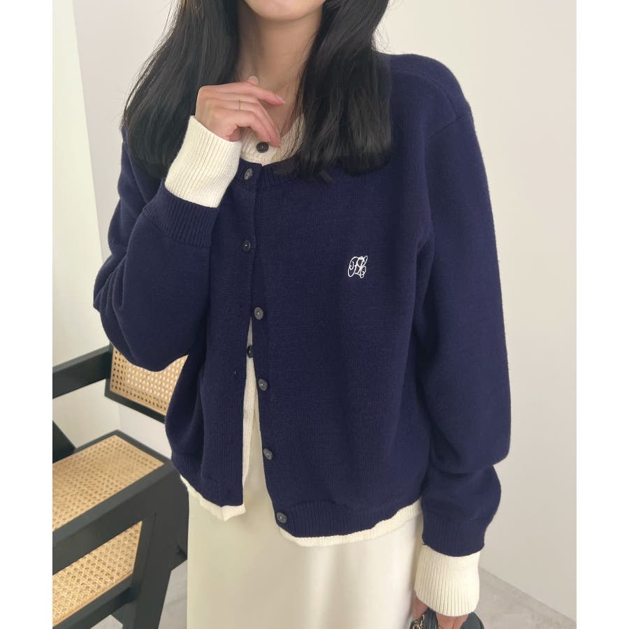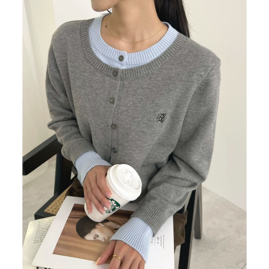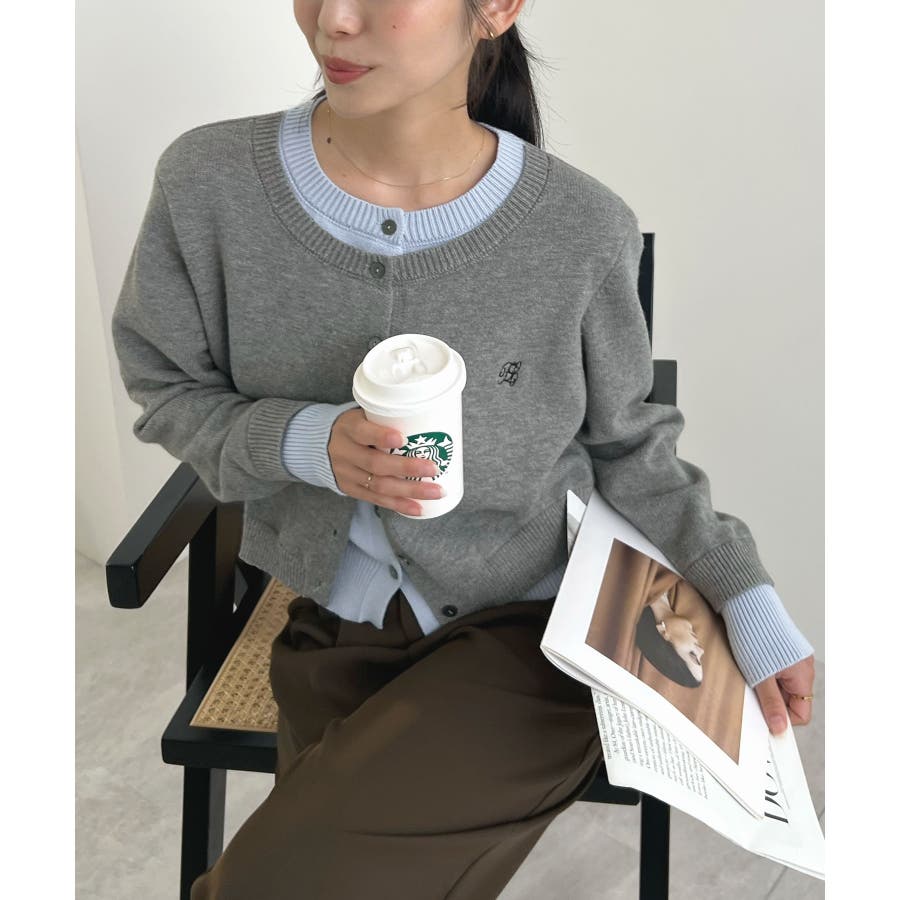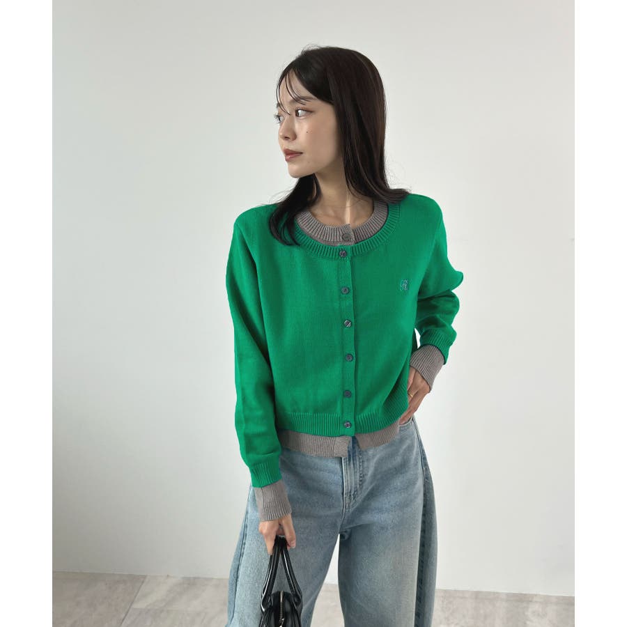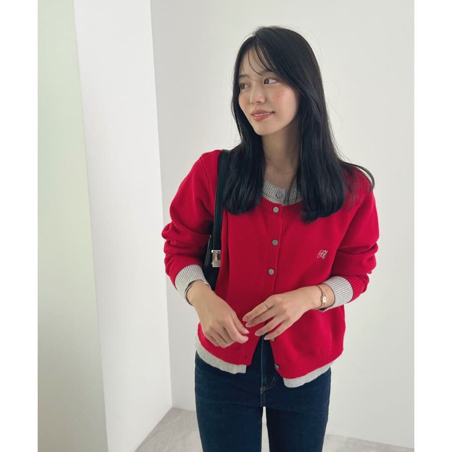 大人の配色。レイヤード風ロゴカーディガン