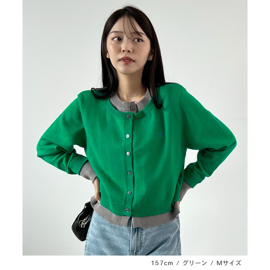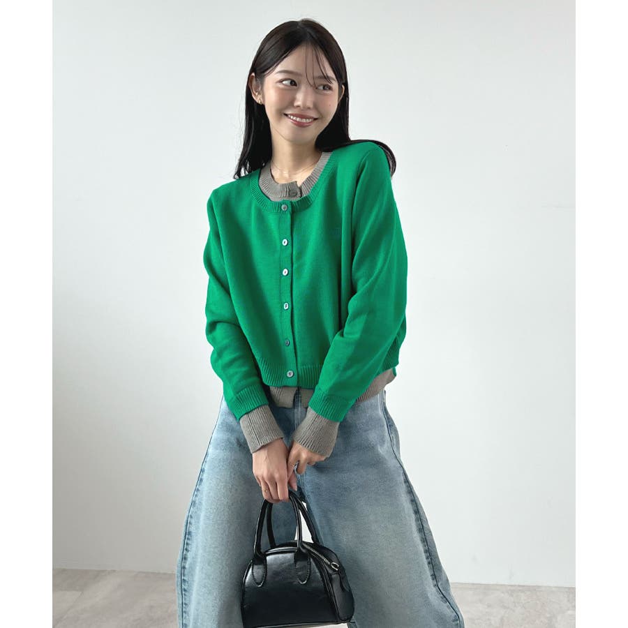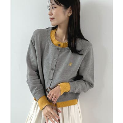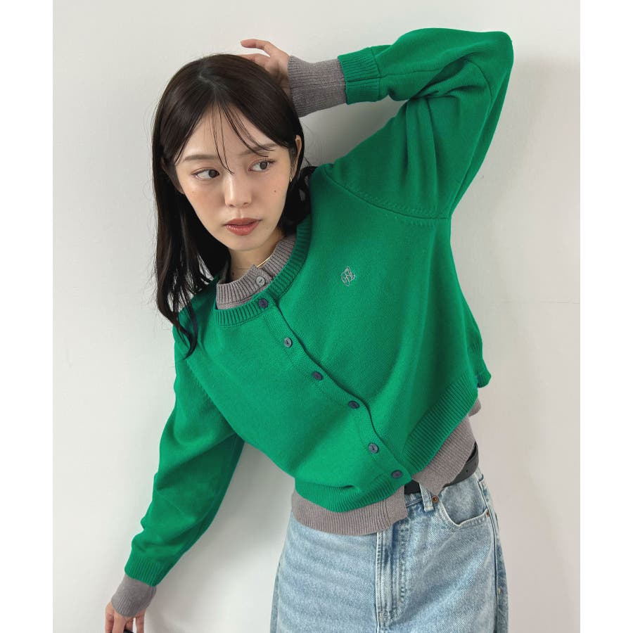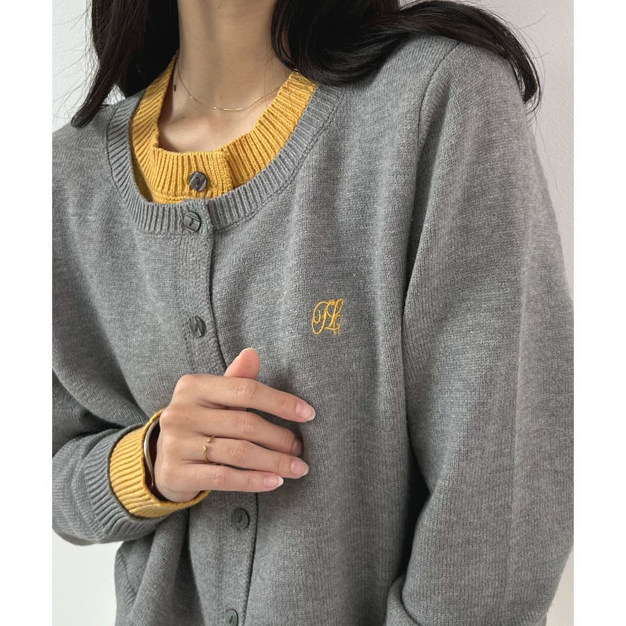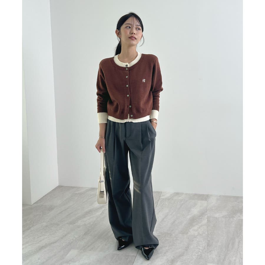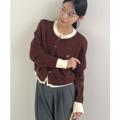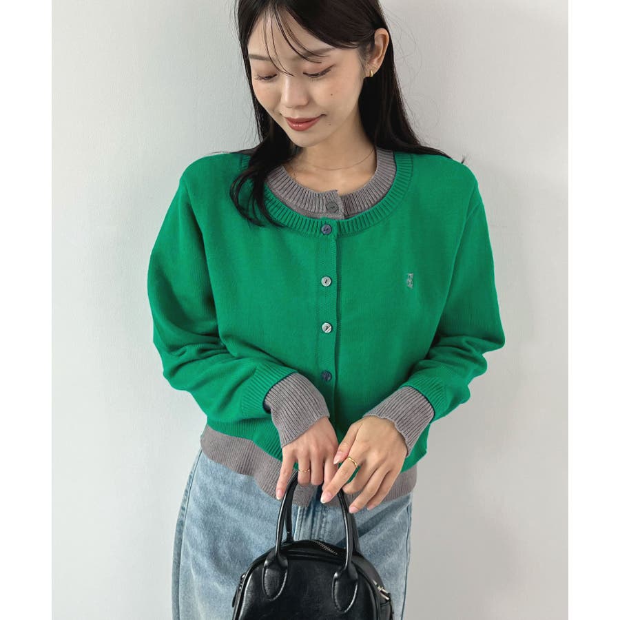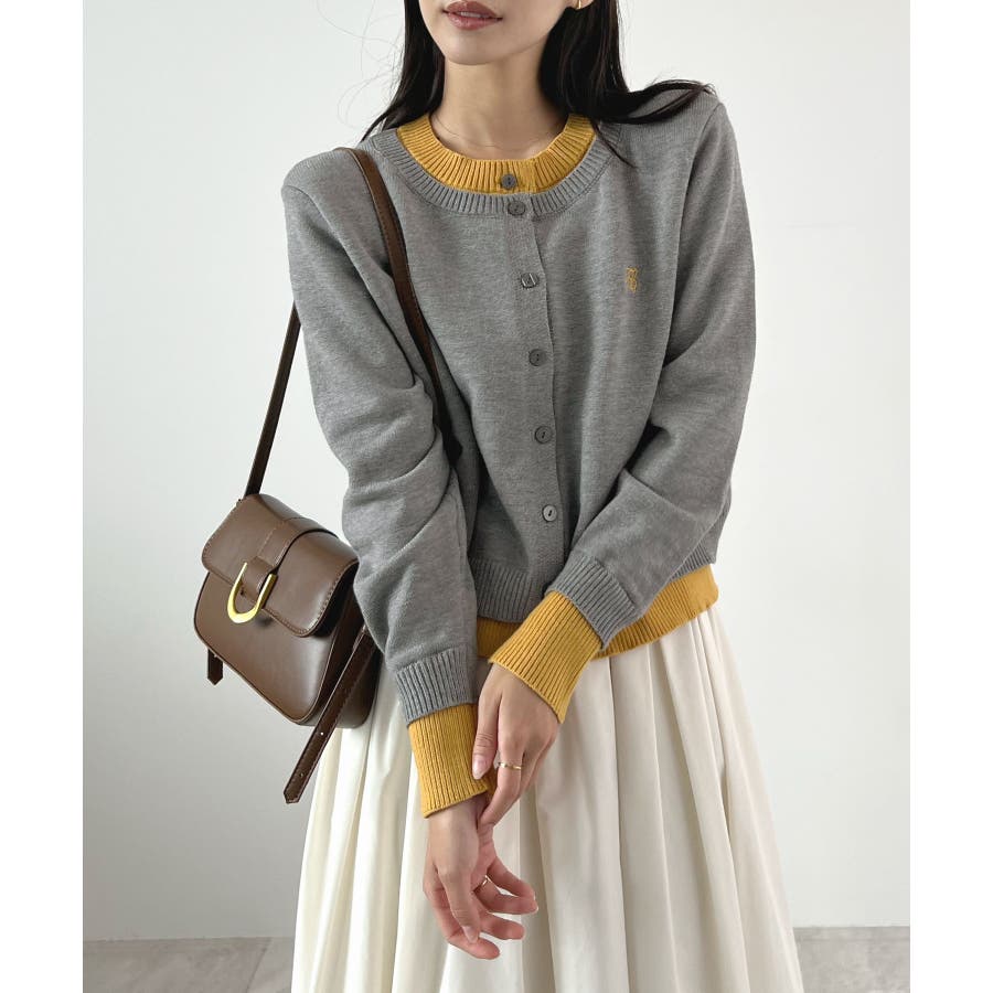 大人の配色。レイヤード風ロゴカーディガン