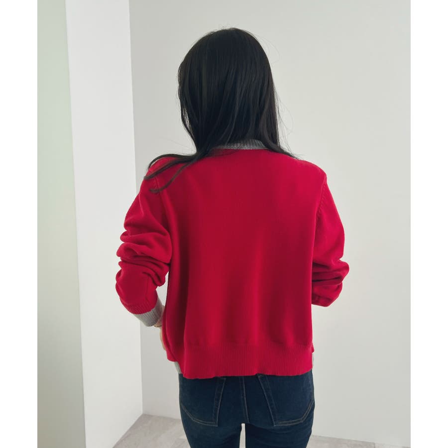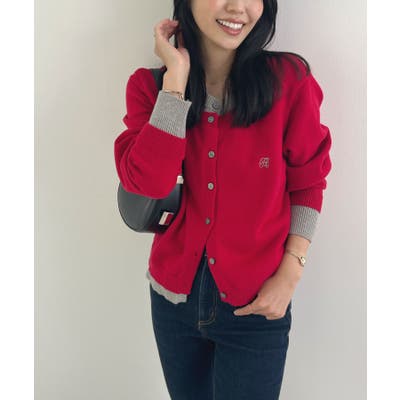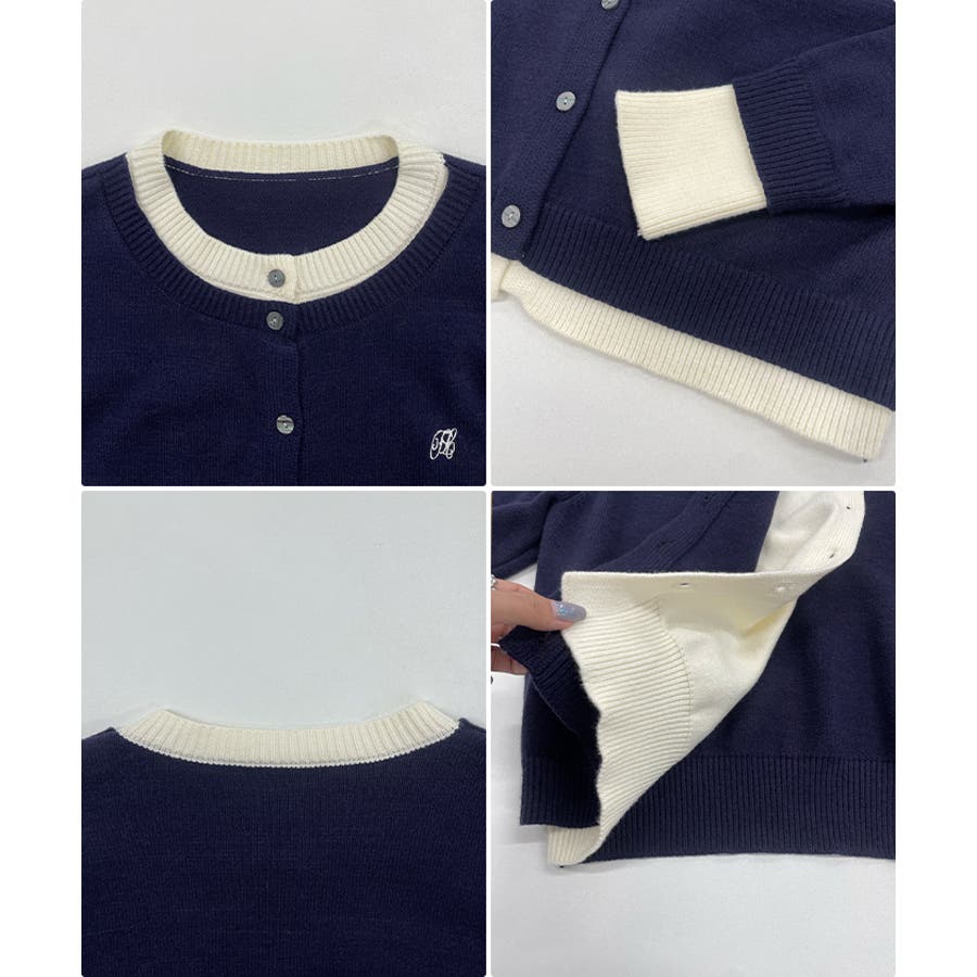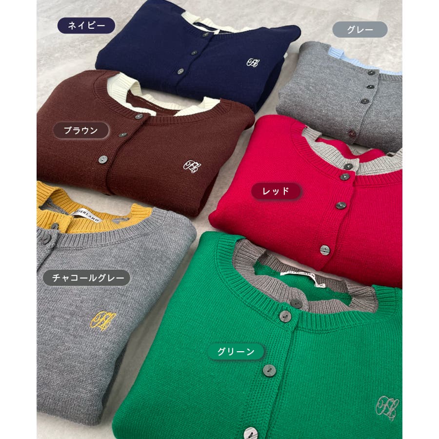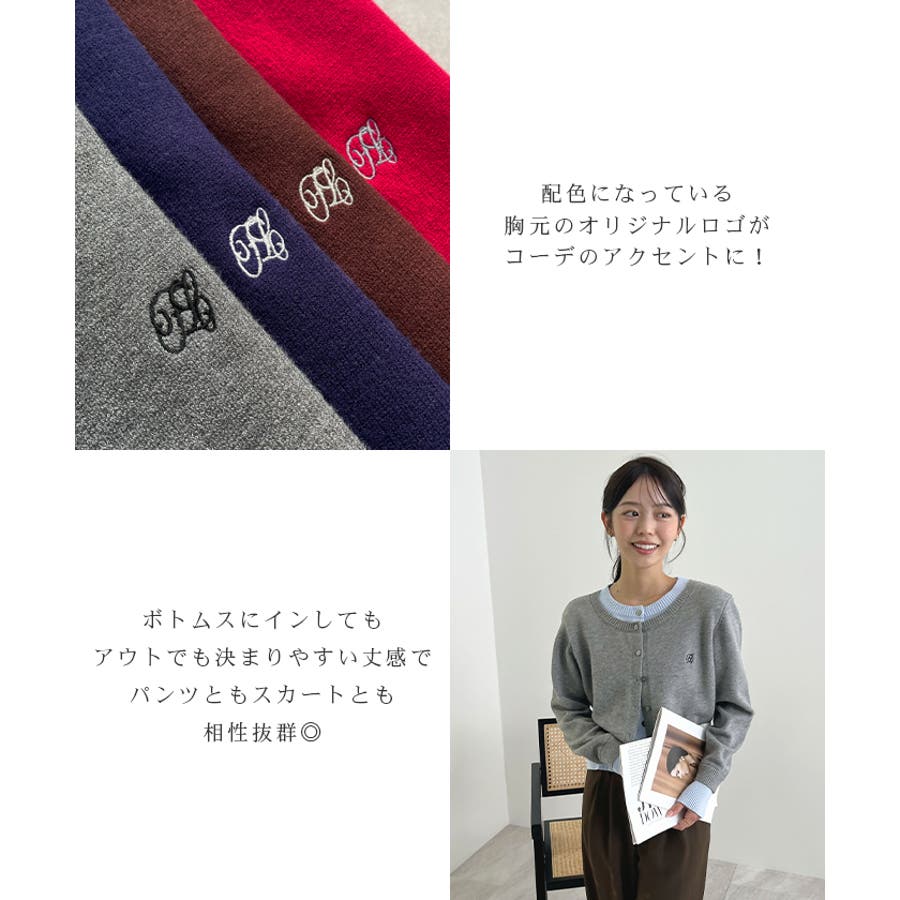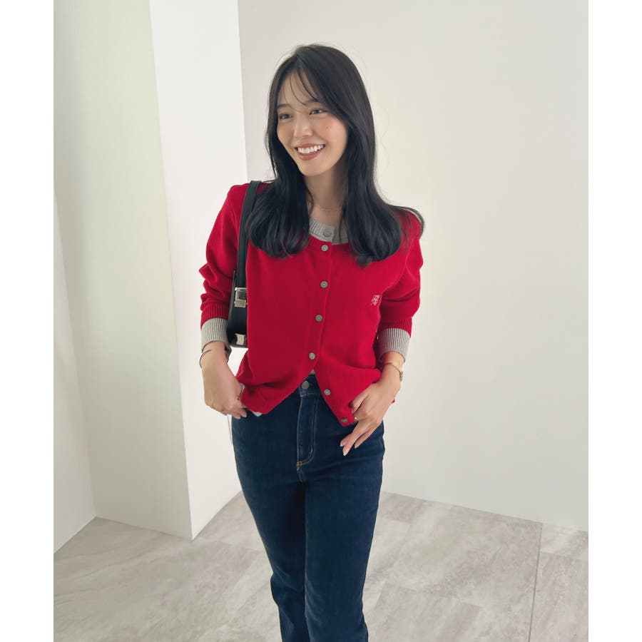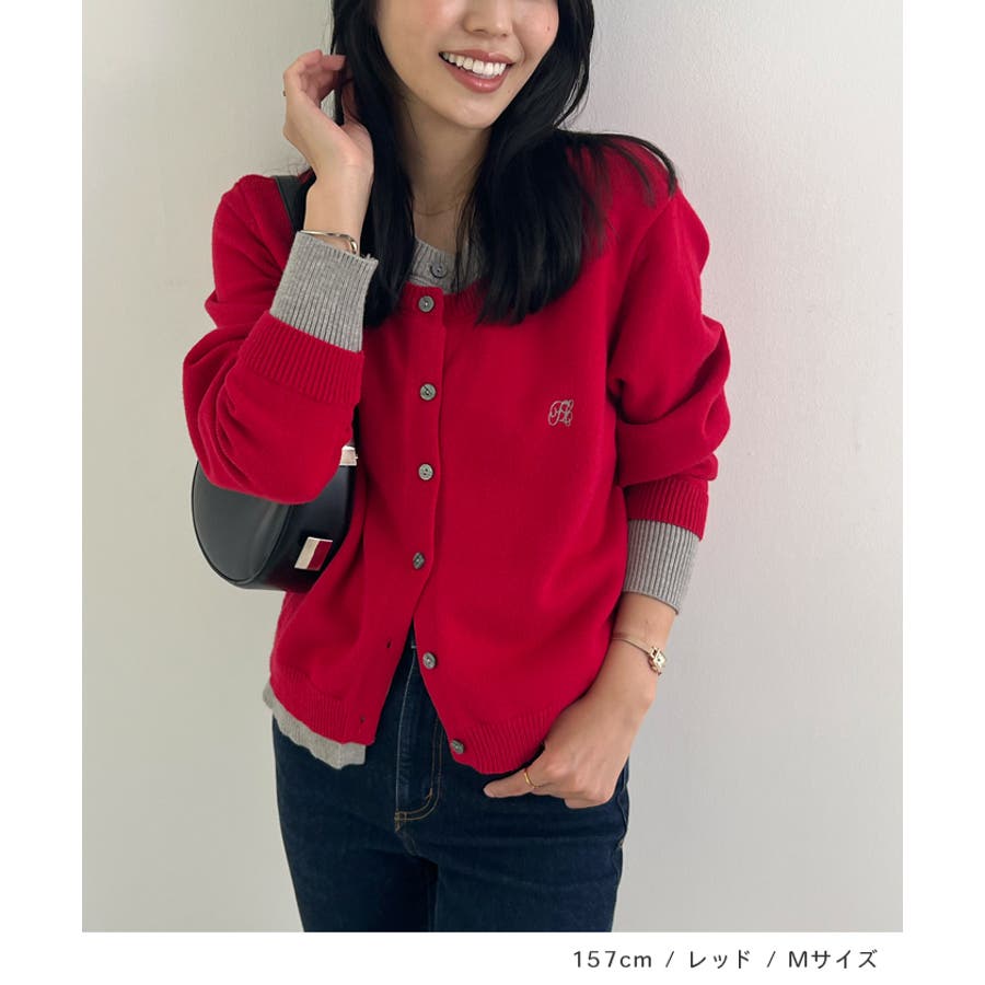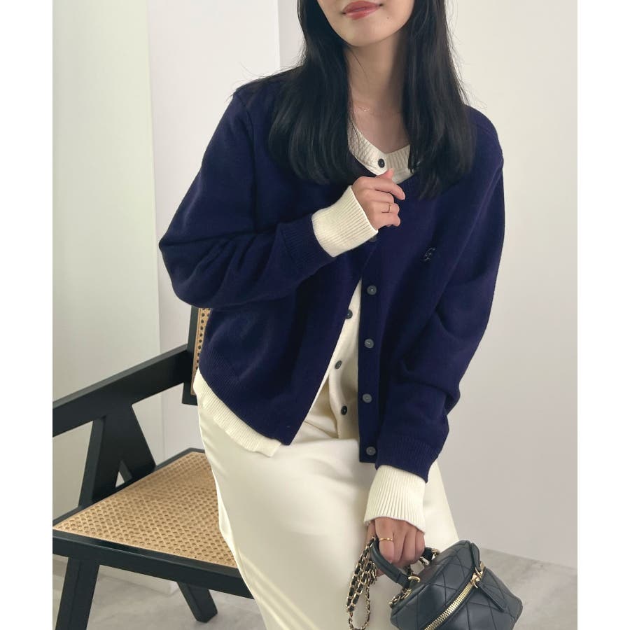 大人の配色。レイヤード風ロゴカーディガン