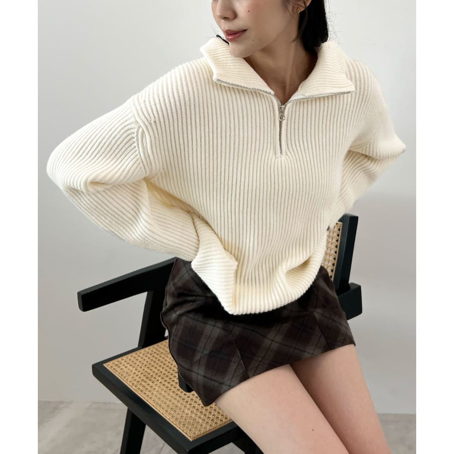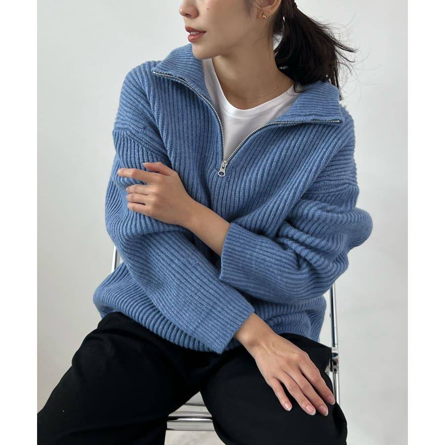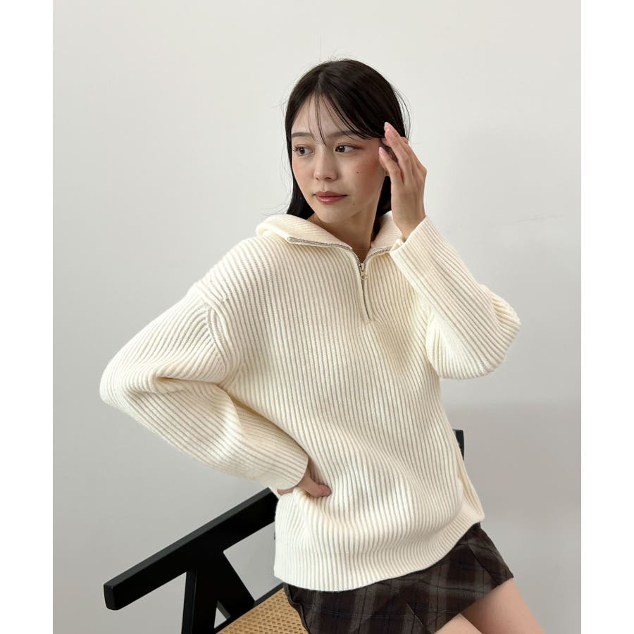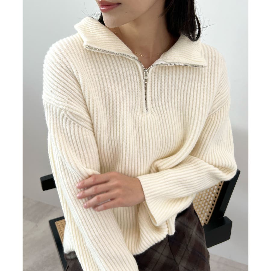 ジップで魅せるこなれニット。ハーフジップニットプルオーバー