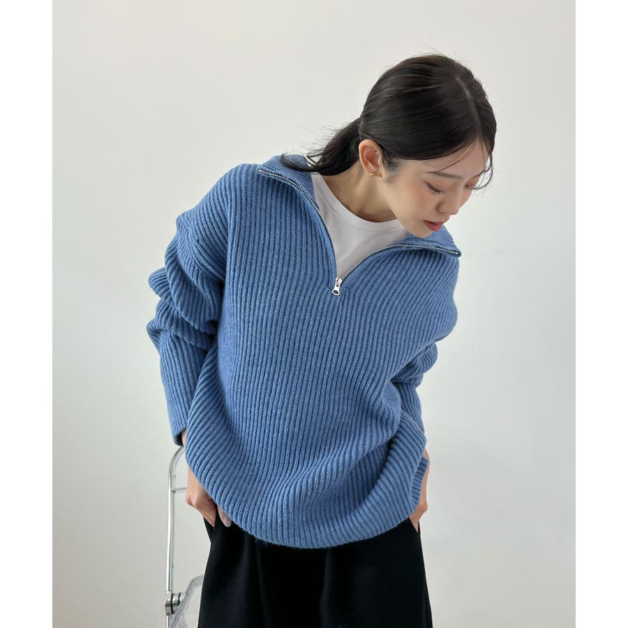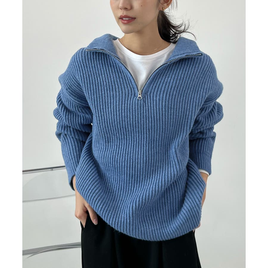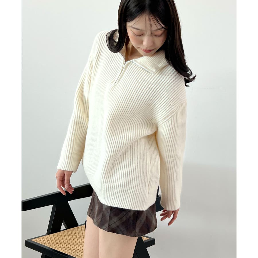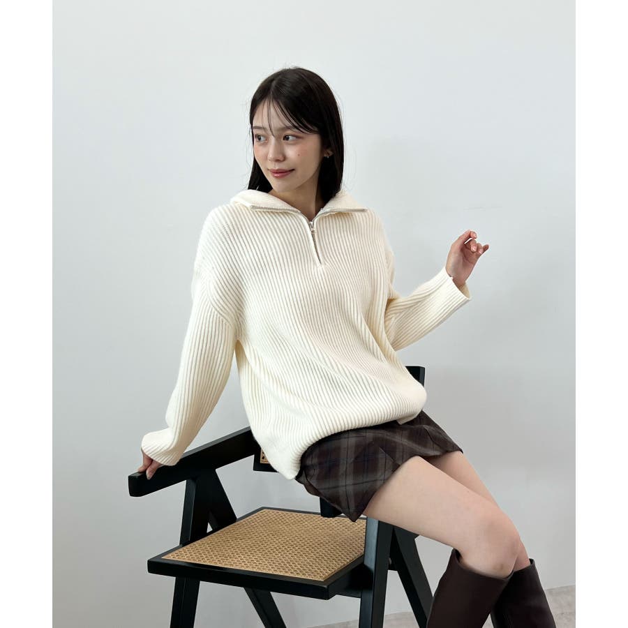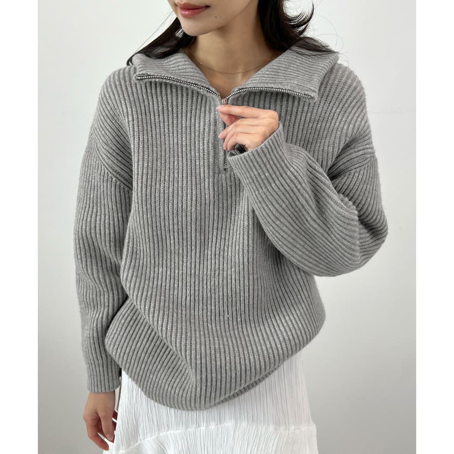 ジップで魅せるこなれニット。ハーフジップニットプルオーバー