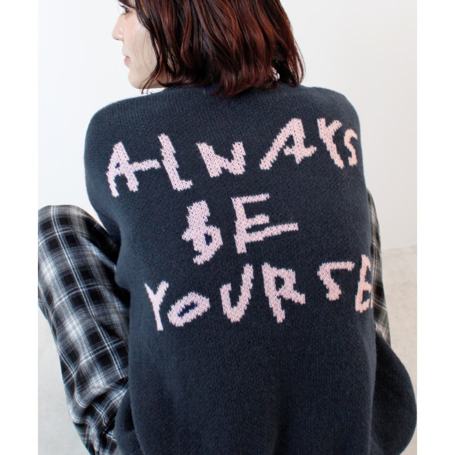後ろ姿までオシャレ!配色ロゴが可愛いバックロゴニット♪