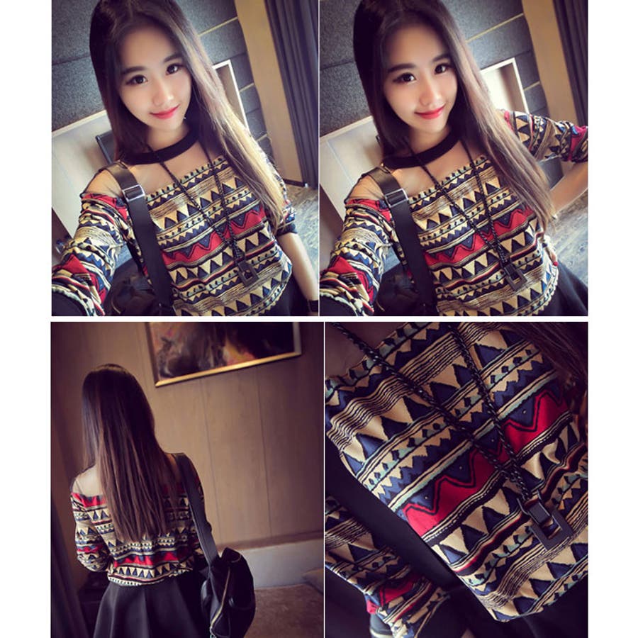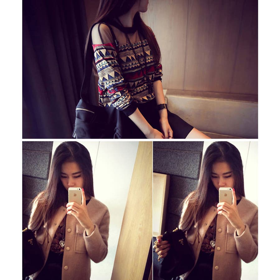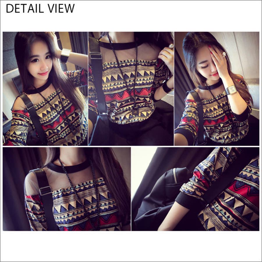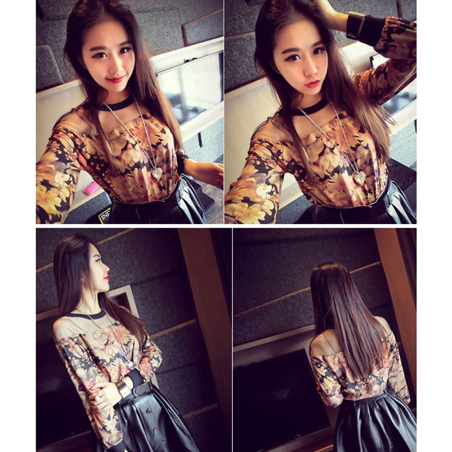 デコルテがシースルーになったデザインの秋冬感が漂う、大人の印象のトップスです♪^^レトロな花柄と、幾何学柄の2タイプで、今年人気の旬なコーデが完成しちゃいます♪レザーのスカートや、ジャケットなど、大人かわいいアイテムとの相性もバッチリです★!!!配色に品のある1着で、通勤からデイリーまで幅広く着用できます^^!!!