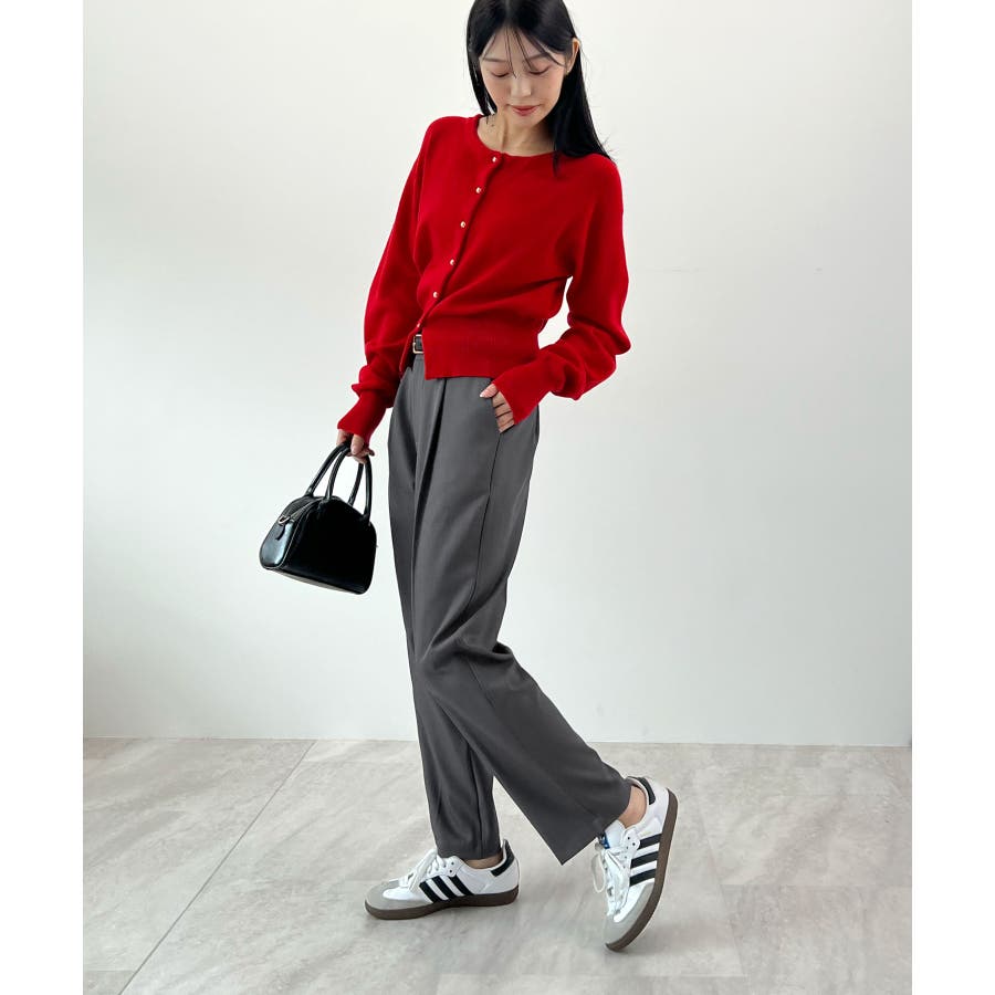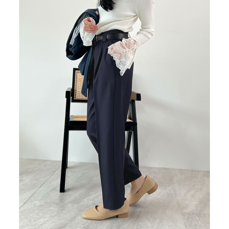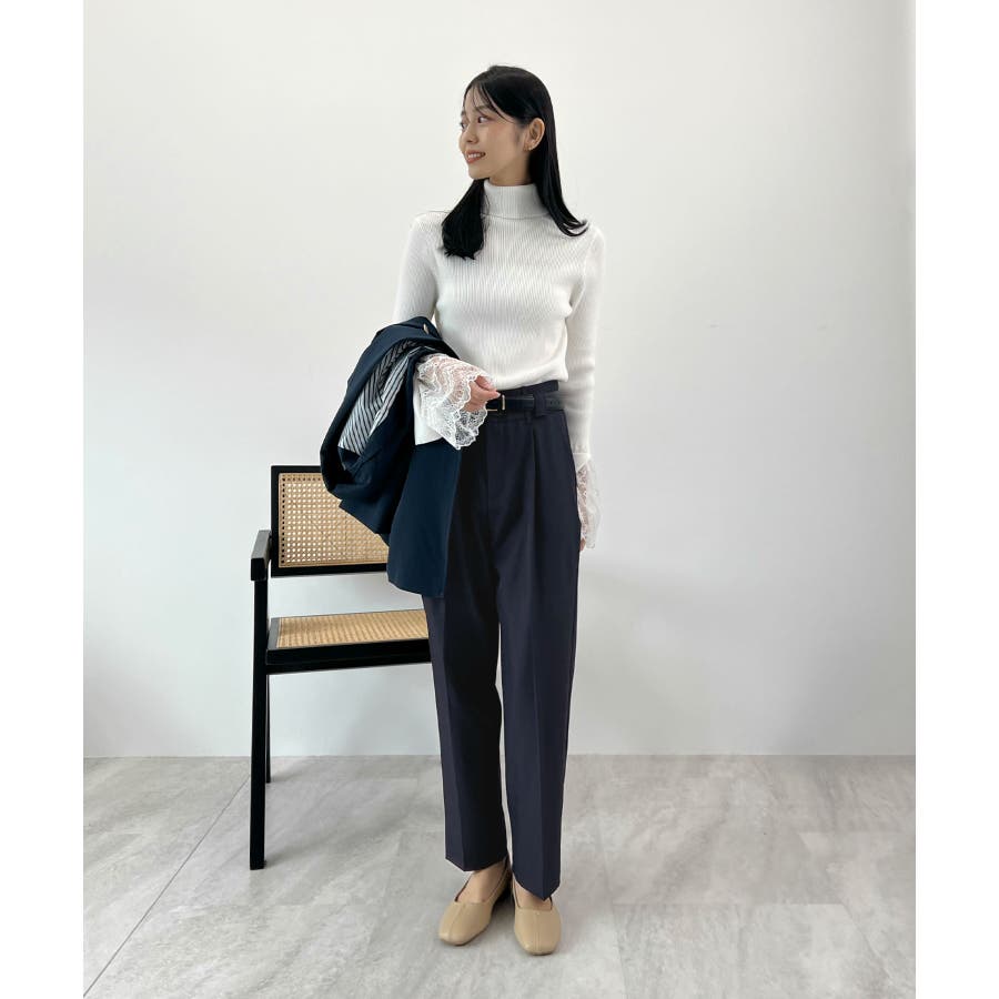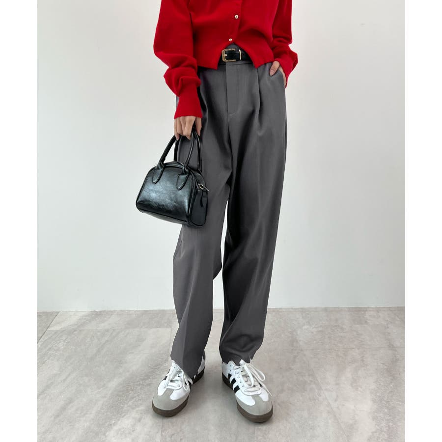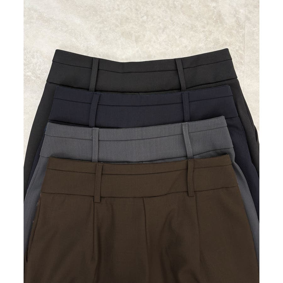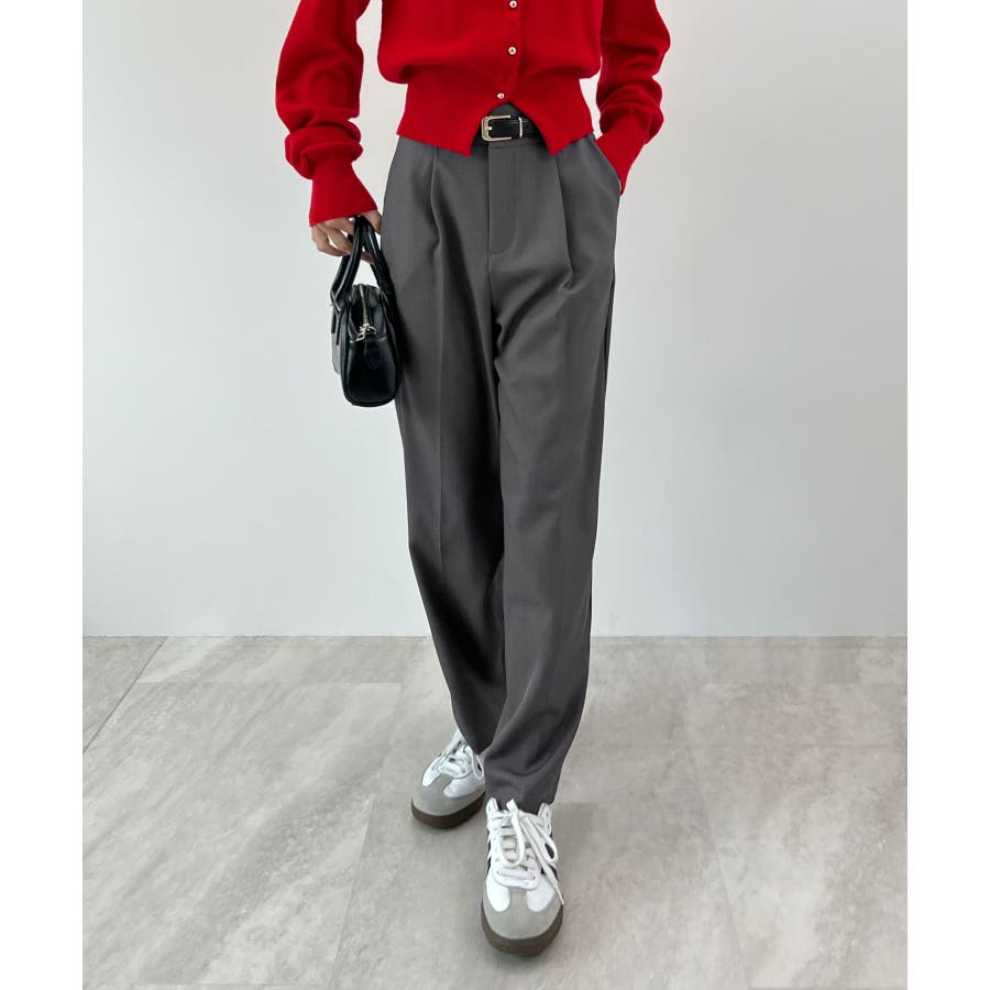 脚長効果抜群の美脚ライン。センタータックテーパードパンツ