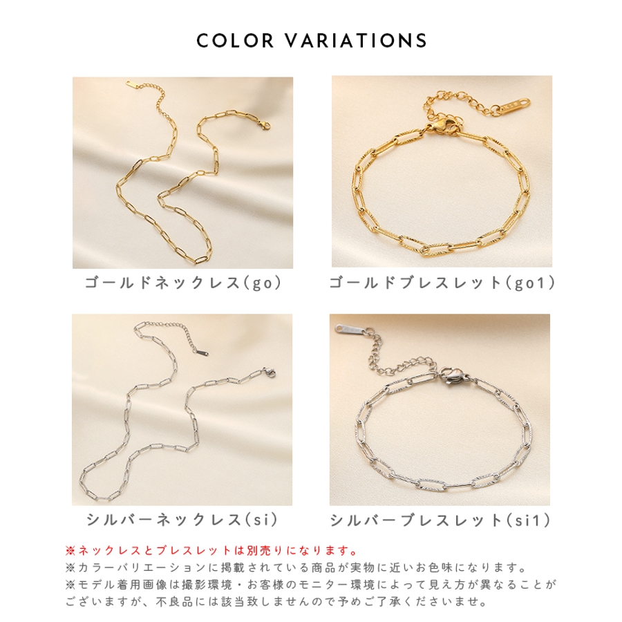 | カラー | シルバーネックレス / シルバーブレスレット / ゴールドネックレス / ゴールドブレスレット |