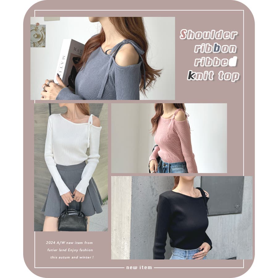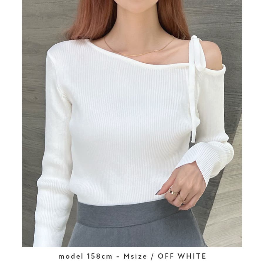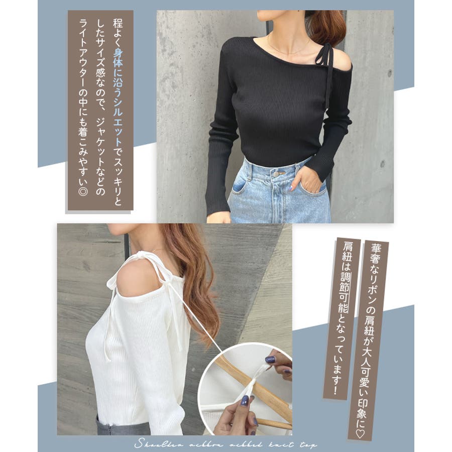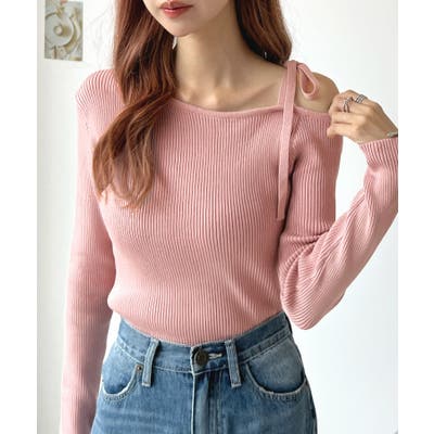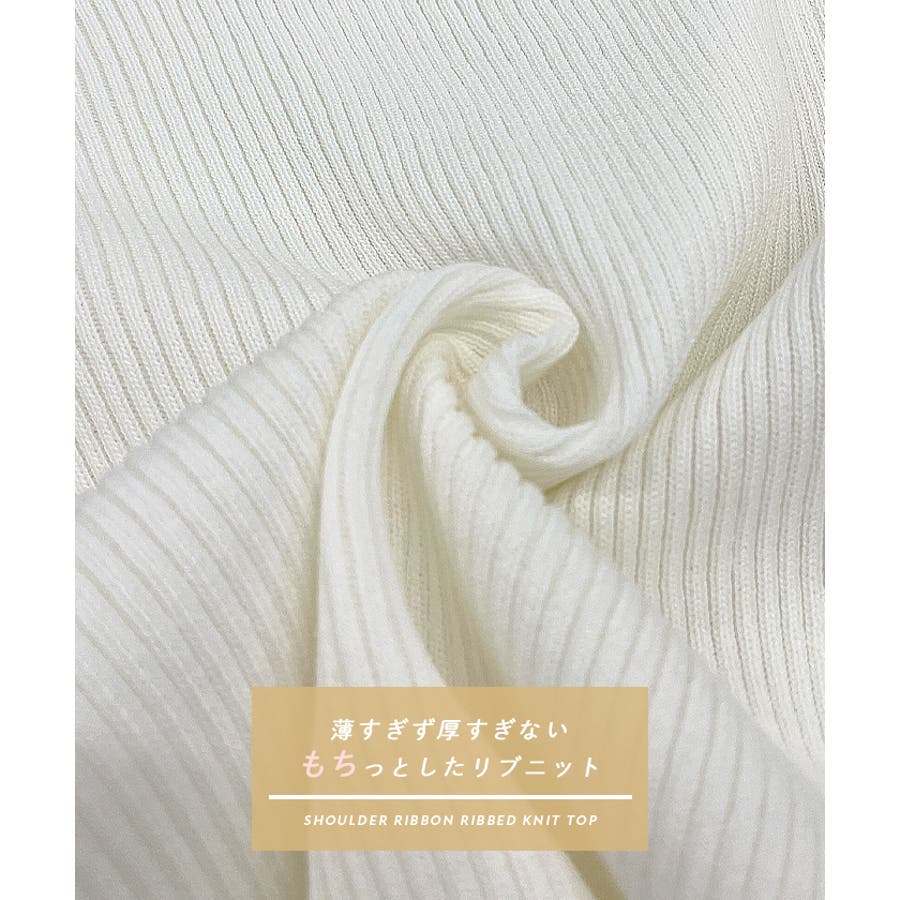 オトナリボンかわいい。ショルダーリボンリブニットトップス