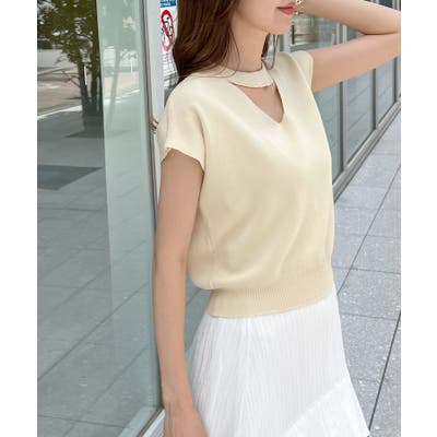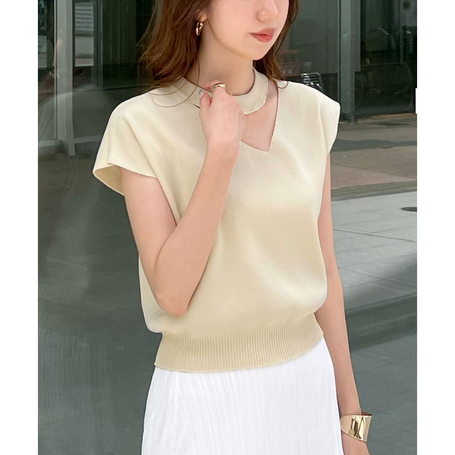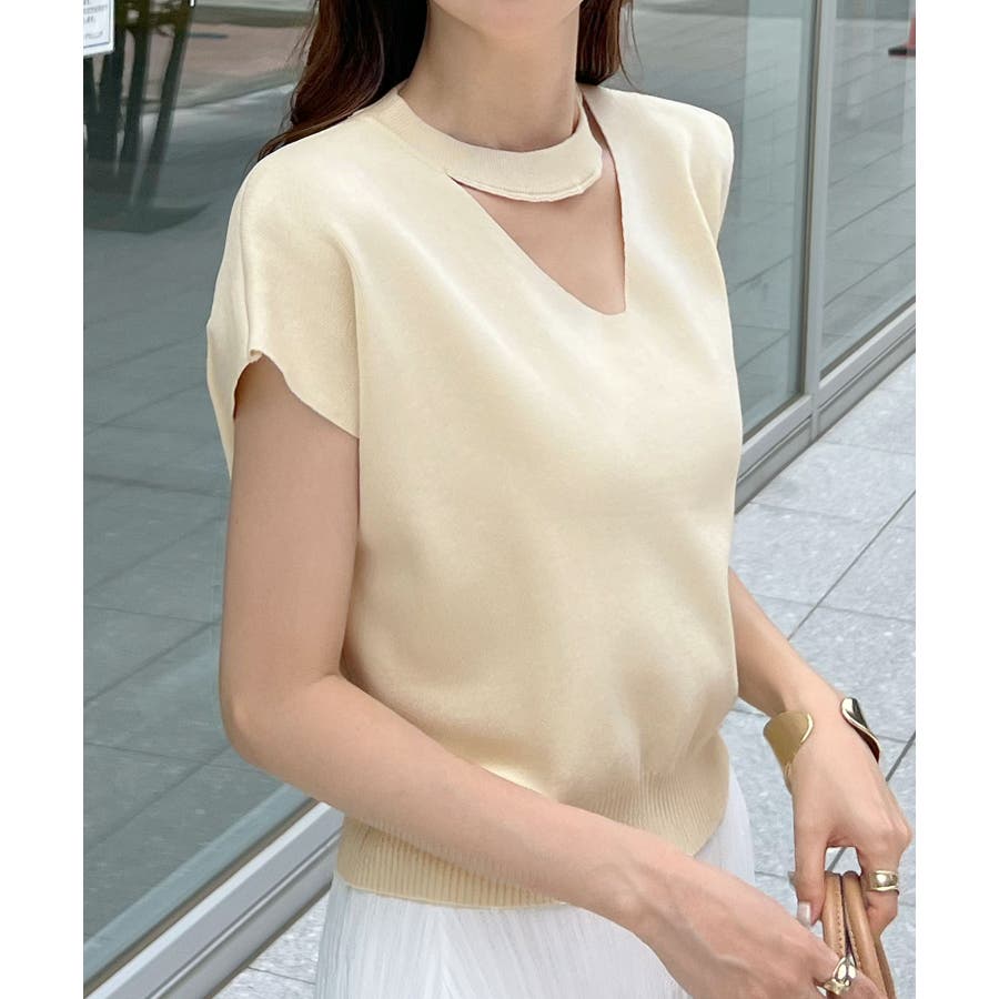 【アシメな袖とチョーカー風のネックデザインが今っぽいサマーニットトップスが新登場!】
