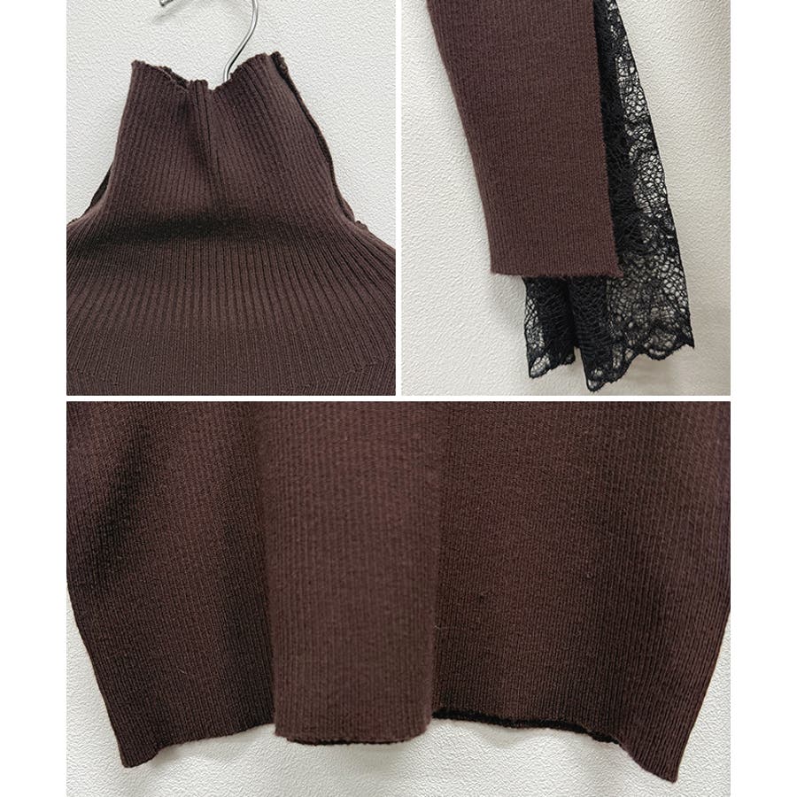 ★生地 柔らかいリブニット×軽やかなレース素材