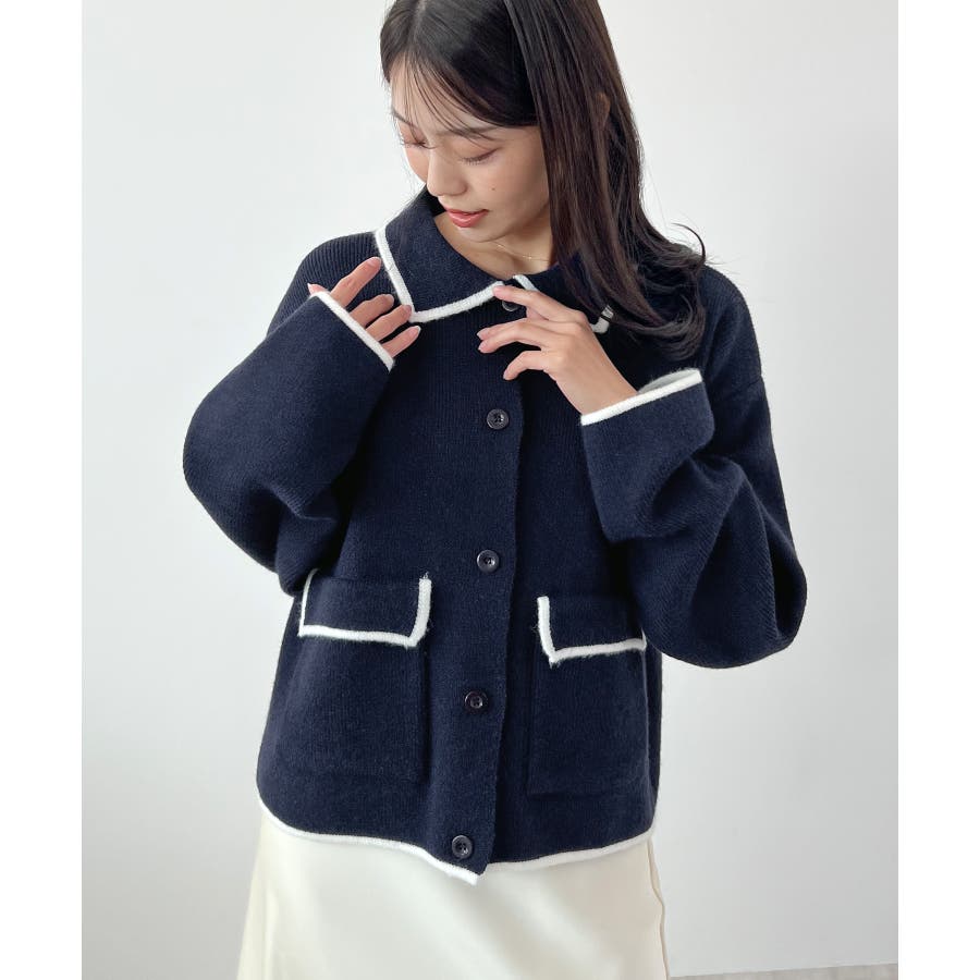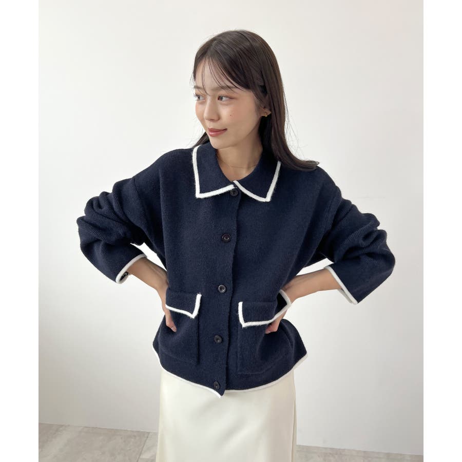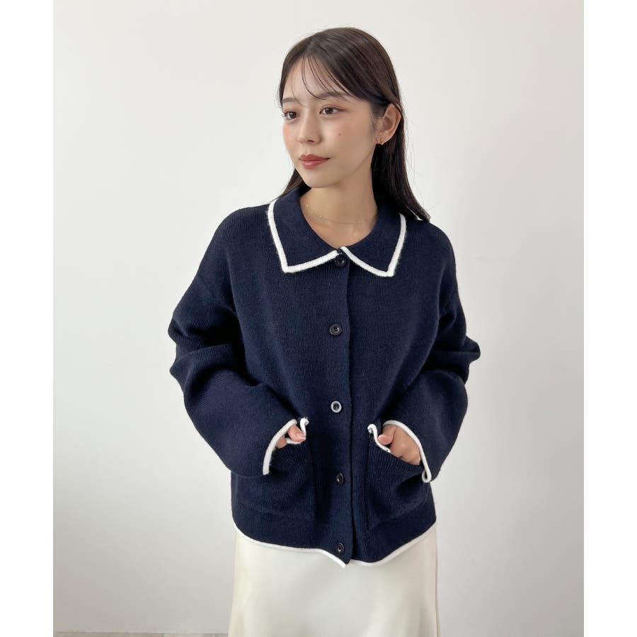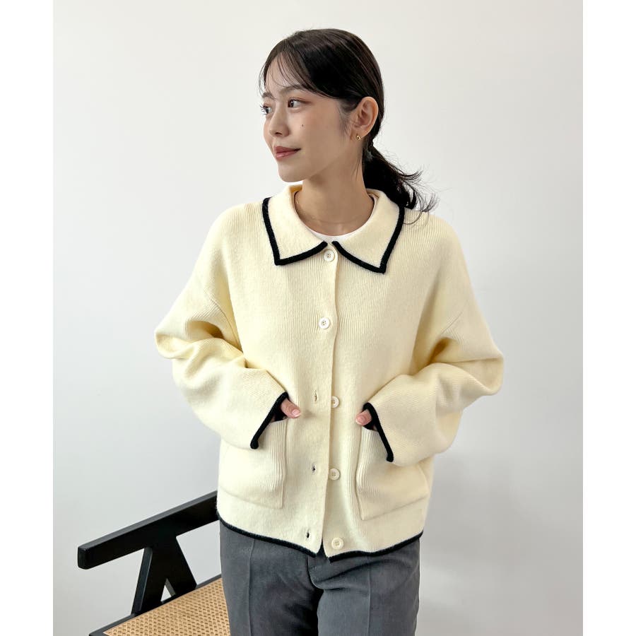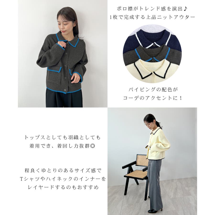 ポロ衿がトレンド感を演出し一枚で完成する上品ニットアウター♪