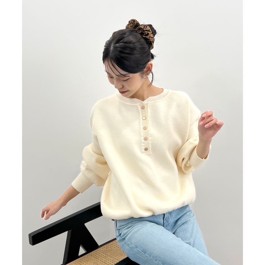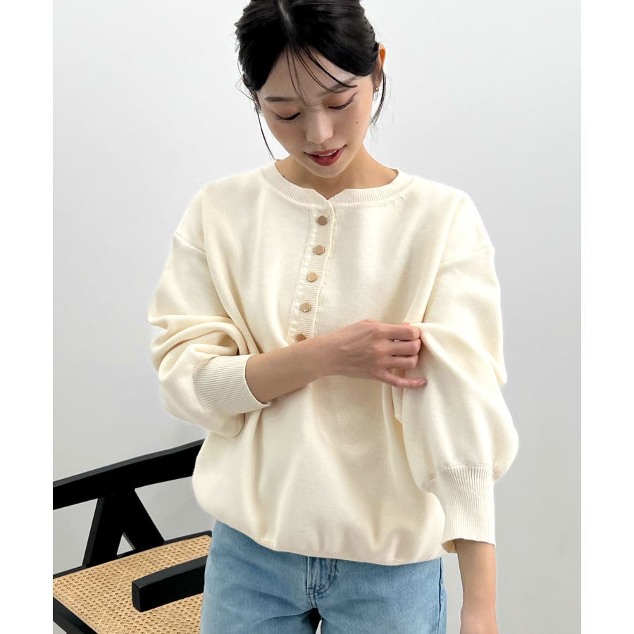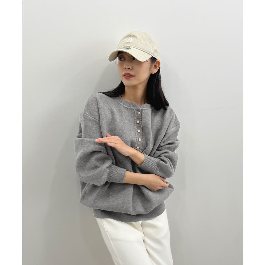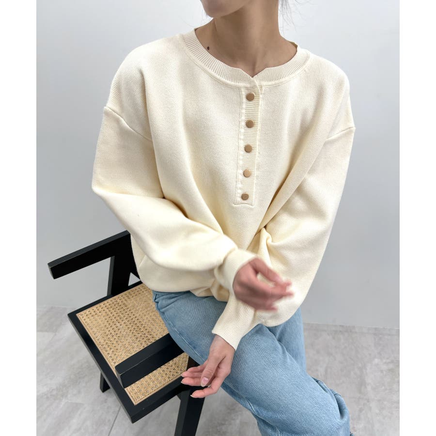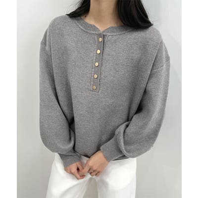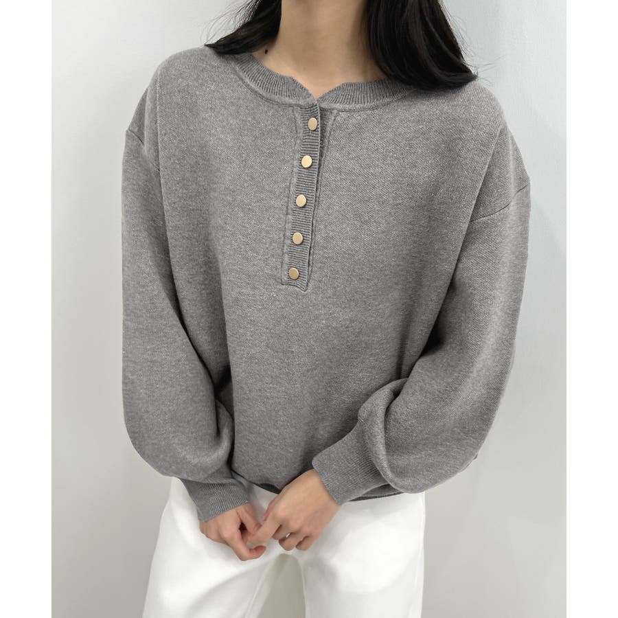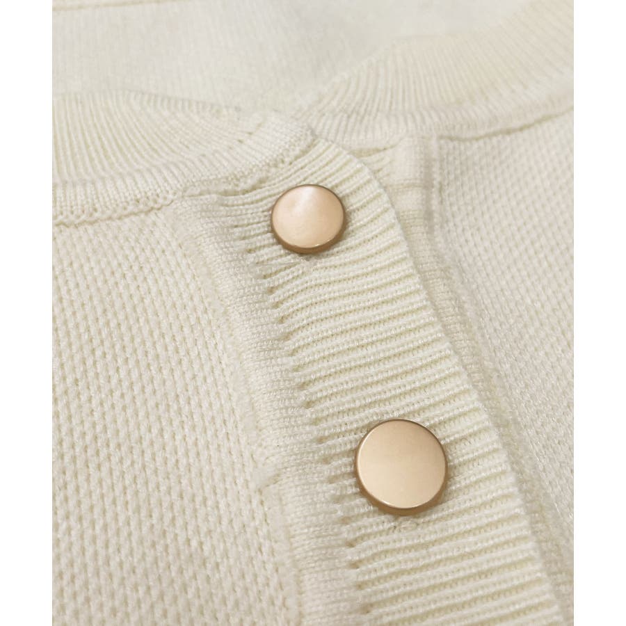 ゴールドボタンが映える。ヘンリーネックニットPO
