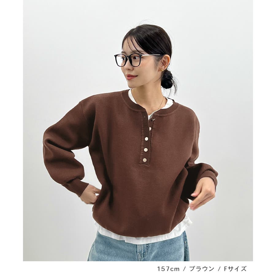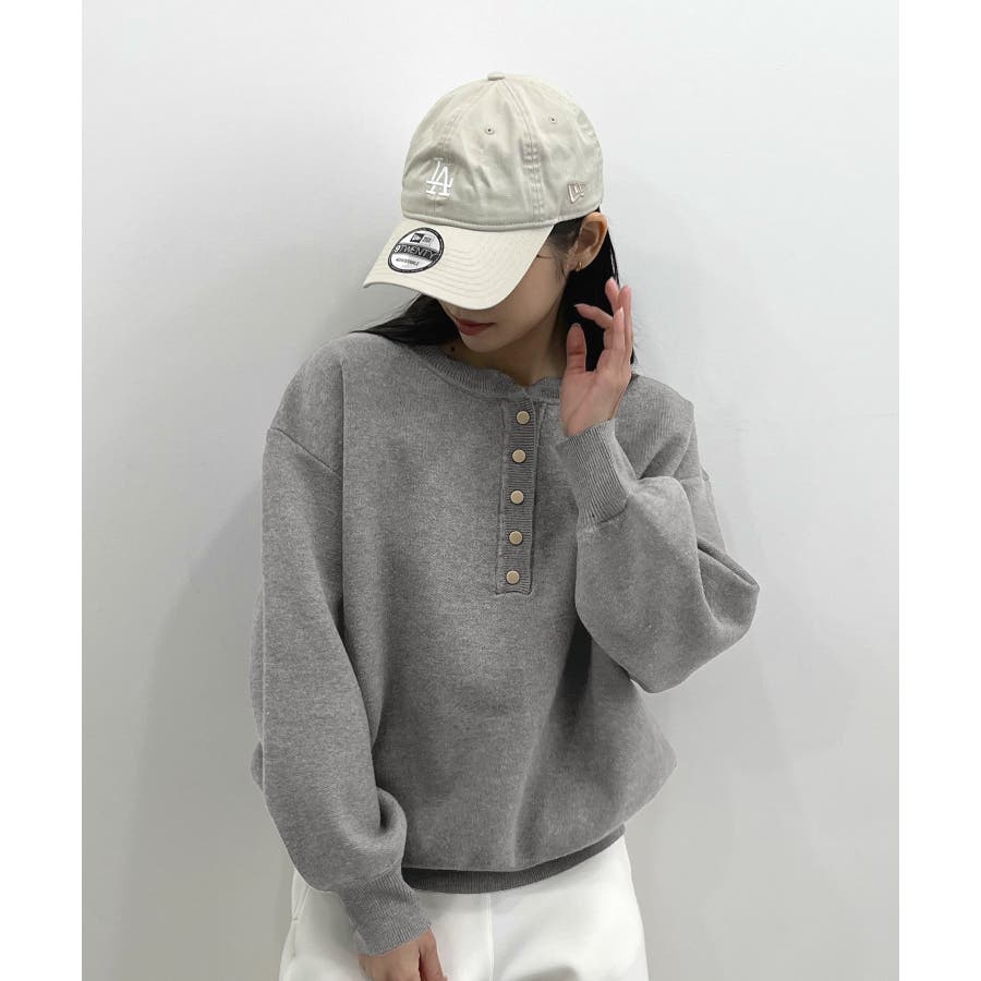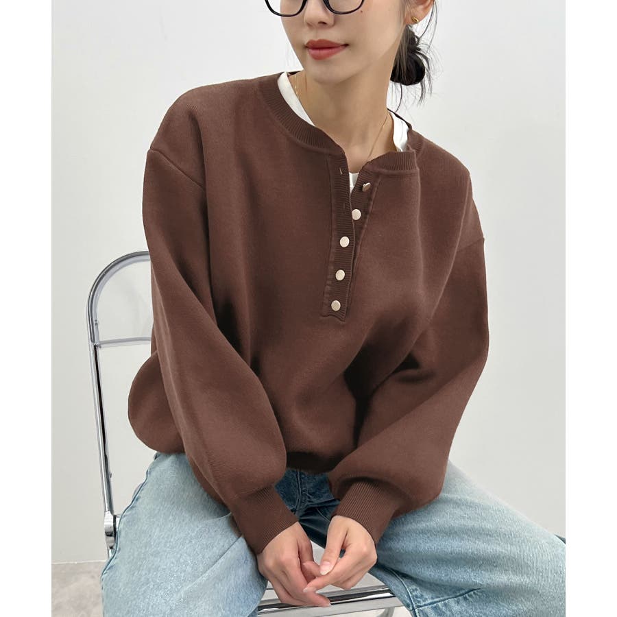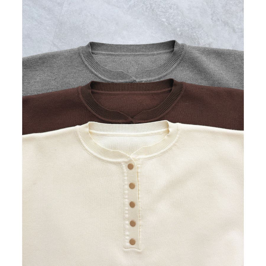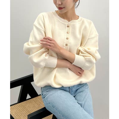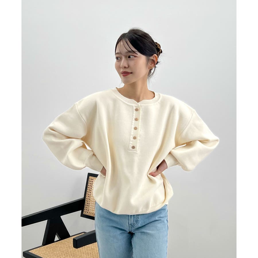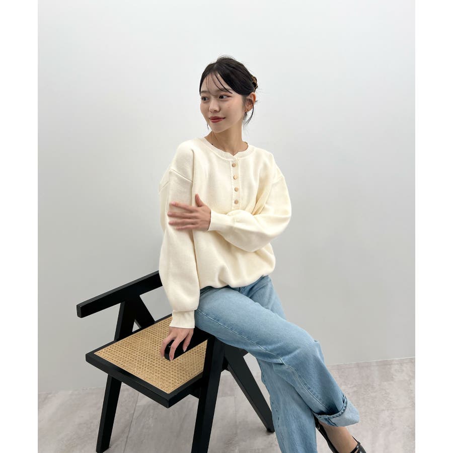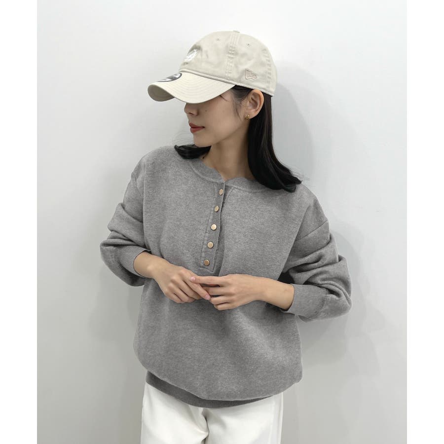 ゴールドボタンが映える。ヘンリーネックニットPO