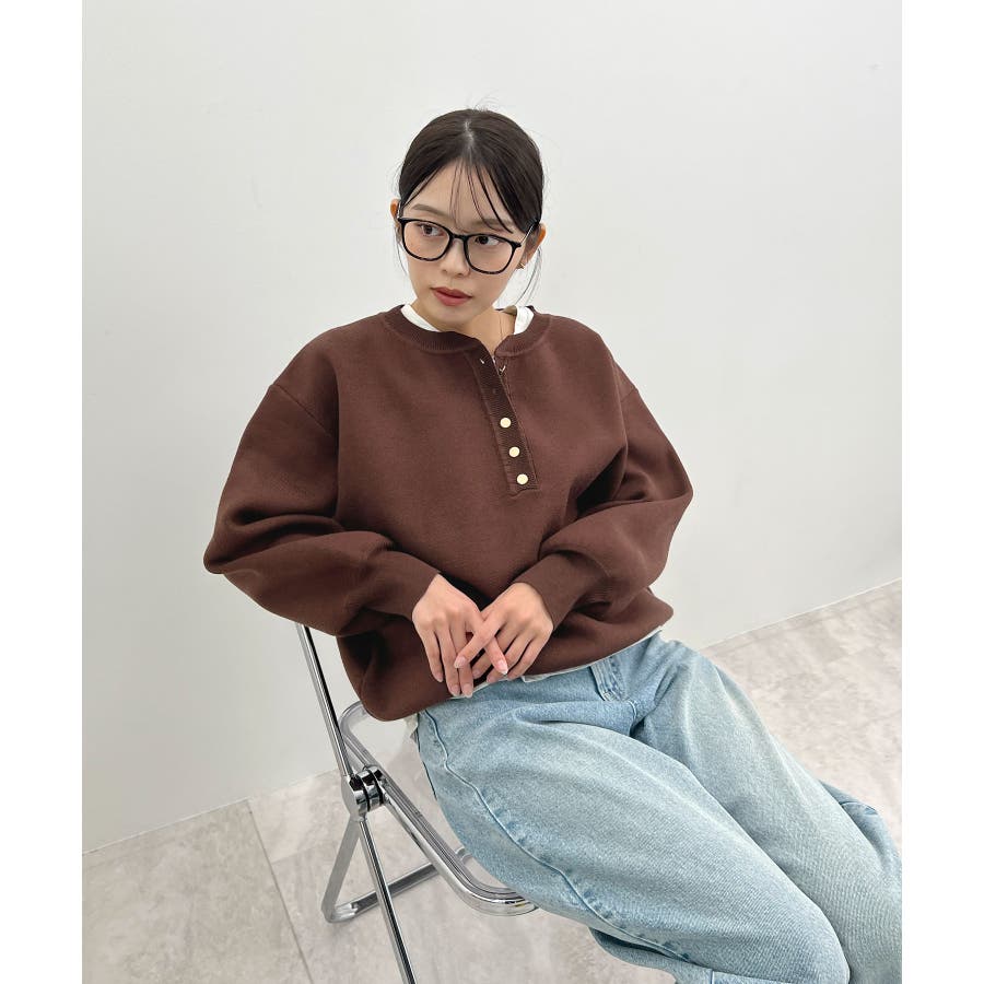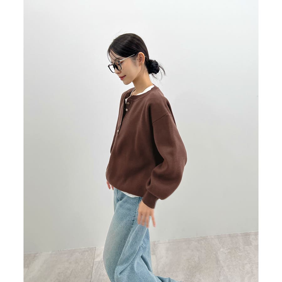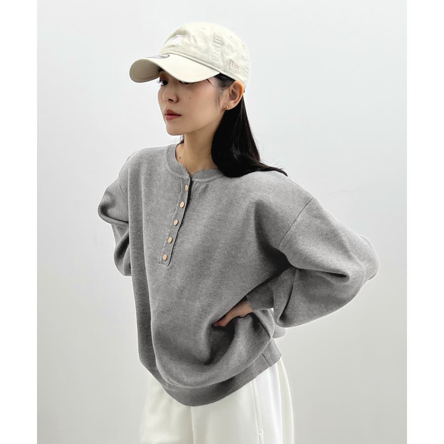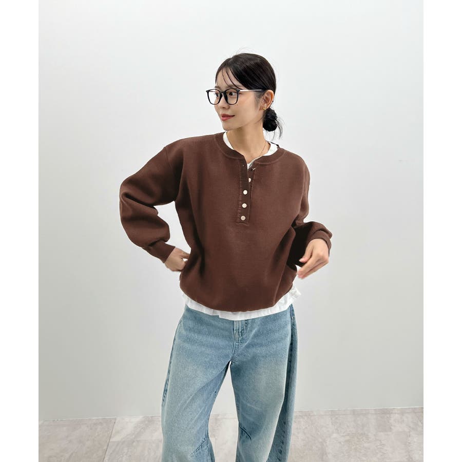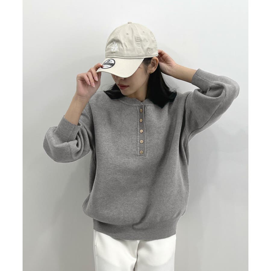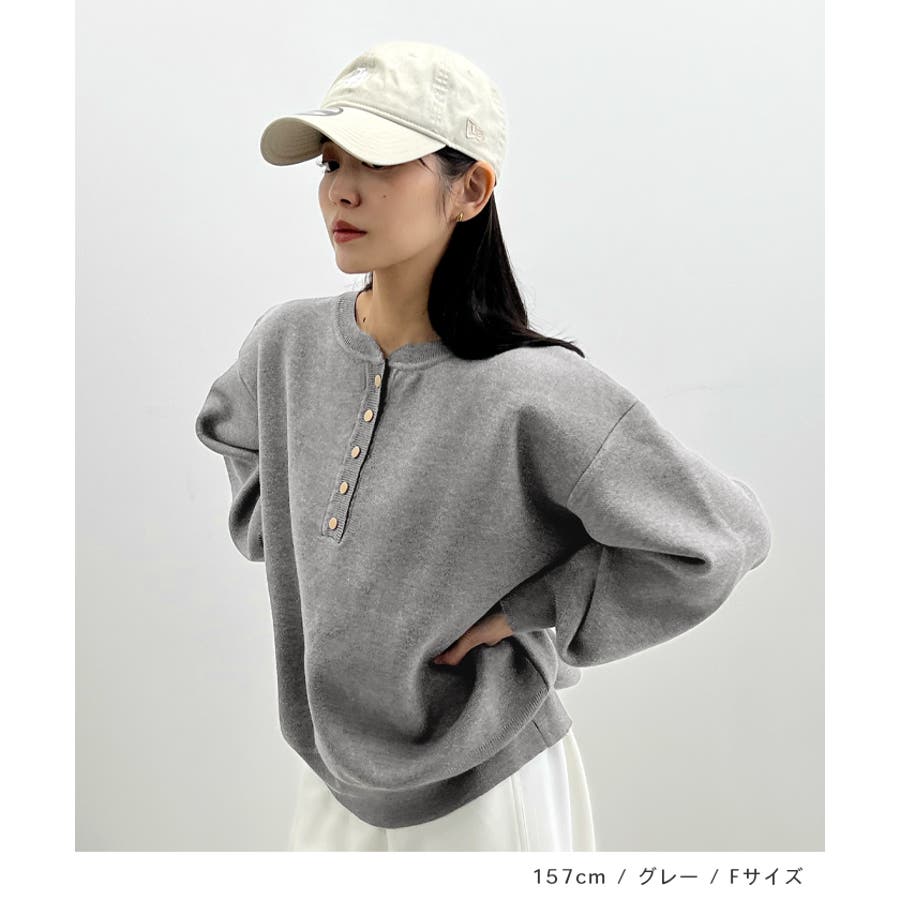 ゴールドボタンが映える。ヘンリーネックニットPO