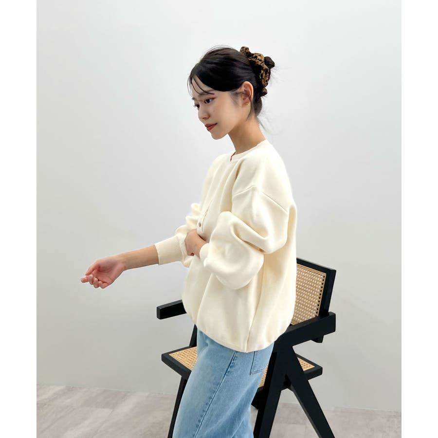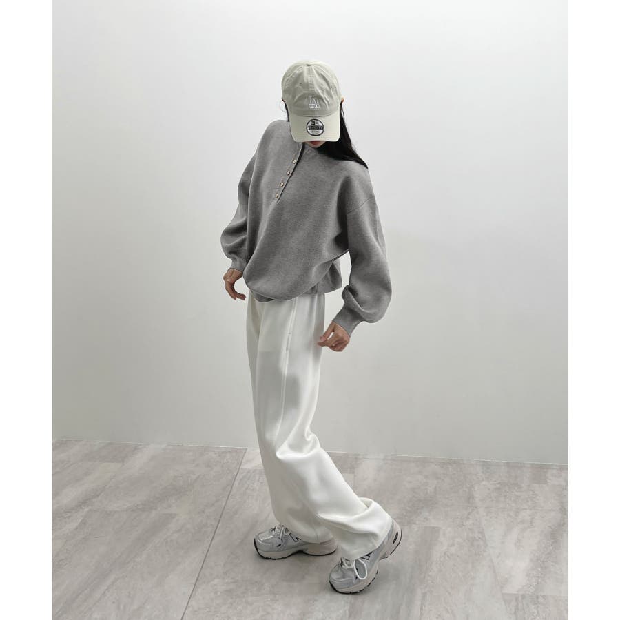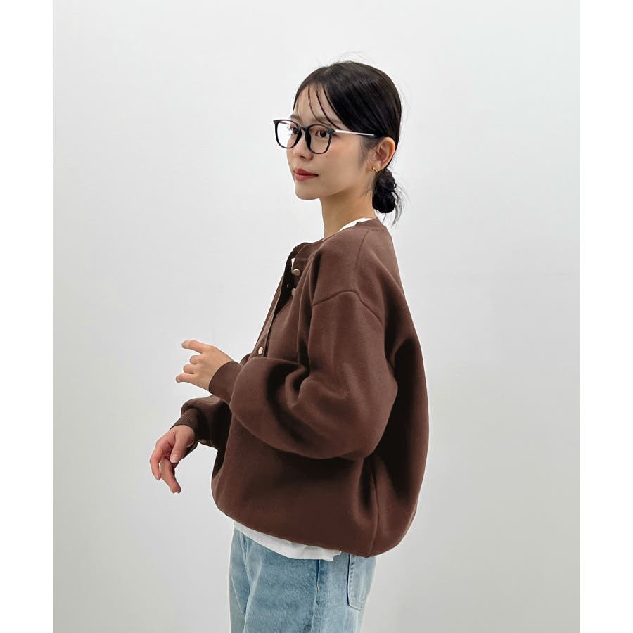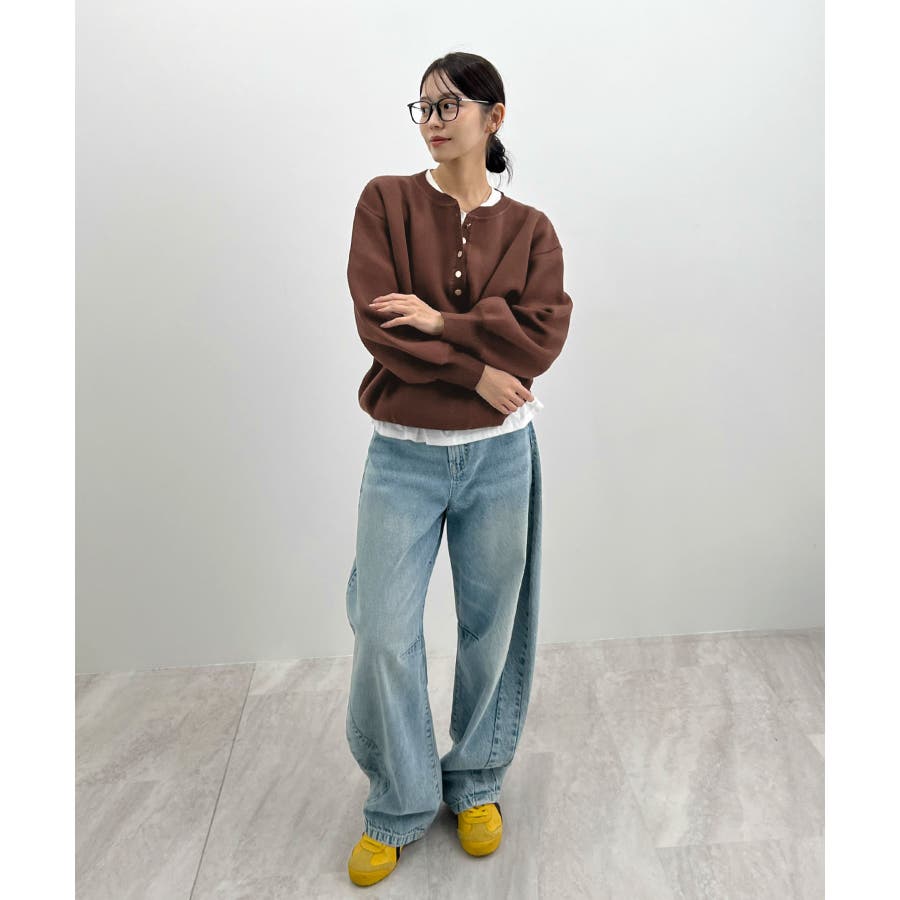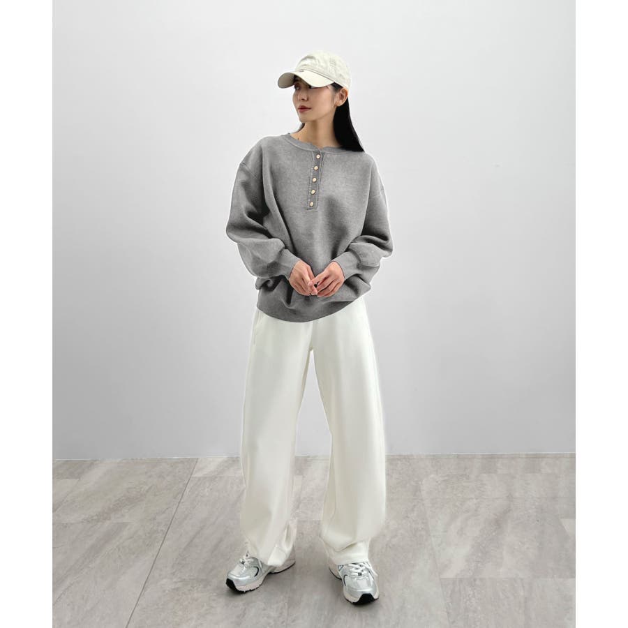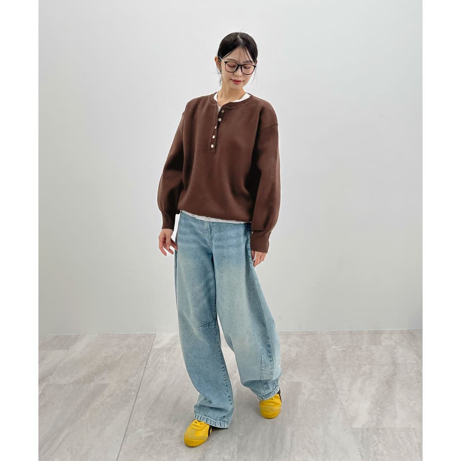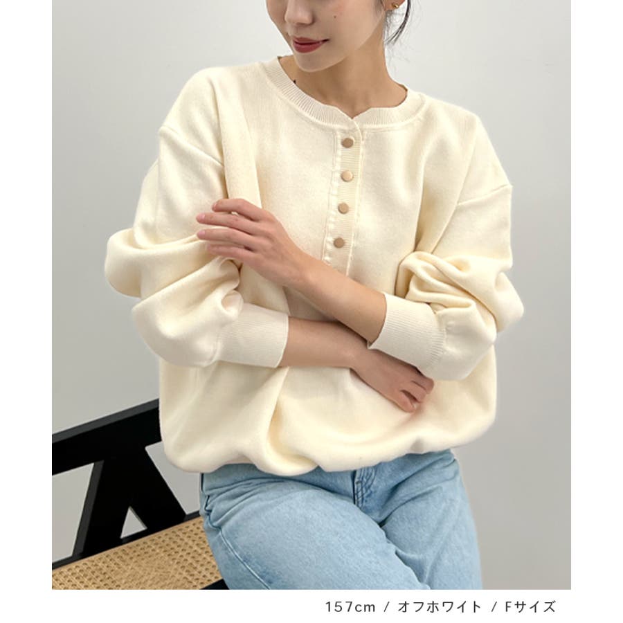 ゴールドボタンが映える。ヘンリーネックニットPO