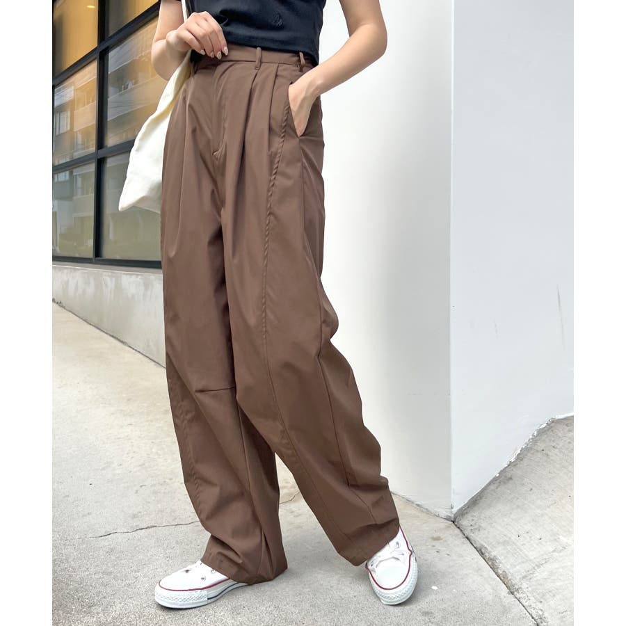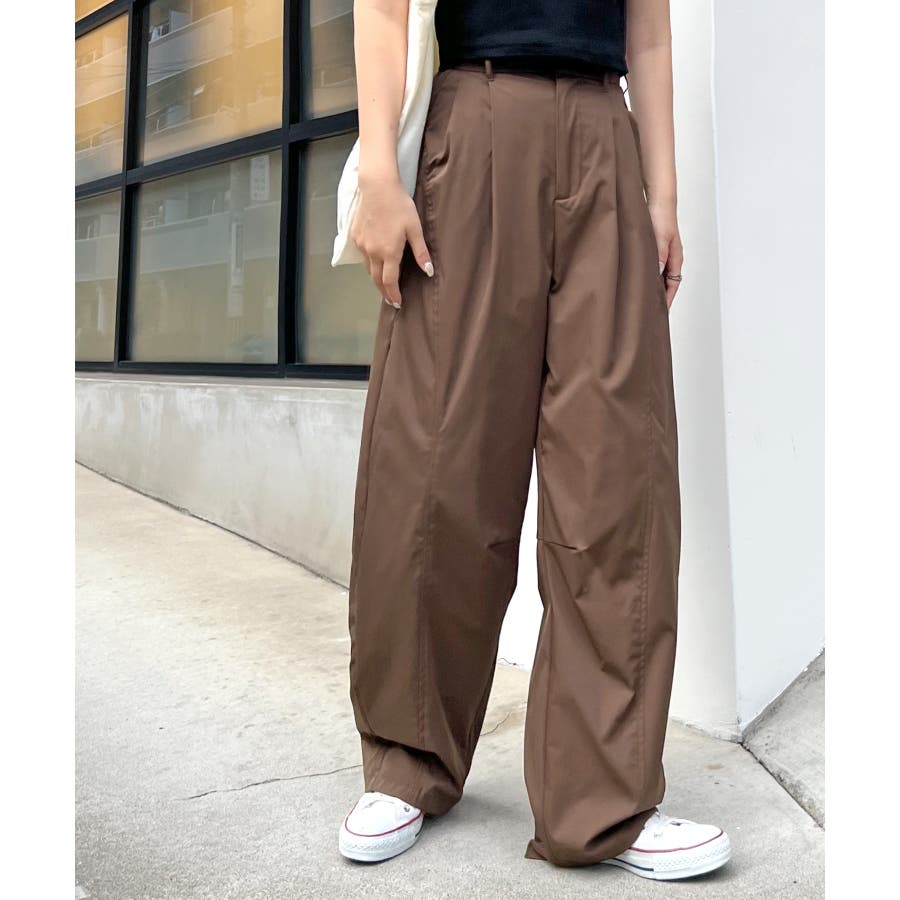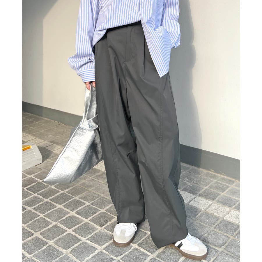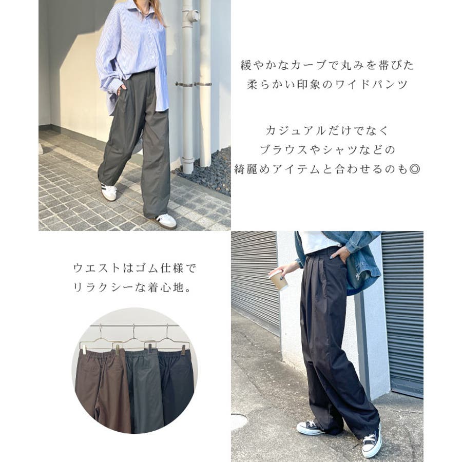 ・ゆるやかなカーブで丸みを帯びた、柔らかい印象のワイドパンツ。