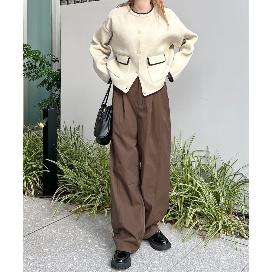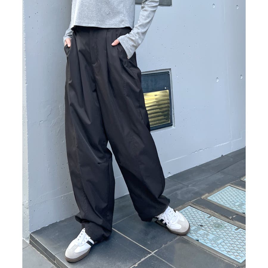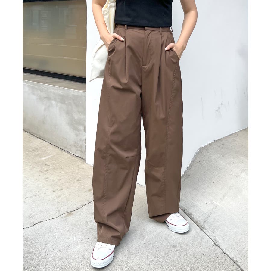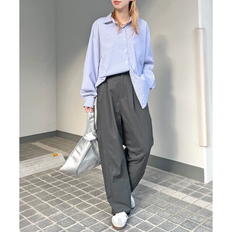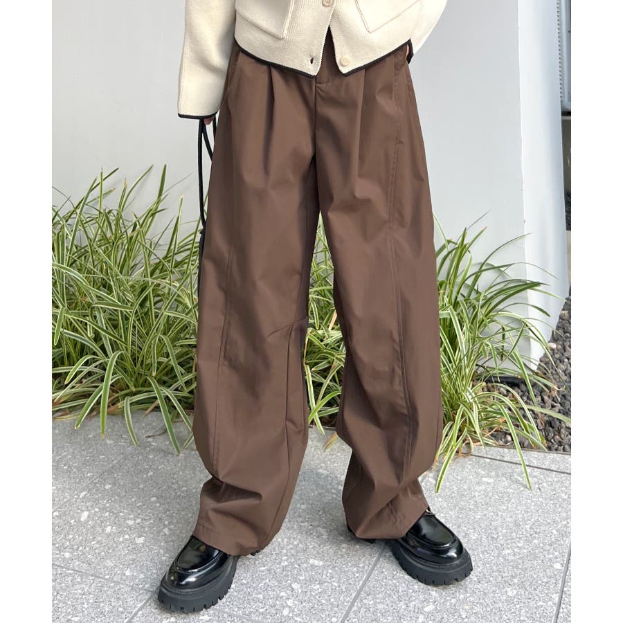 ・ゆるやかなカーブで丸みを帯びた、柔らかい印象のワイドパンツ。