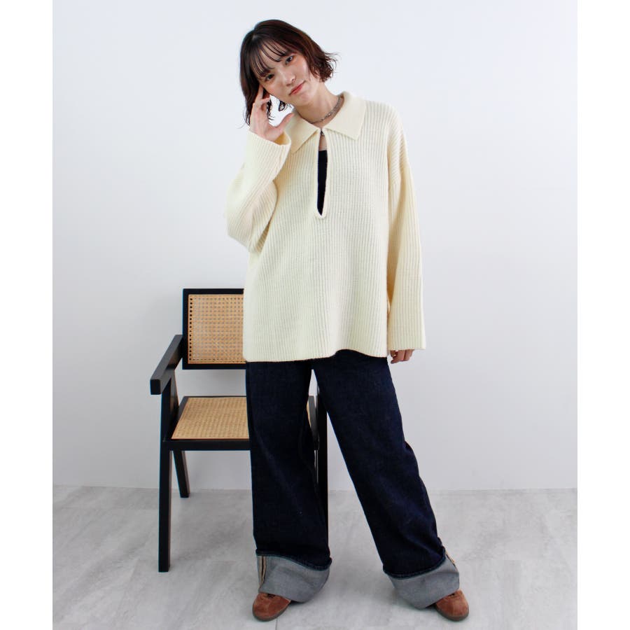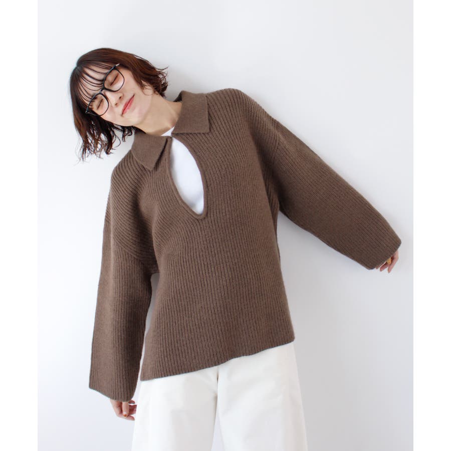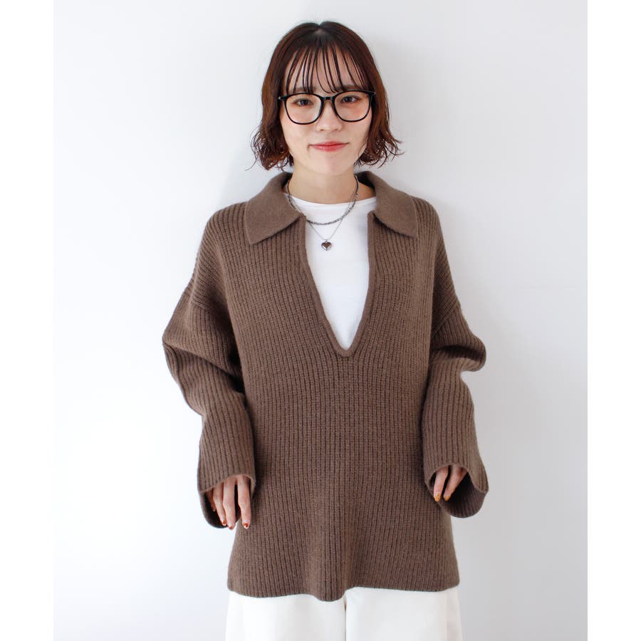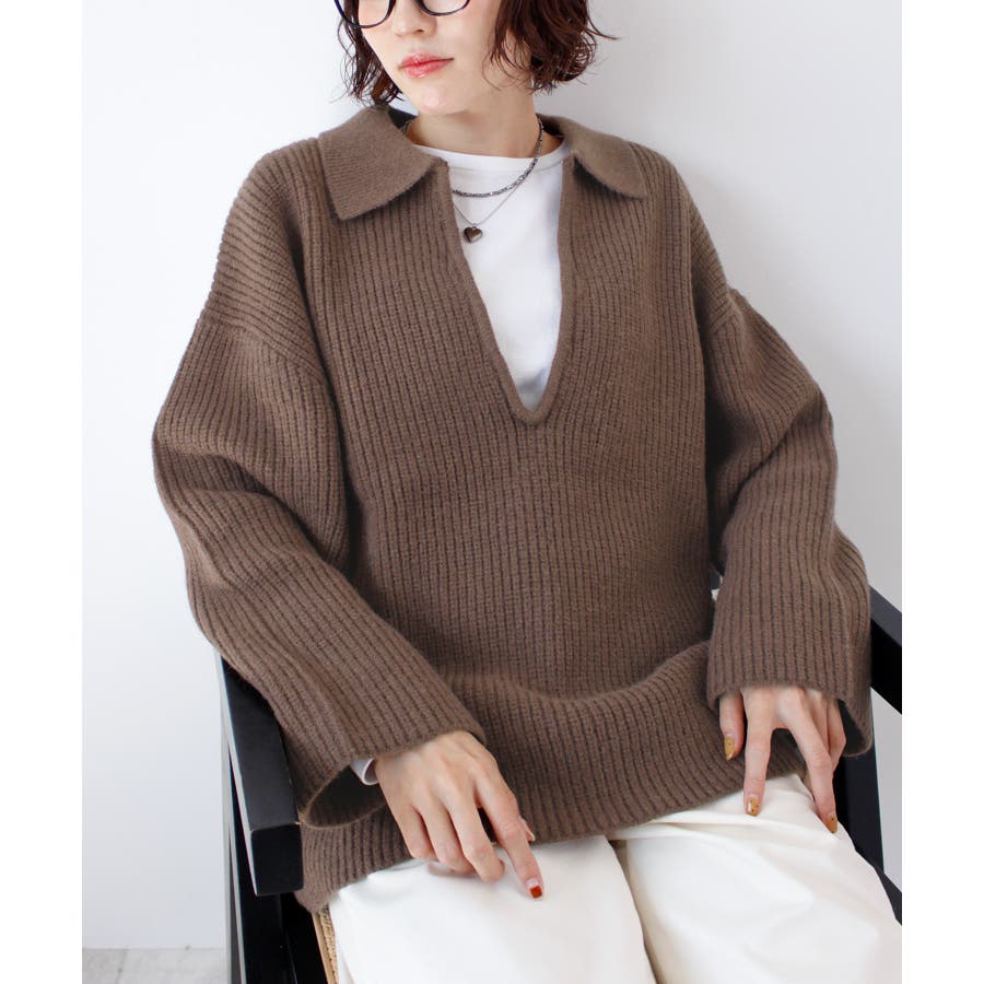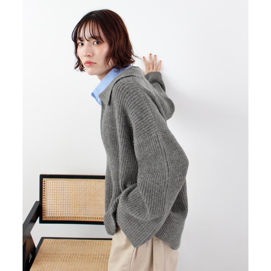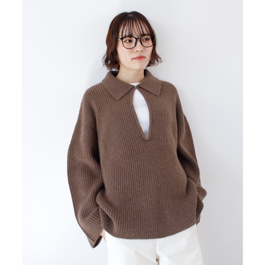 《ABYS》アルパカタッチ襟付きキーネックプルオーバー
