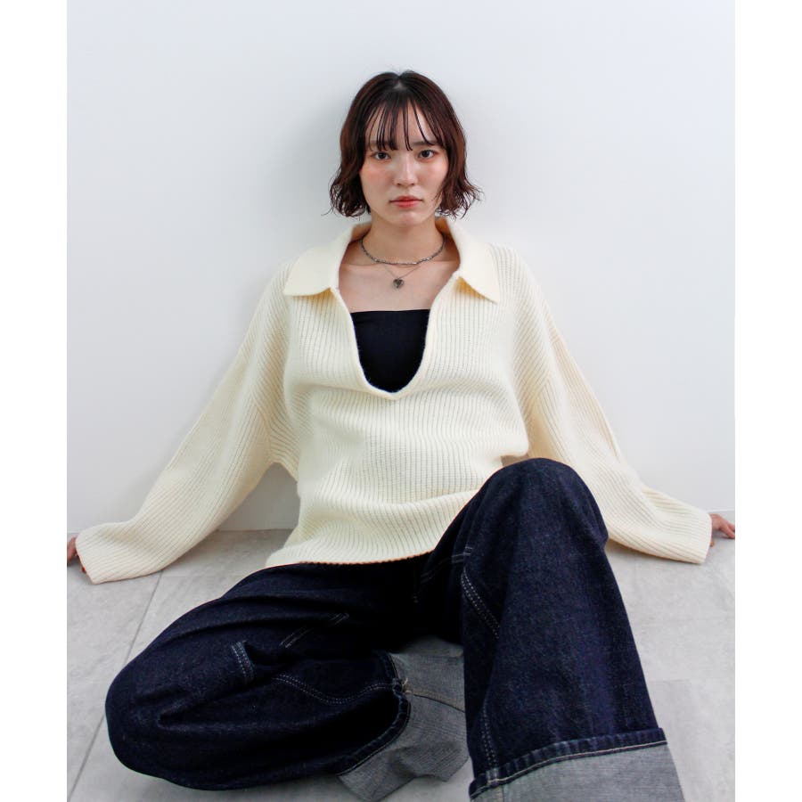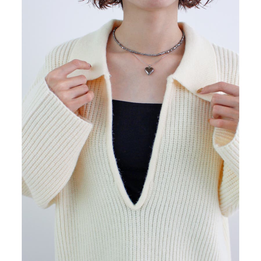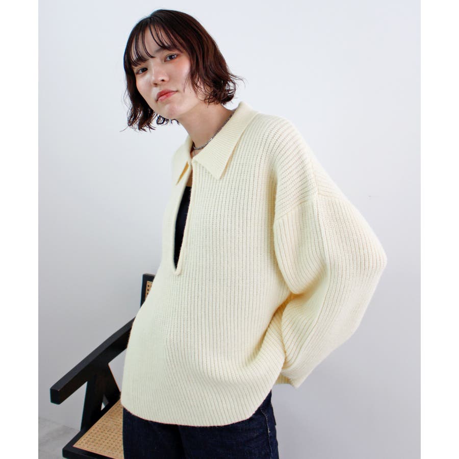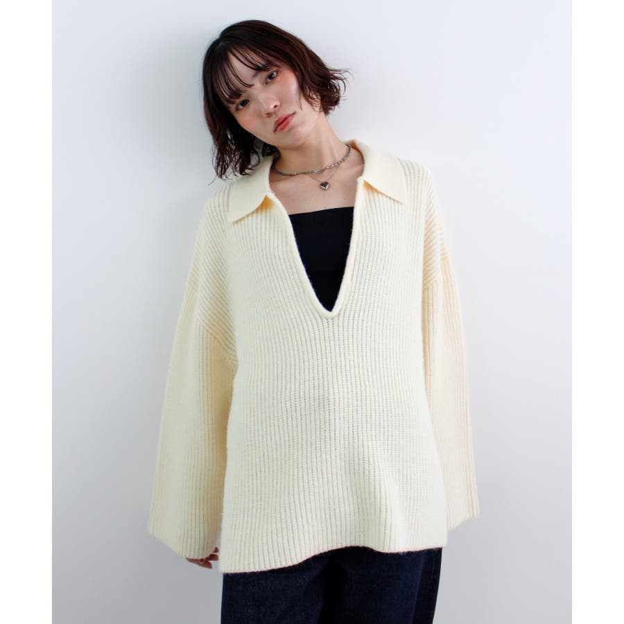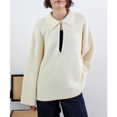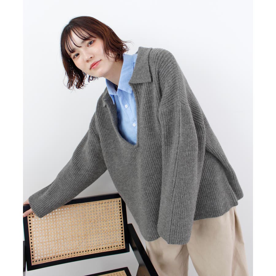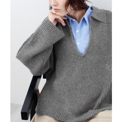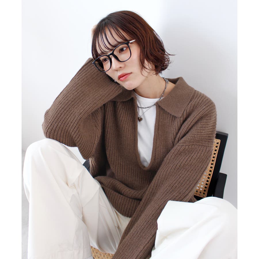 《ABYS》アルパカタッチ襟付きキーネックプルオーバー