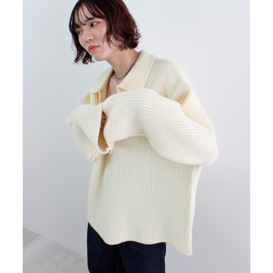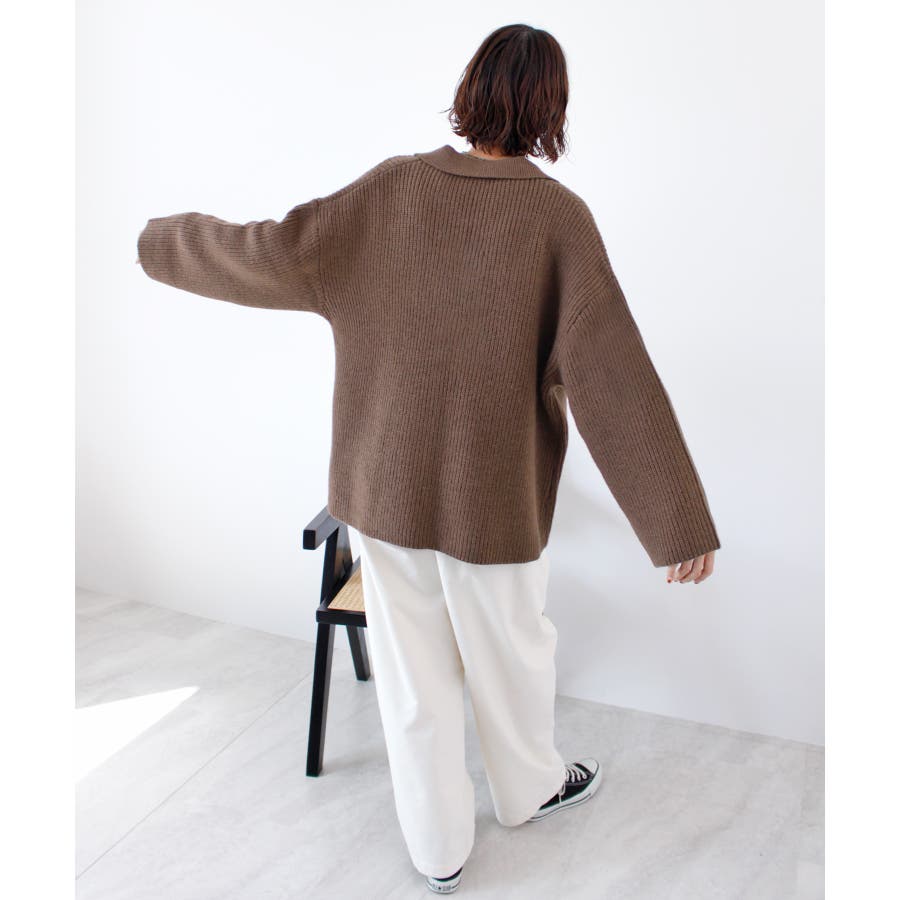 ・肌触りの柔らかいニットで暖かみがあり、きれいめカジュアルめどちらにも合わせやすいアイテム。