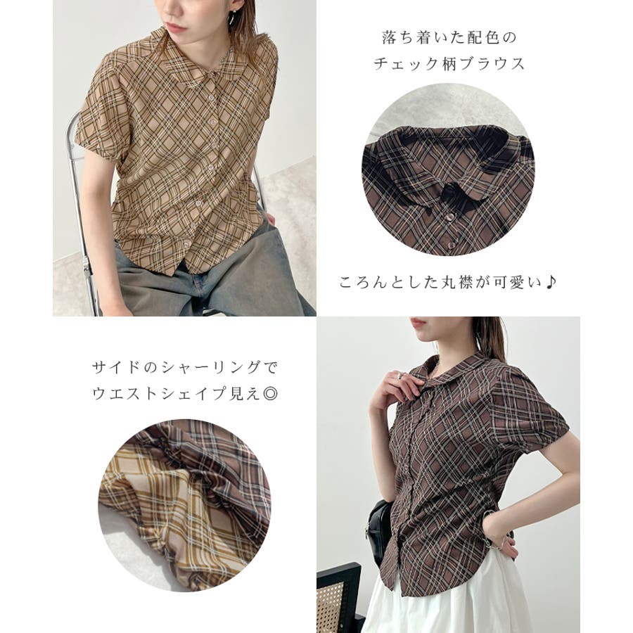 《ABYSアビス》コーデが華やぐ。チェック柄丸襟ブラウス