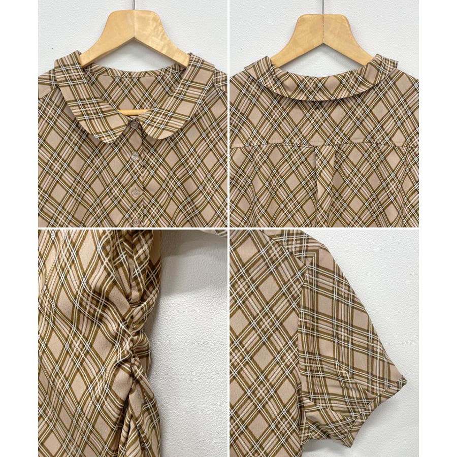 ・落ち着いた配色のチェック柄に、ころんとした丸襟が可愛い1枚♪