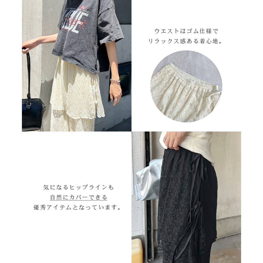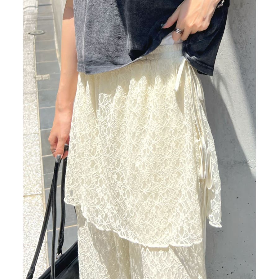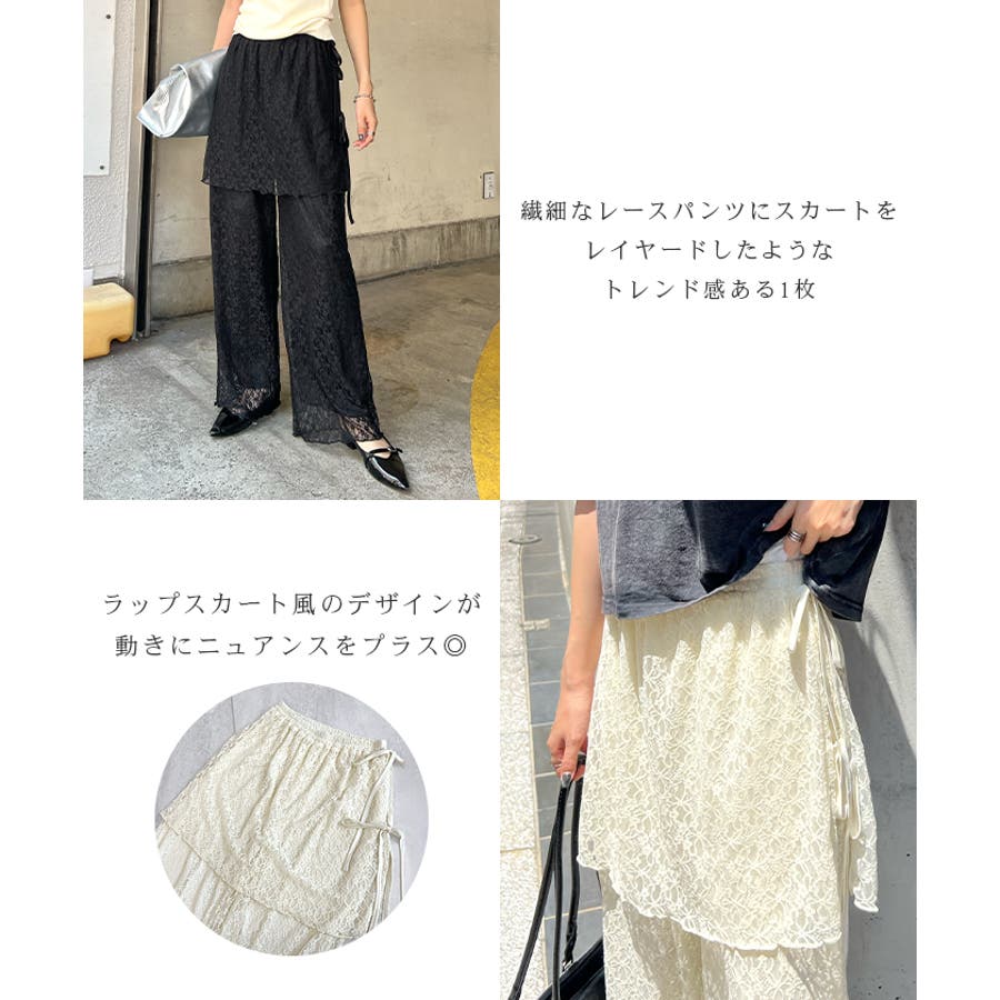 魅力の涼やかラップスカートレイヤードレースパンツ