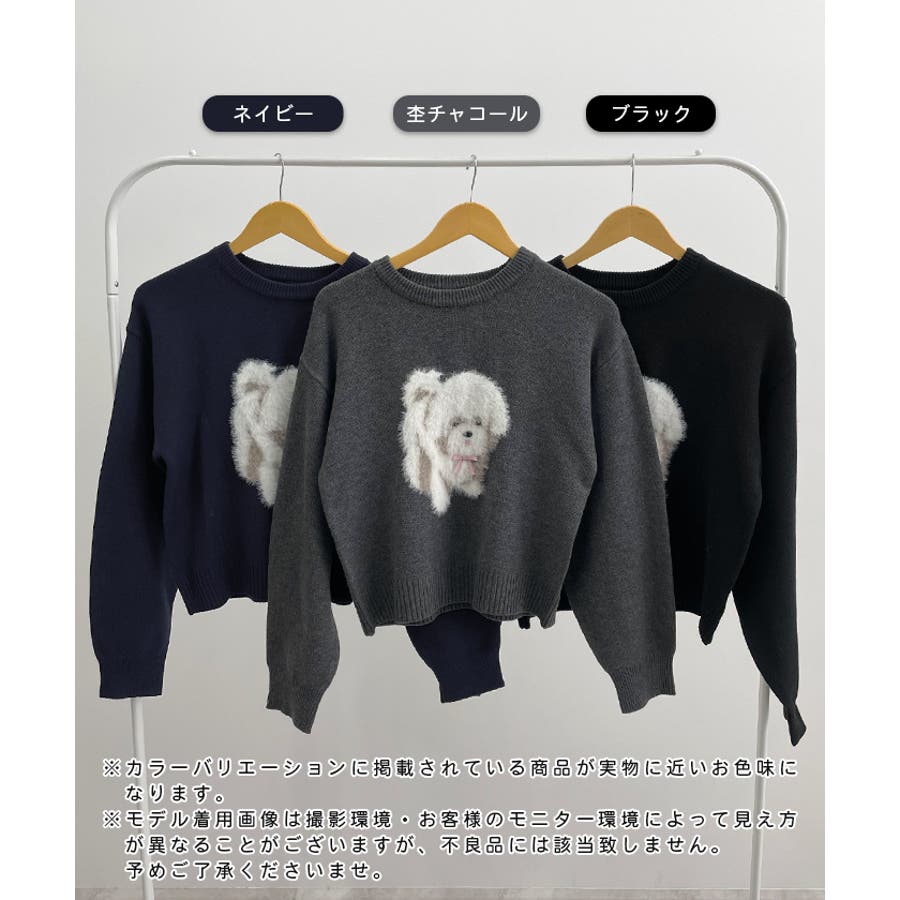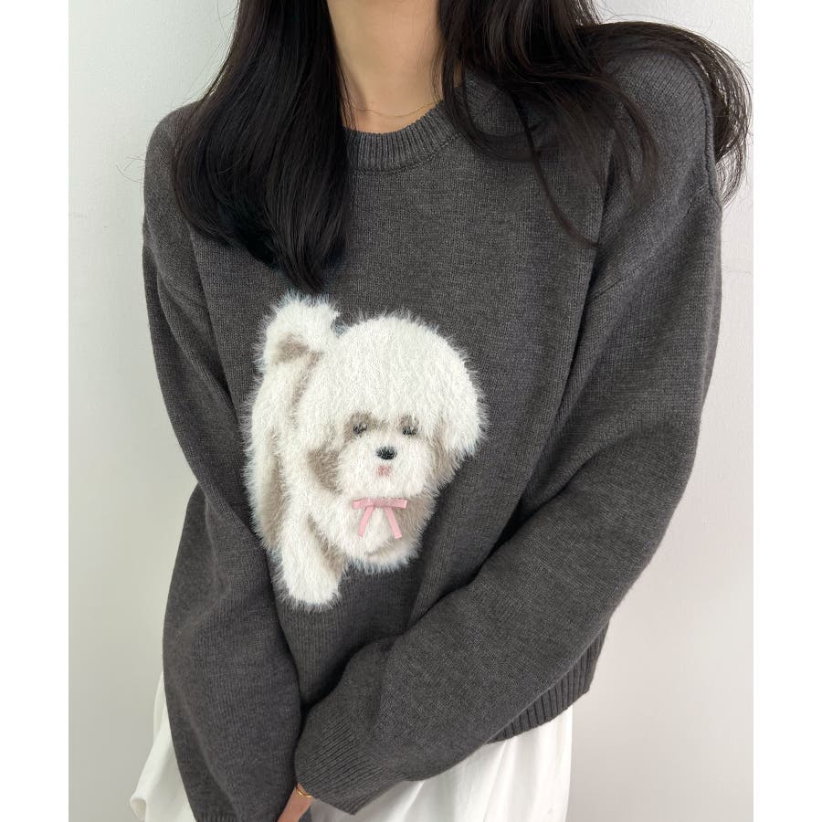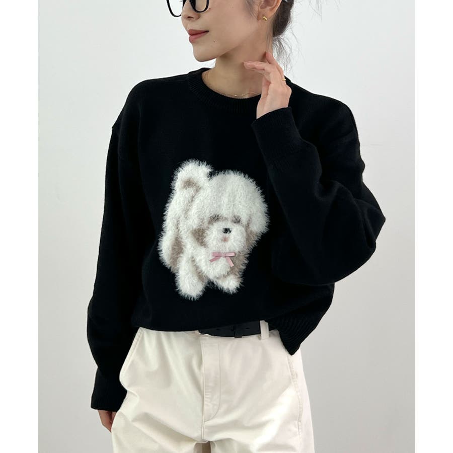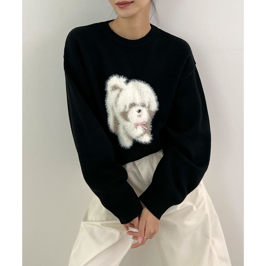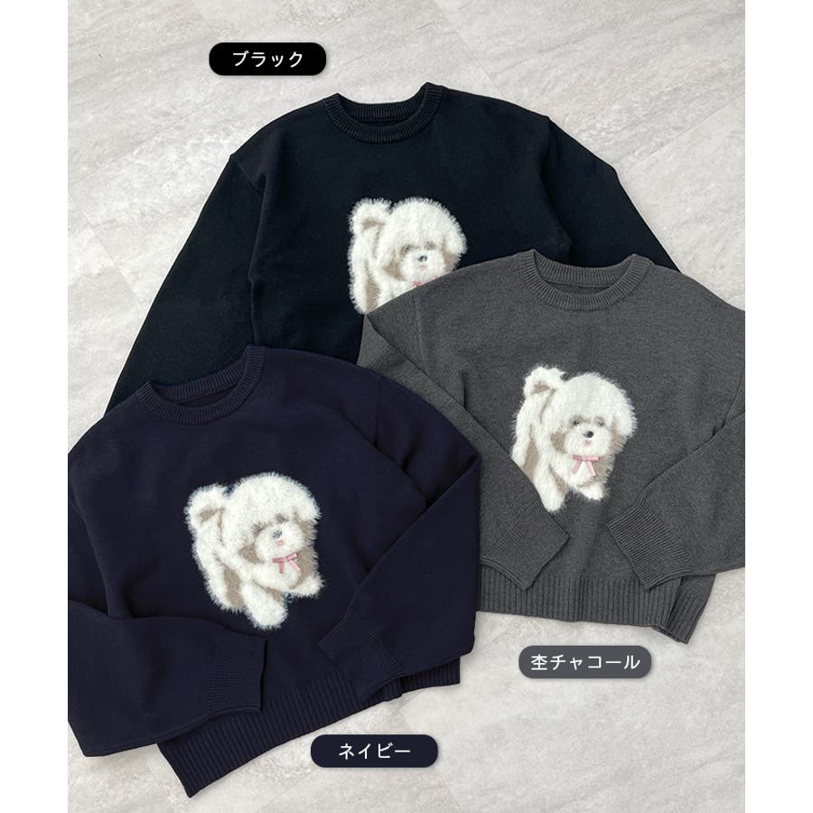 見るたび癒される。ふわふわフェザードッグニットトップス