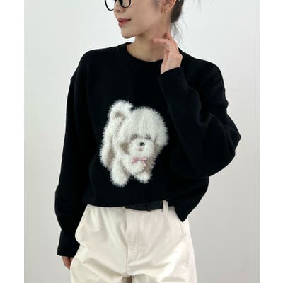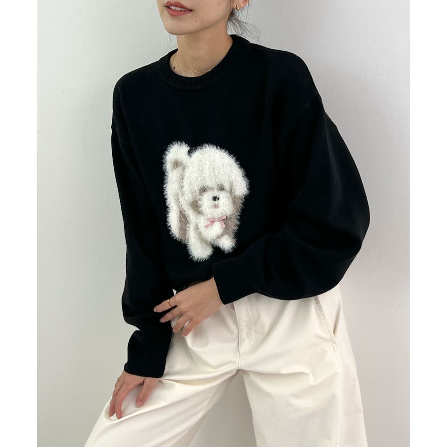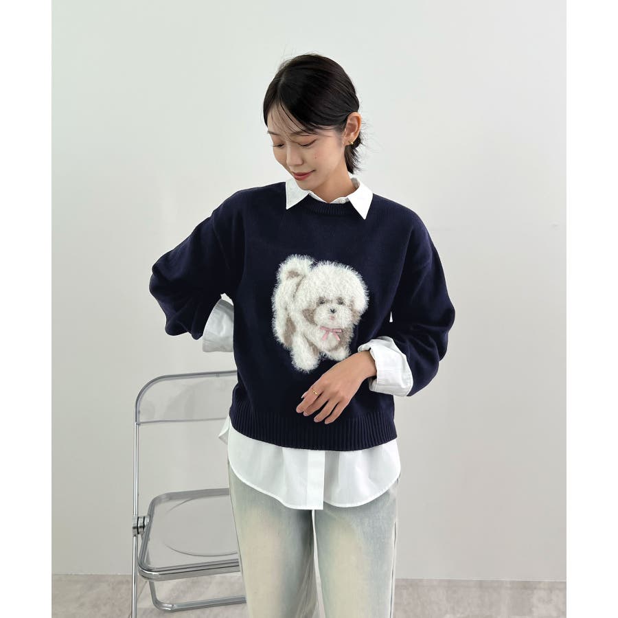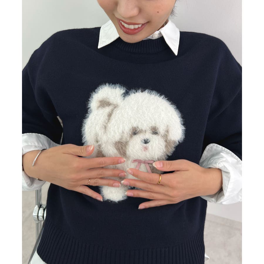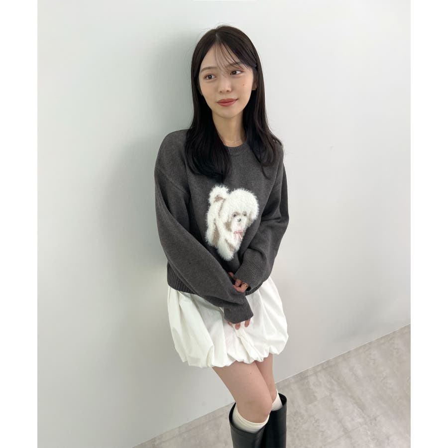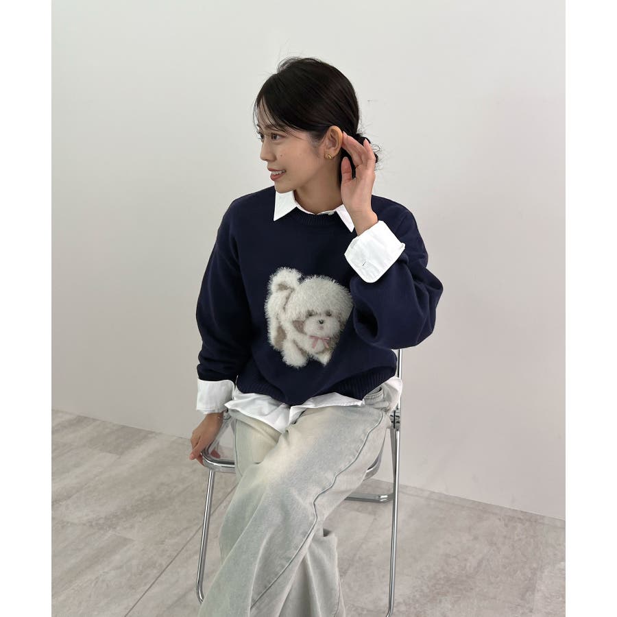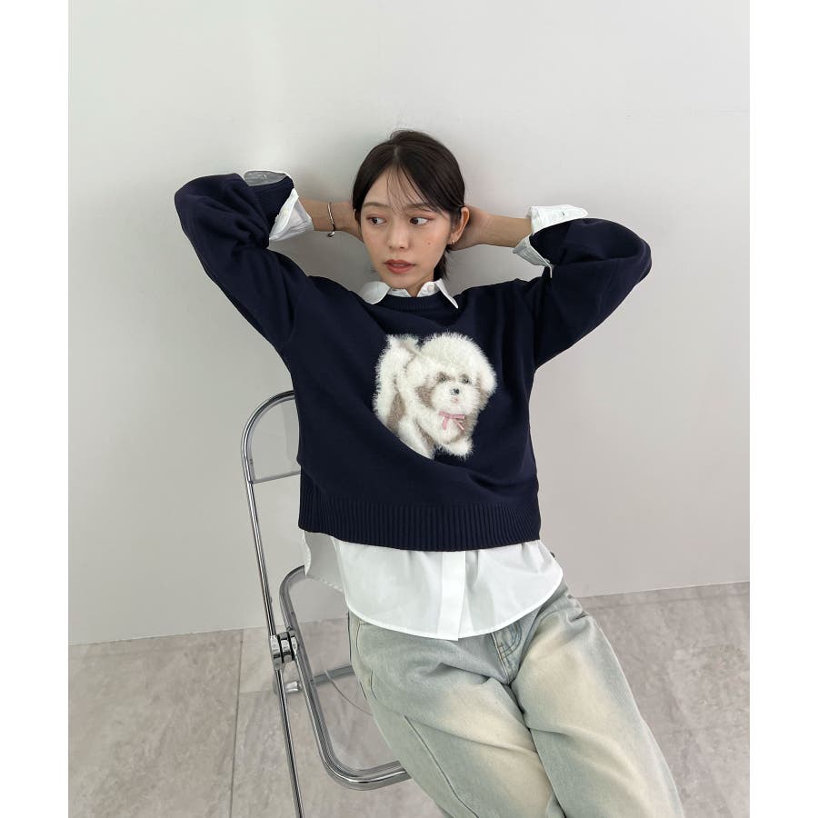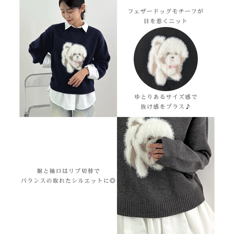 ・愛らしいフェザードッグモチーフが目を惹く主役級ニット