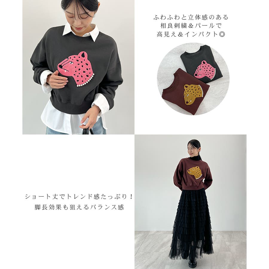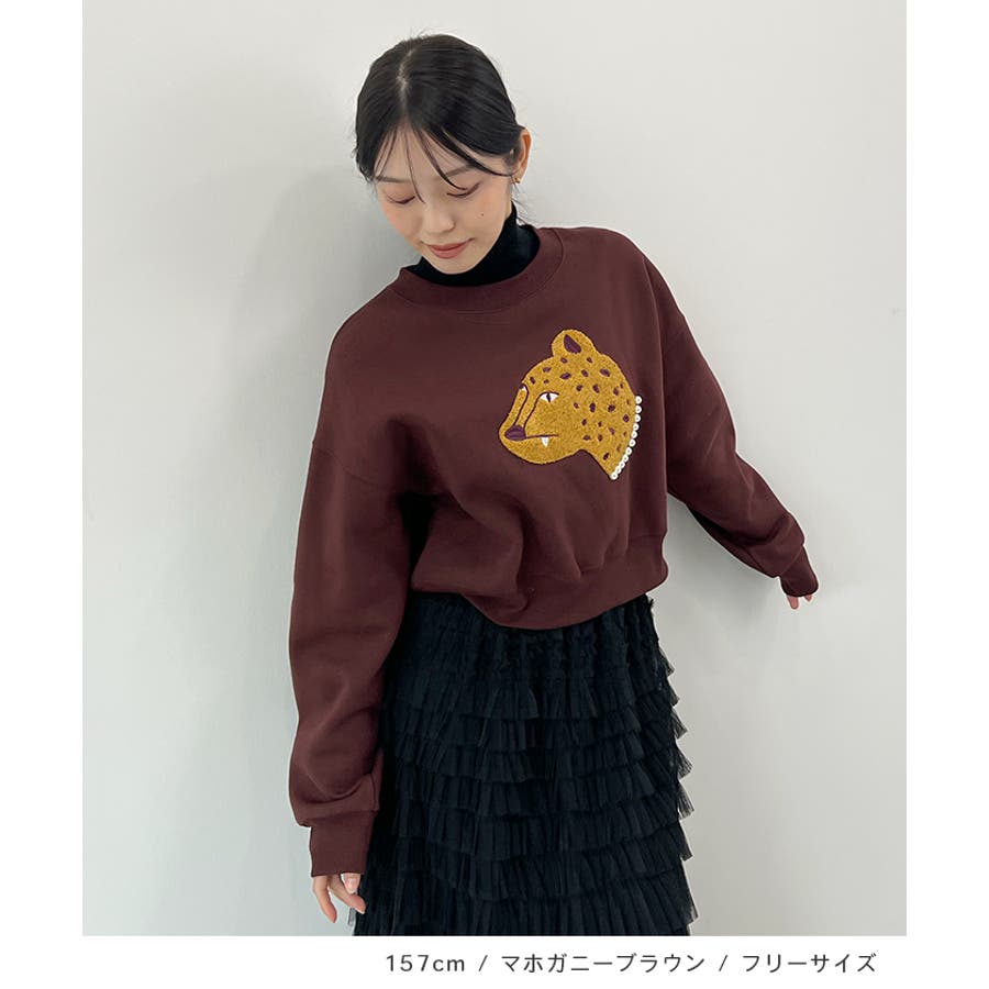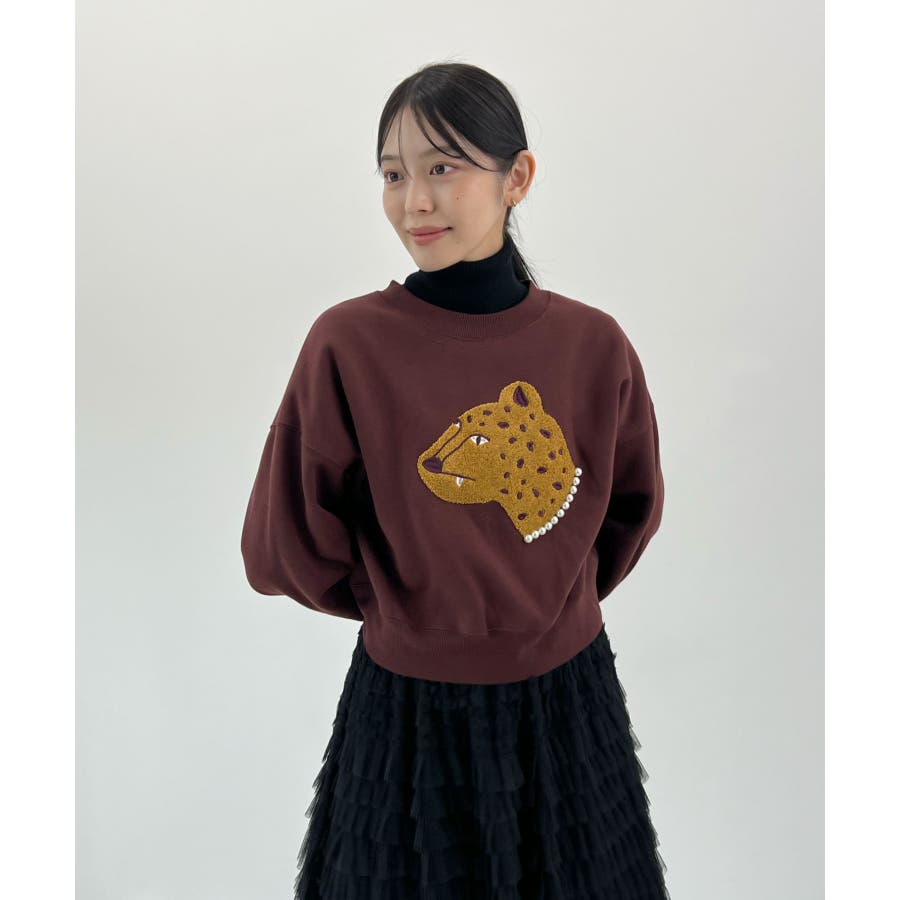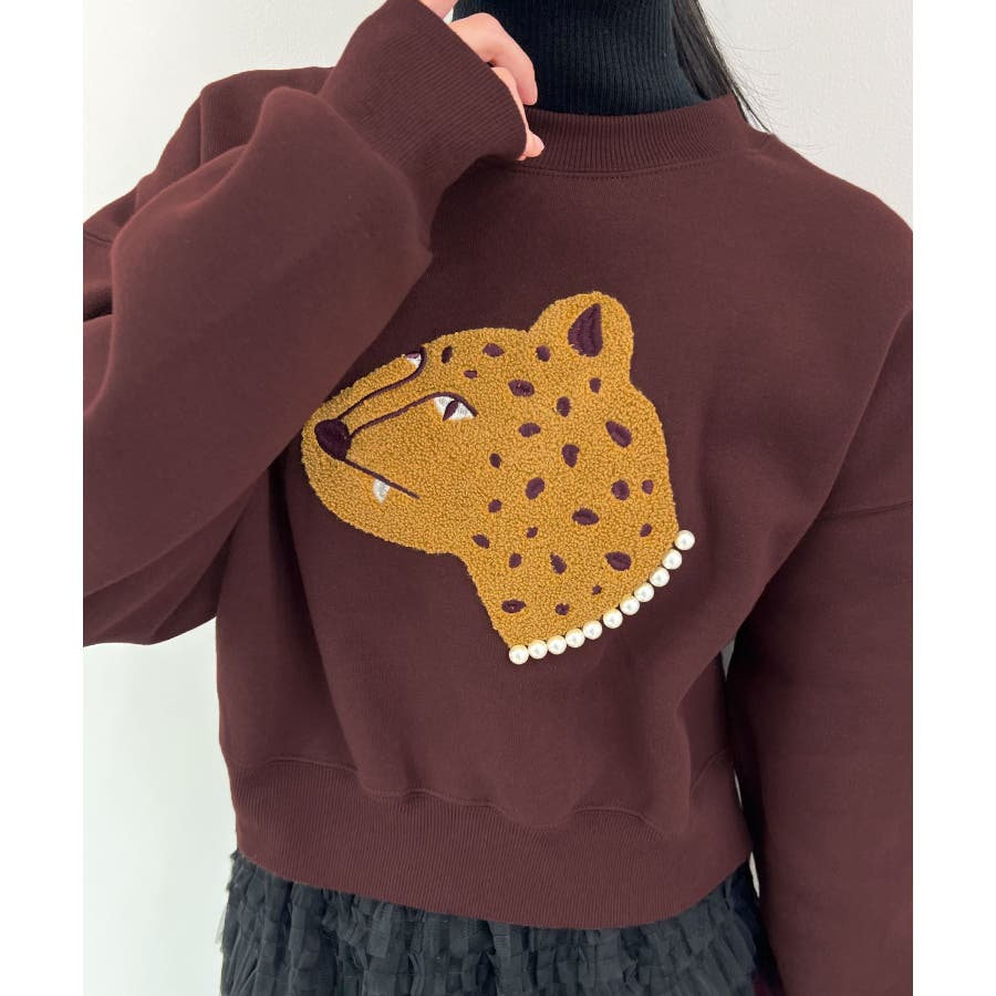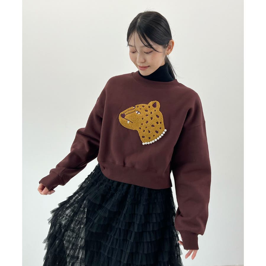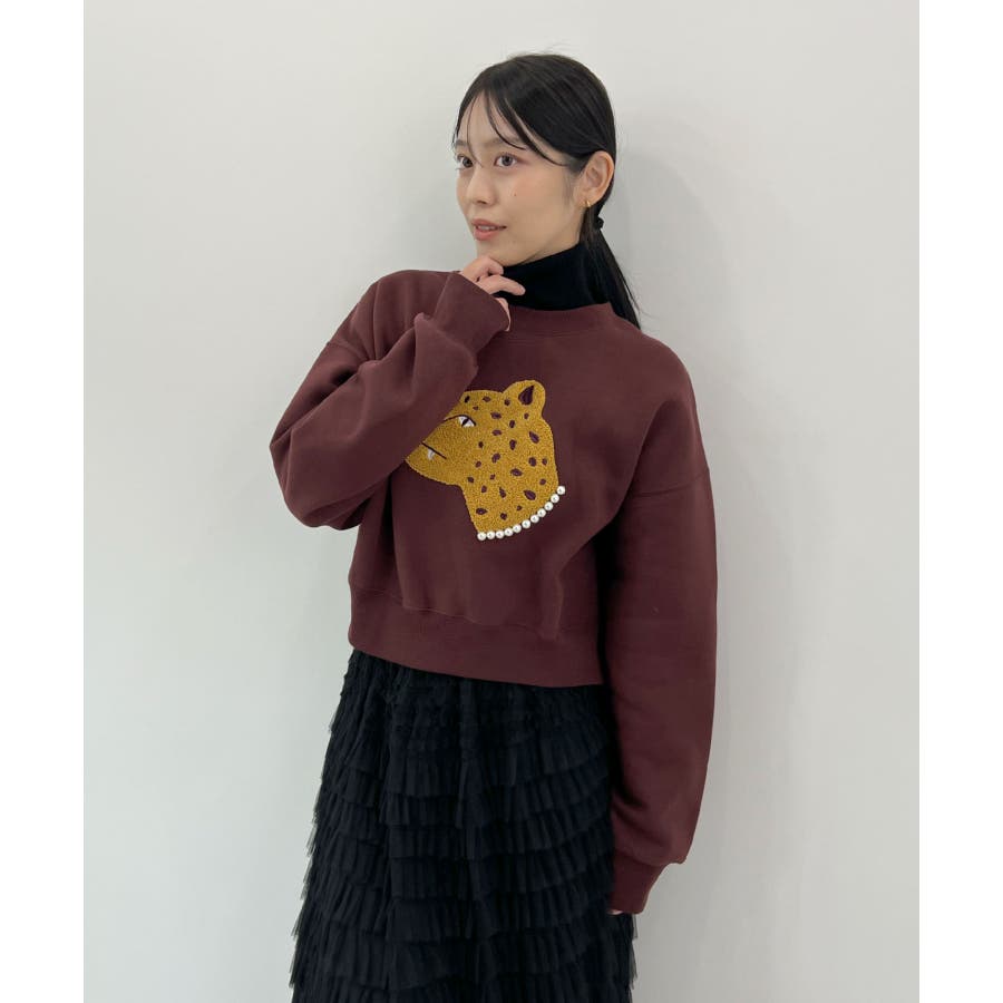 主役級レオパードで着映える。レオパード相良ショート丈スウェットトップス