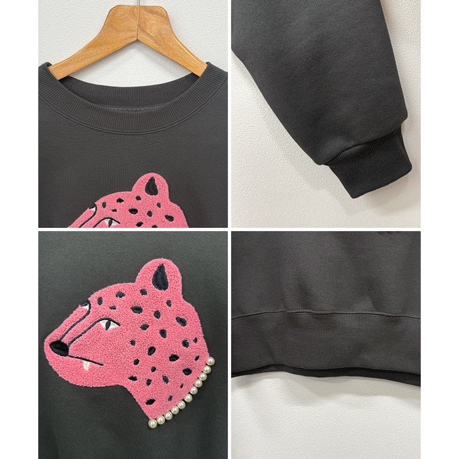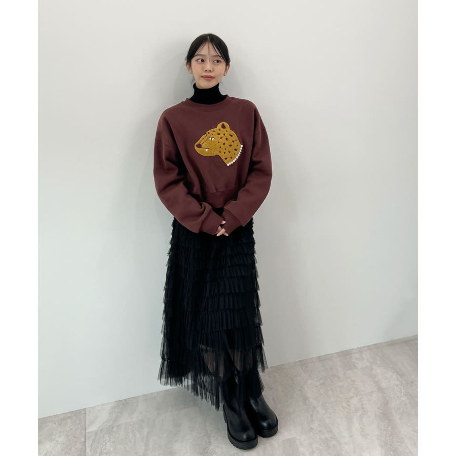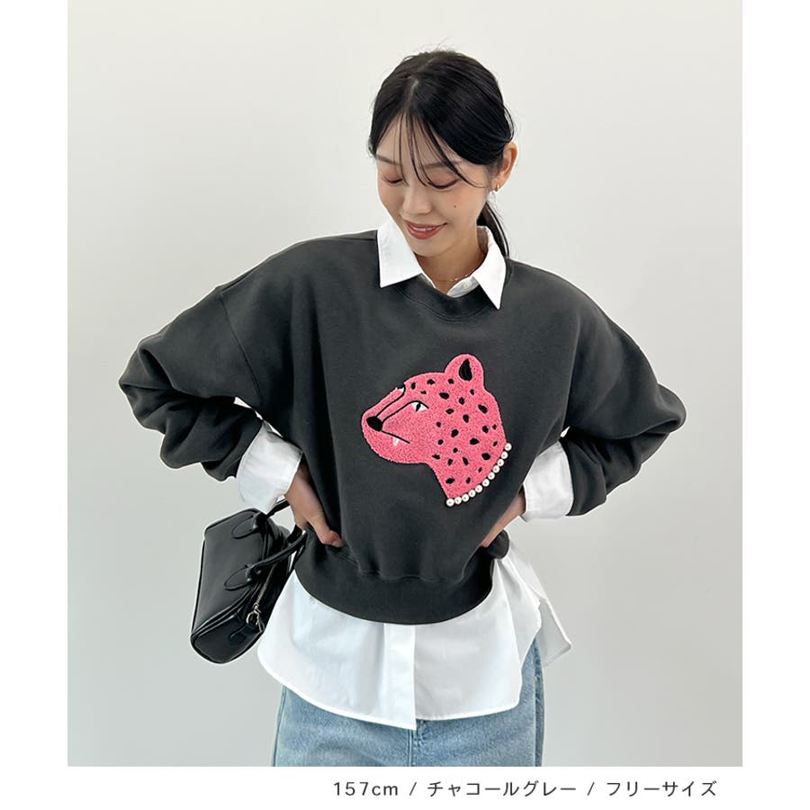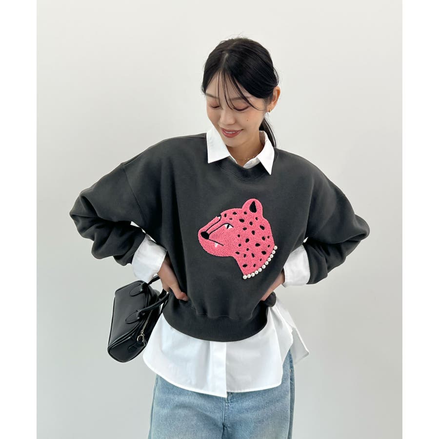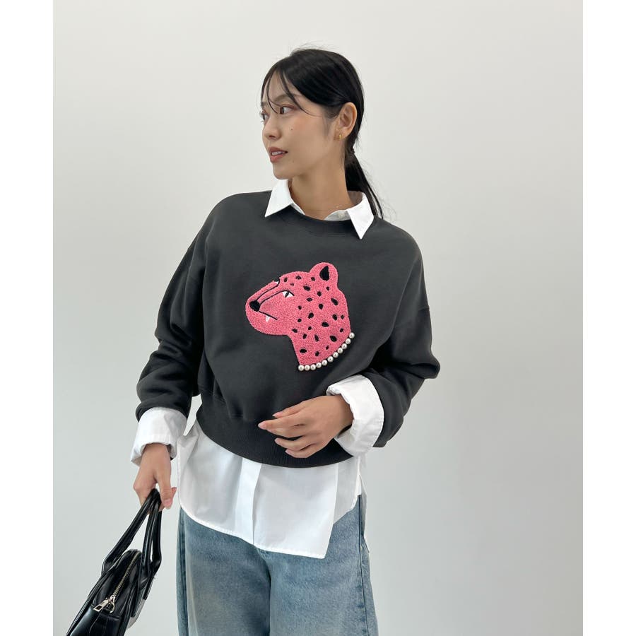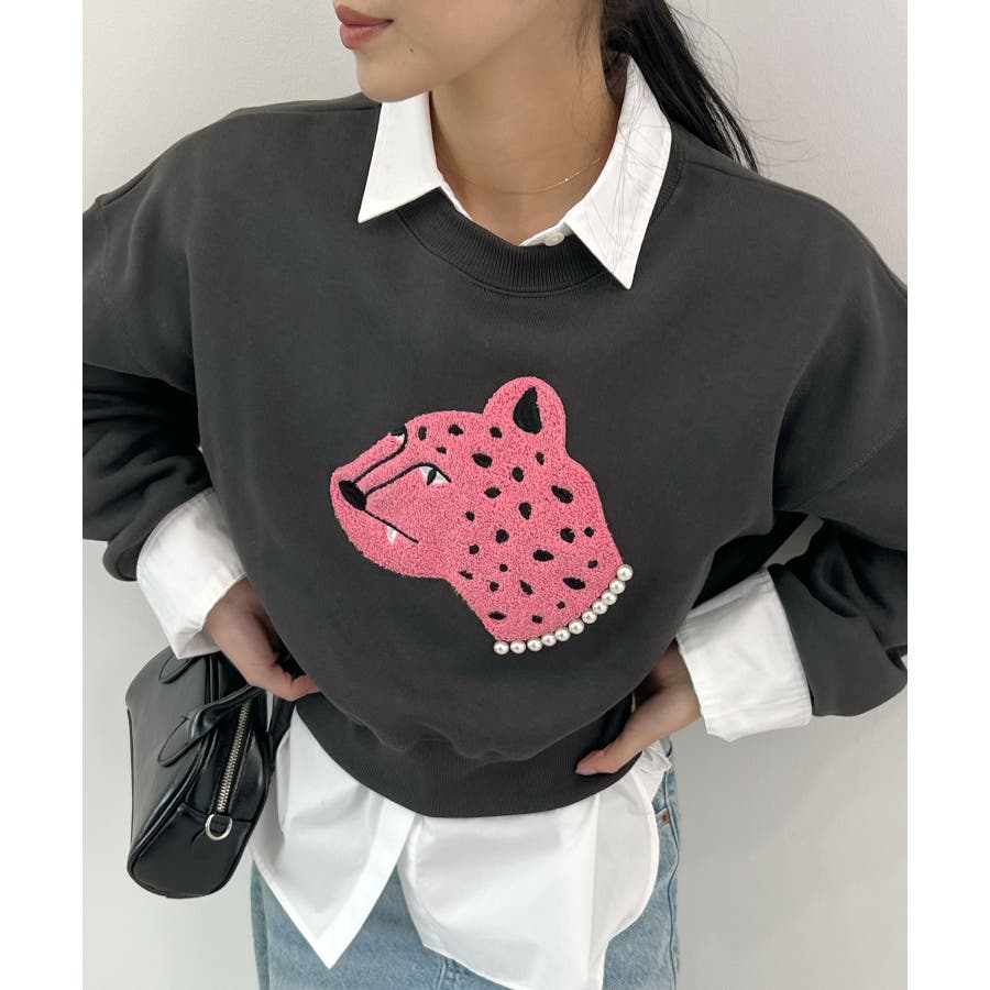 主役級レオパードで着映える。レオパード相良ショート丈スウェットトップス