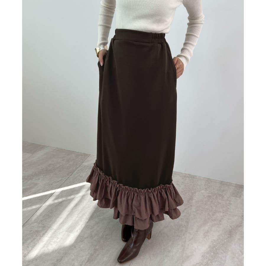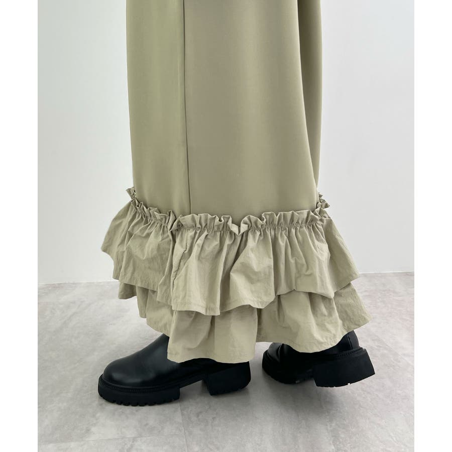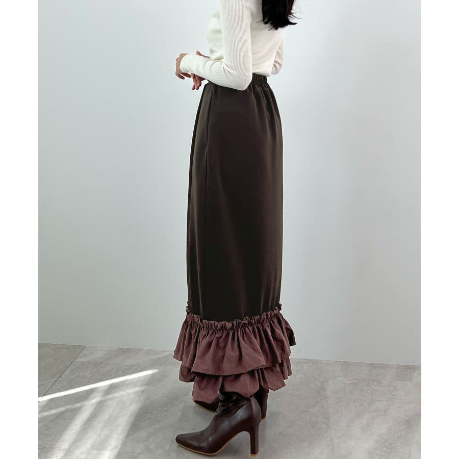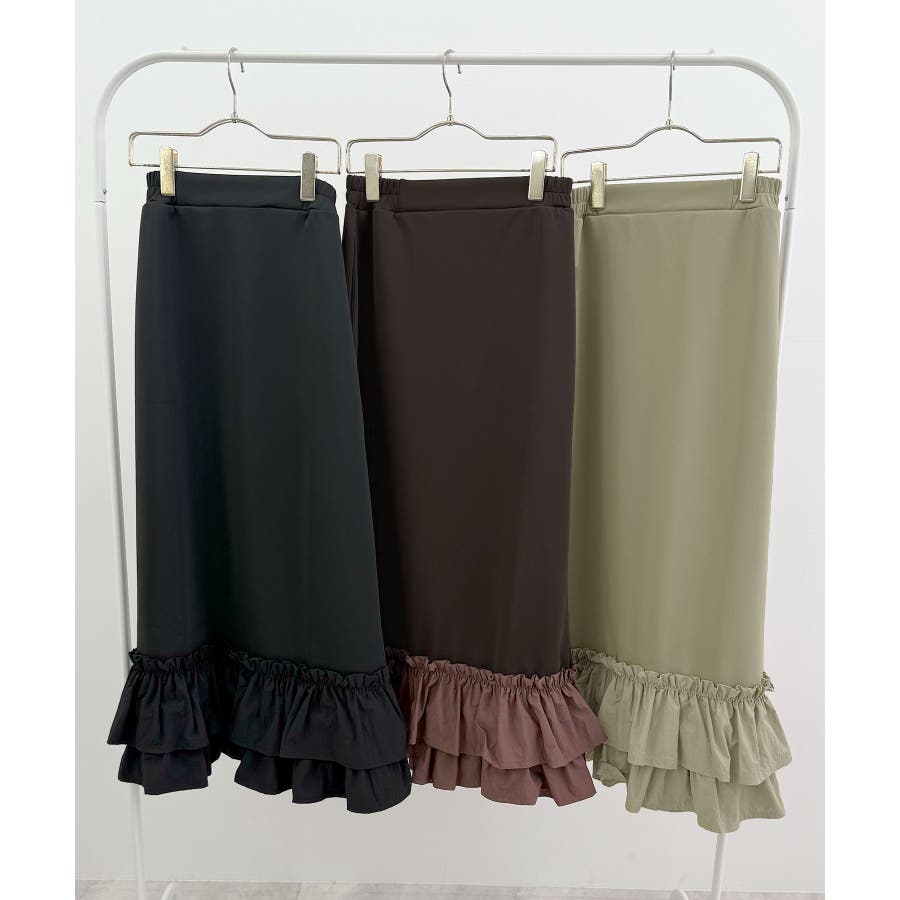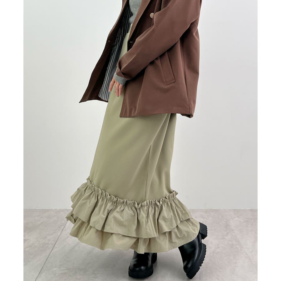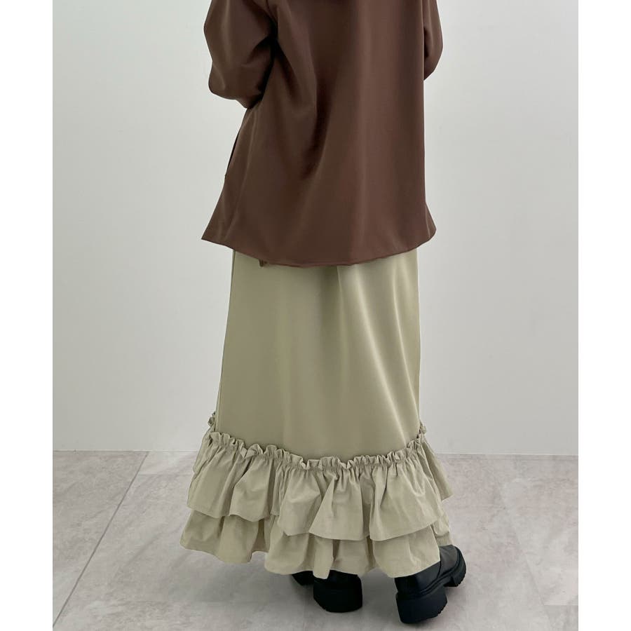 動きに華やぎを添える。ティアードフリルヘムスカート